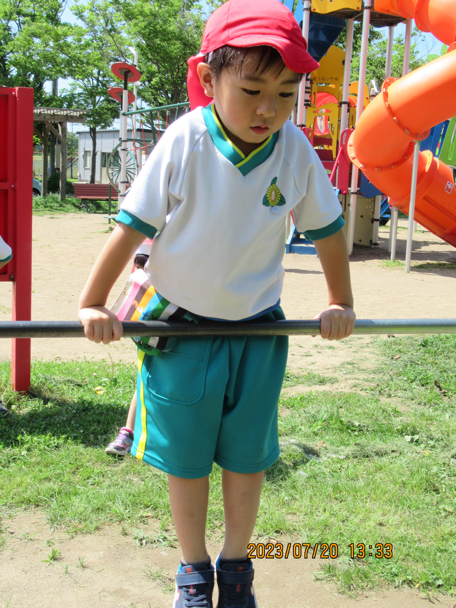 鉄棒やターザンロープ、大型遊具でたくさん体を動かして遊びました。
