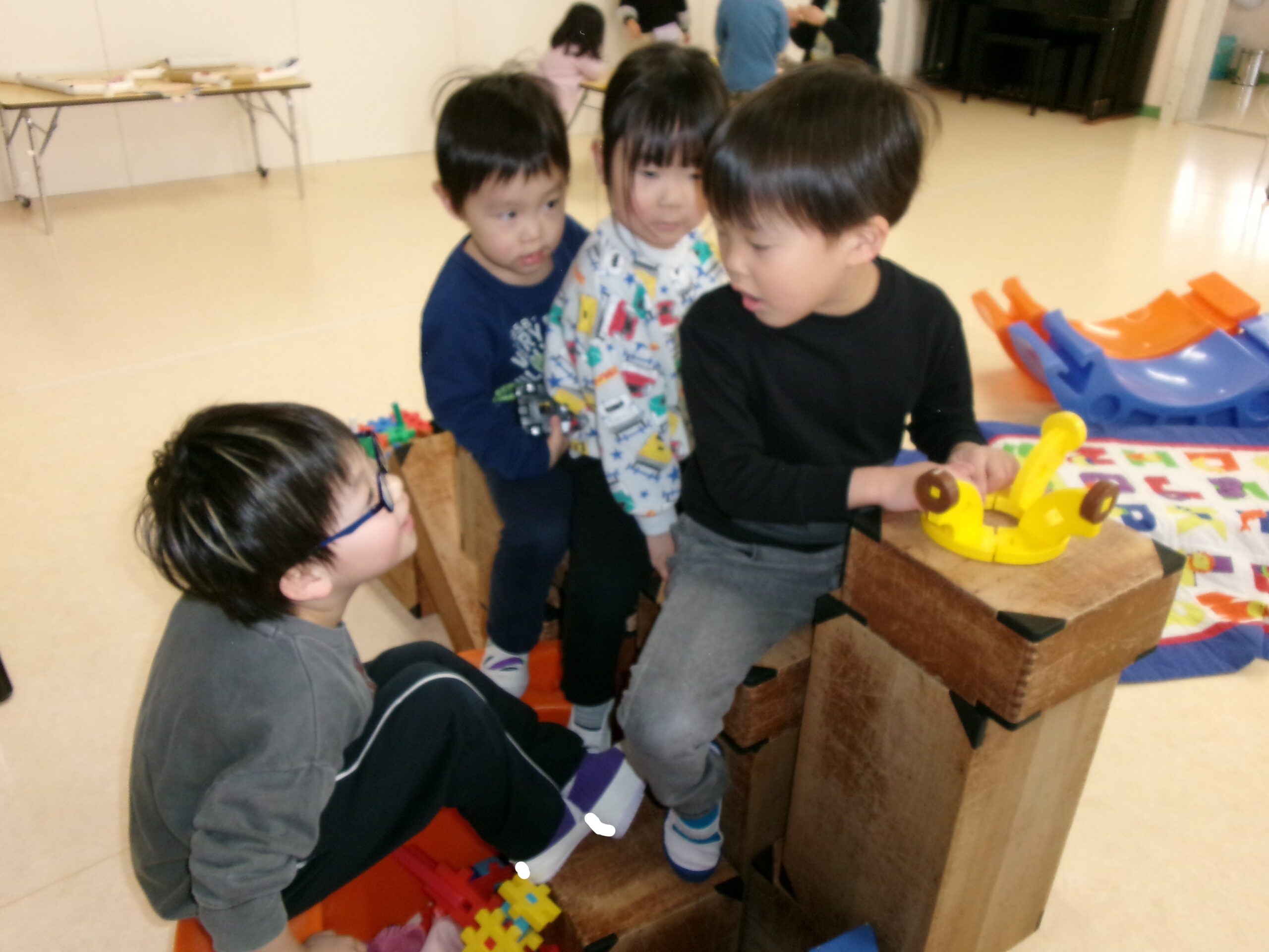 自由遊びの時間は、異年齢児関わって楽しく遊んでいます。
