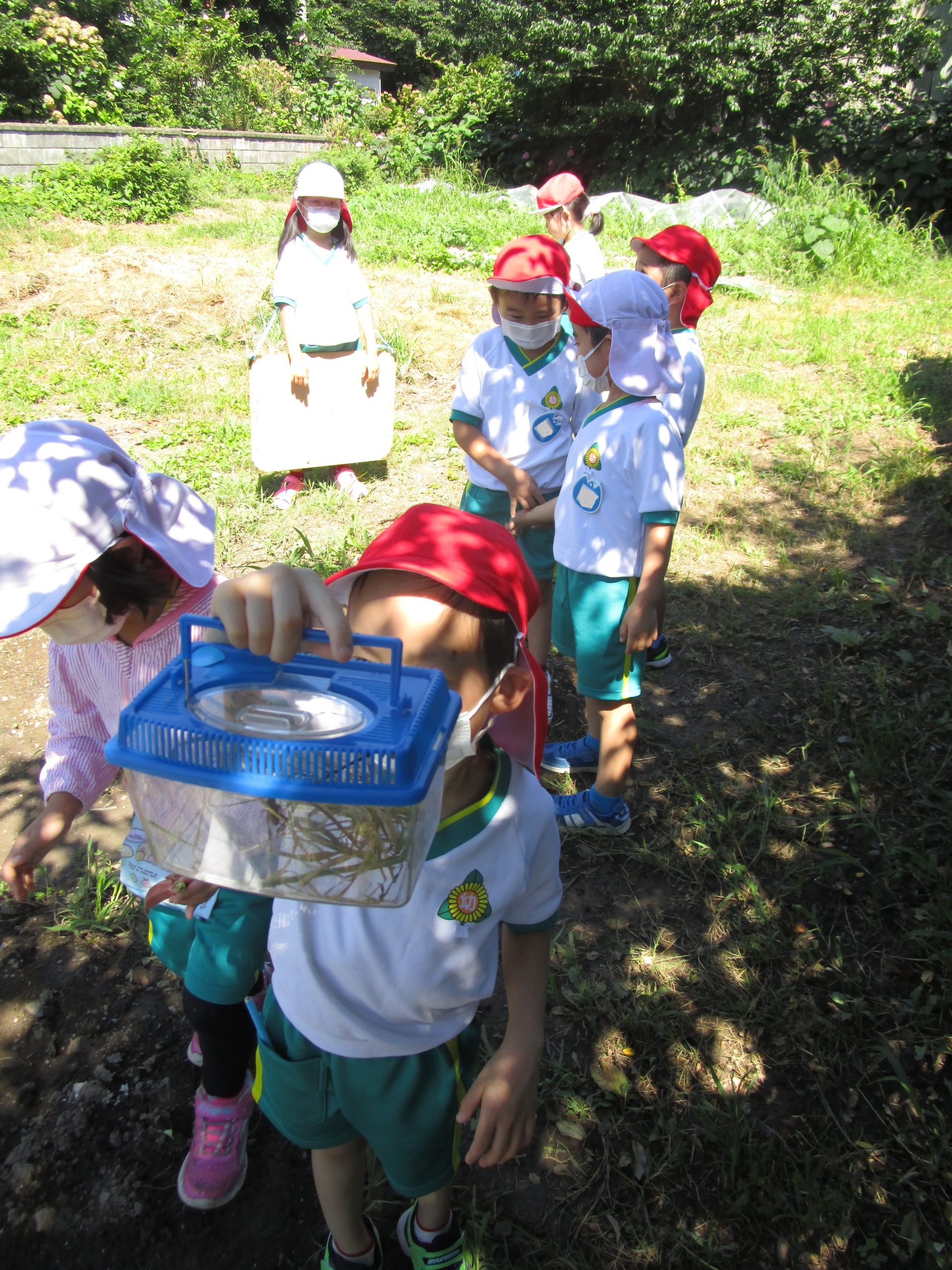 絵を描いた後は、畑にたくさんいたコウロギやクモなどを捕まえて