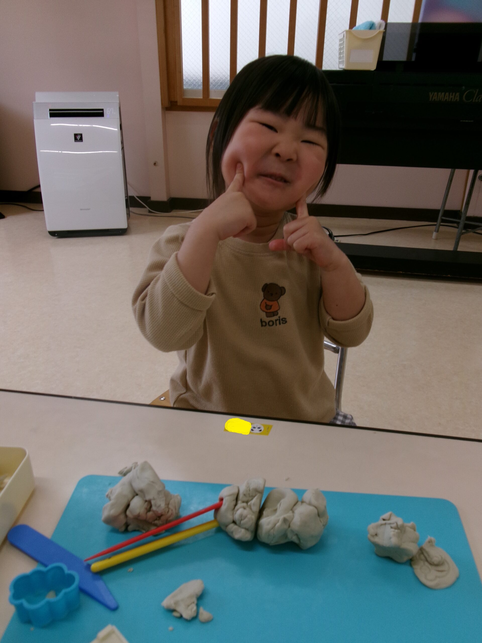 粘土遊び楽しいね🎵子どもの日のお祝い会🎏 先週は寒い日や、雨の日もあり室内で過ごすこともありました。 粘土遊びが大好きで、みんな一生懸命作品を作っていました。 力作と一緒に、ハイチーズ📷✨ 子どもの日のお祝い会では、初めての集会でしたがみんな楽しく参加できました。 頑張って作ったこいのぼりを、嬉しそうに持って帰っていましたよ😊