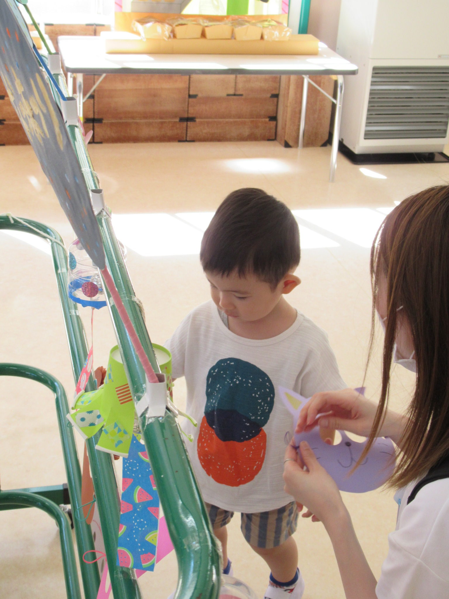 途中で 風鈴やお面にも タッチしたり お顔につけてみたり