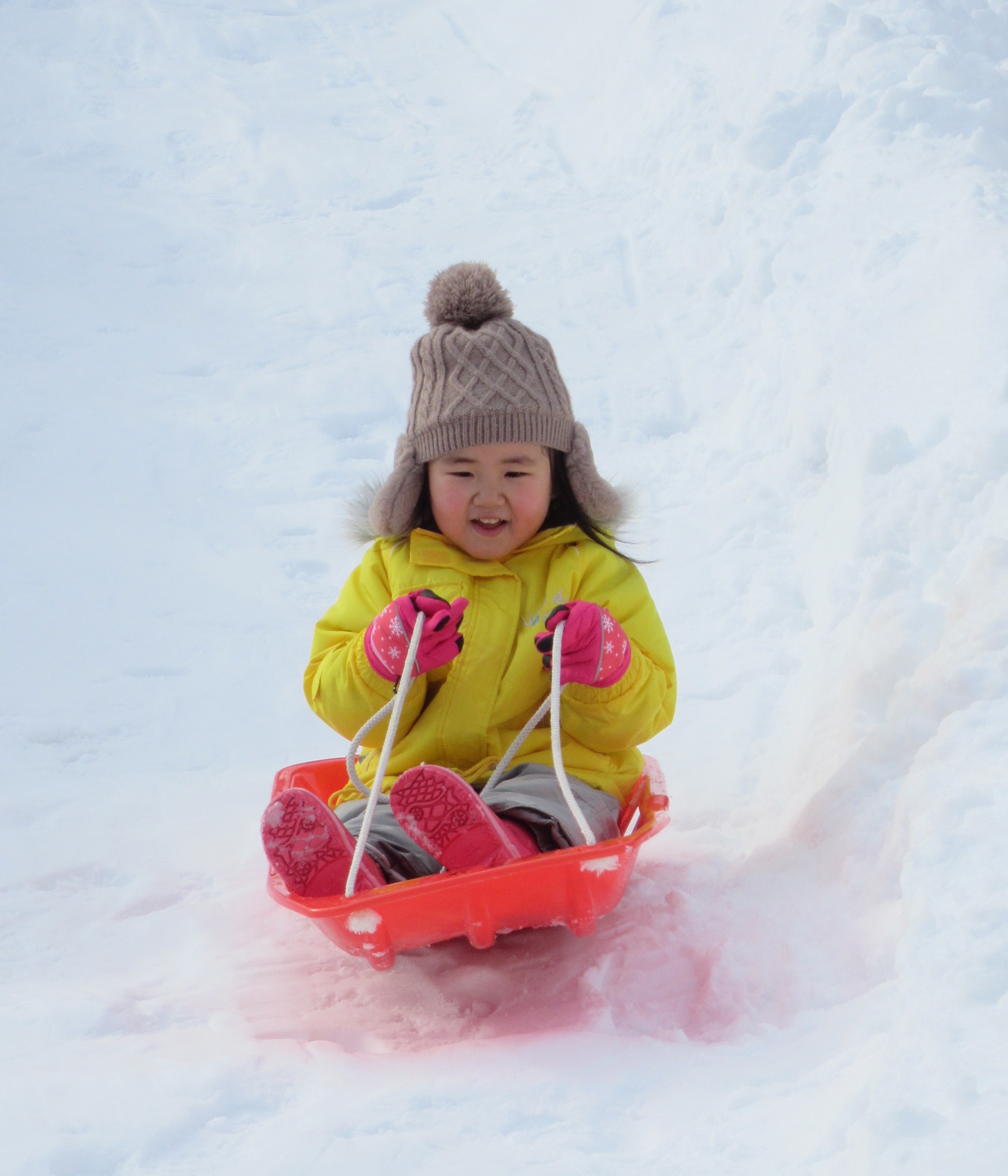 普段幼稚園で乗っているようなそりで友だちと一緒に乗ったり、思いきり楽しみました。