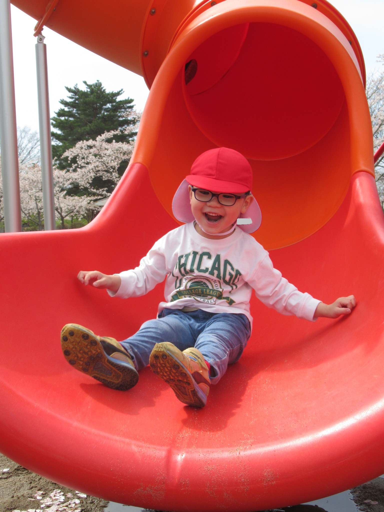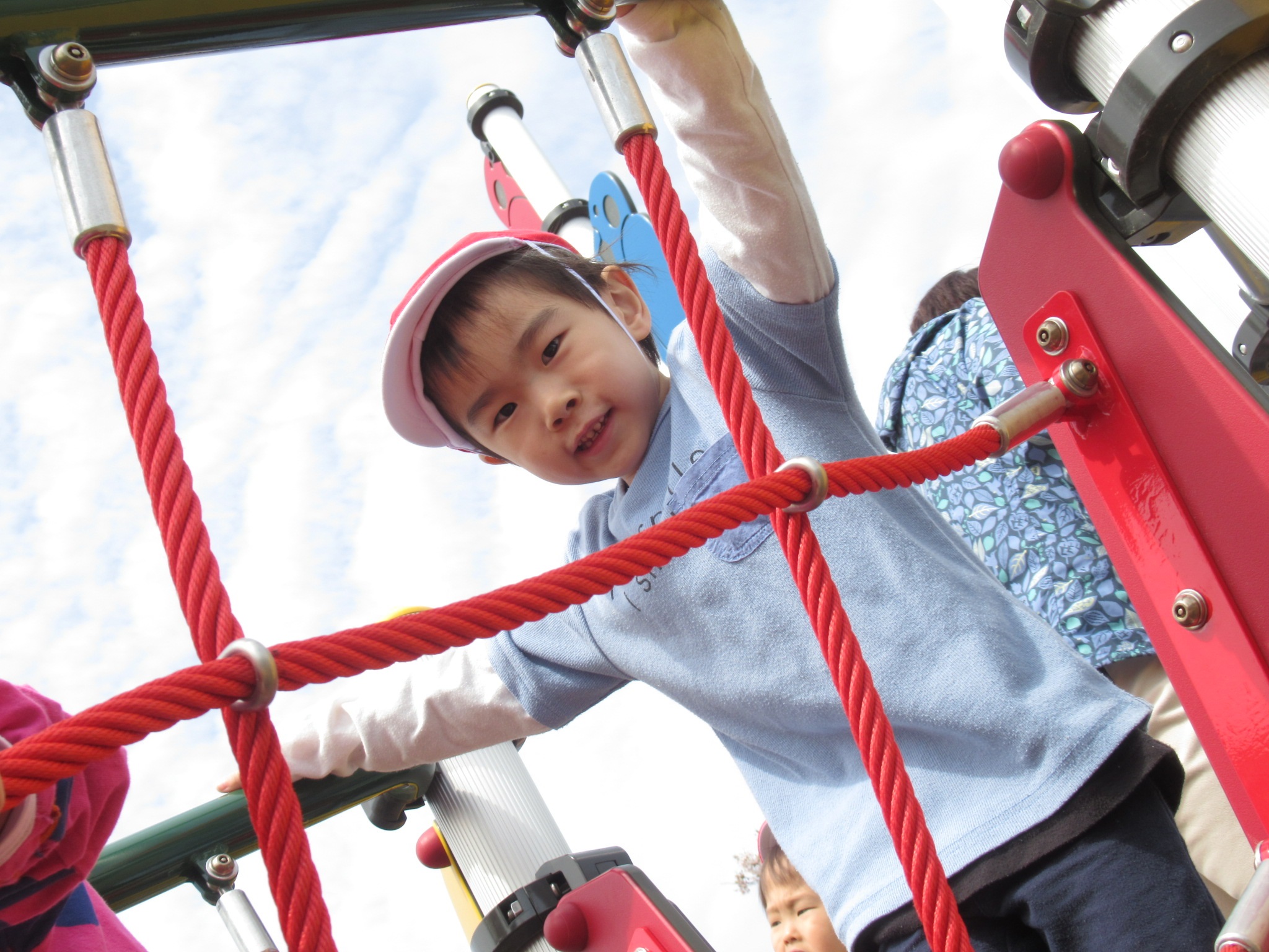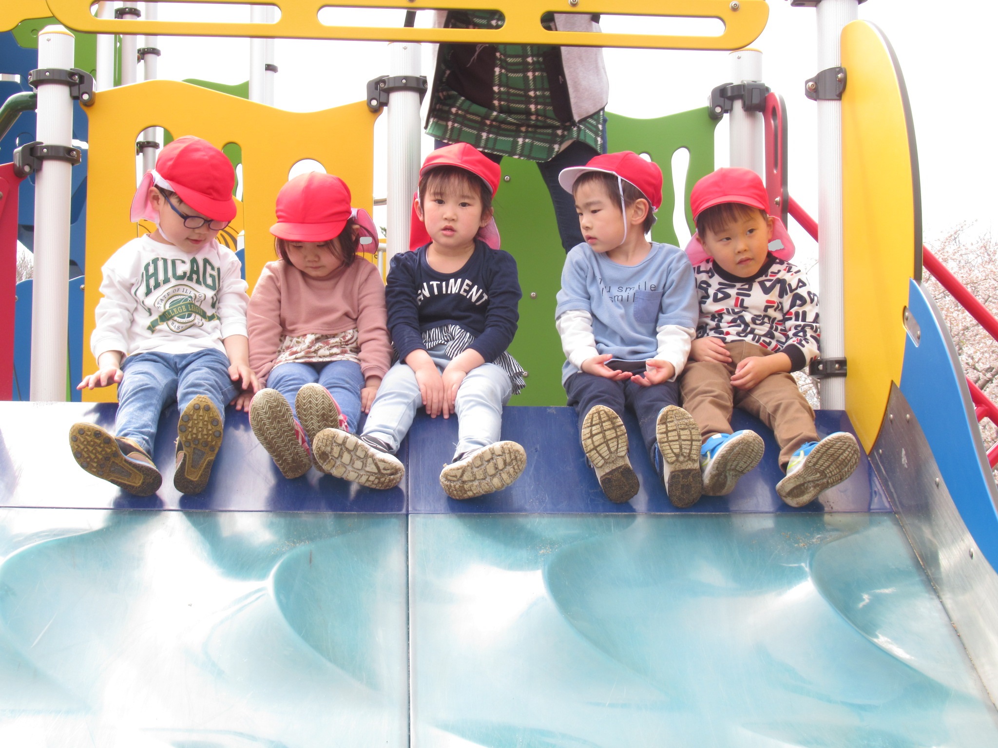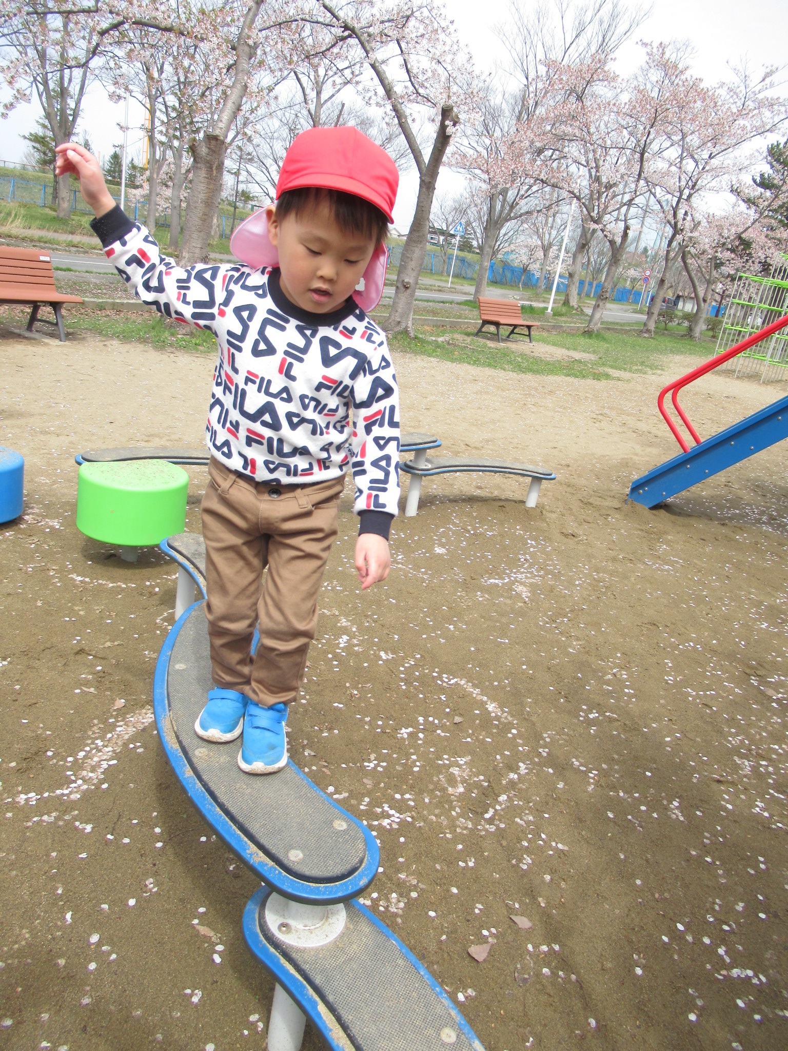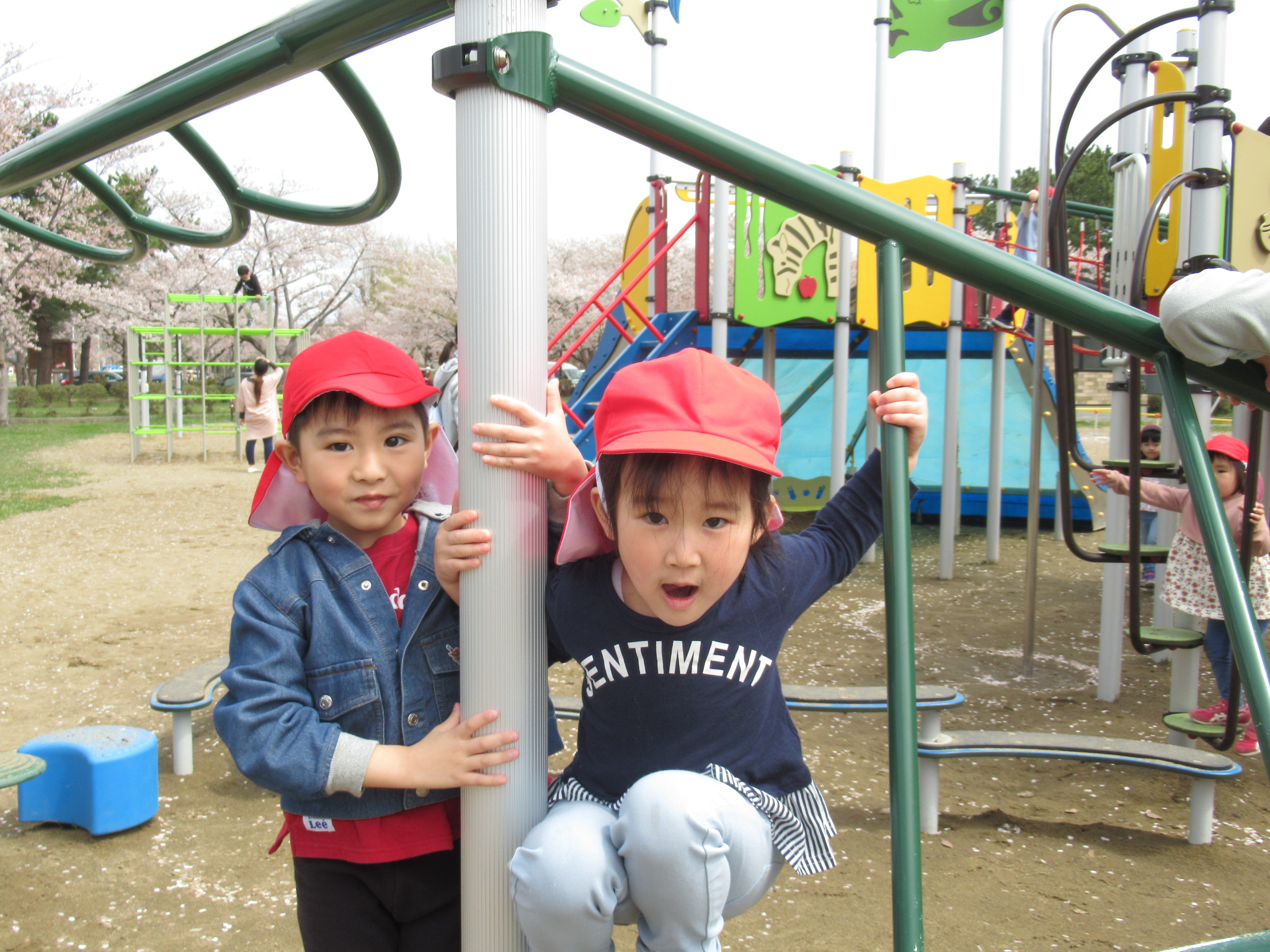 桜のお花見をした後は、公園の新しい遊具であそびましたよ♪