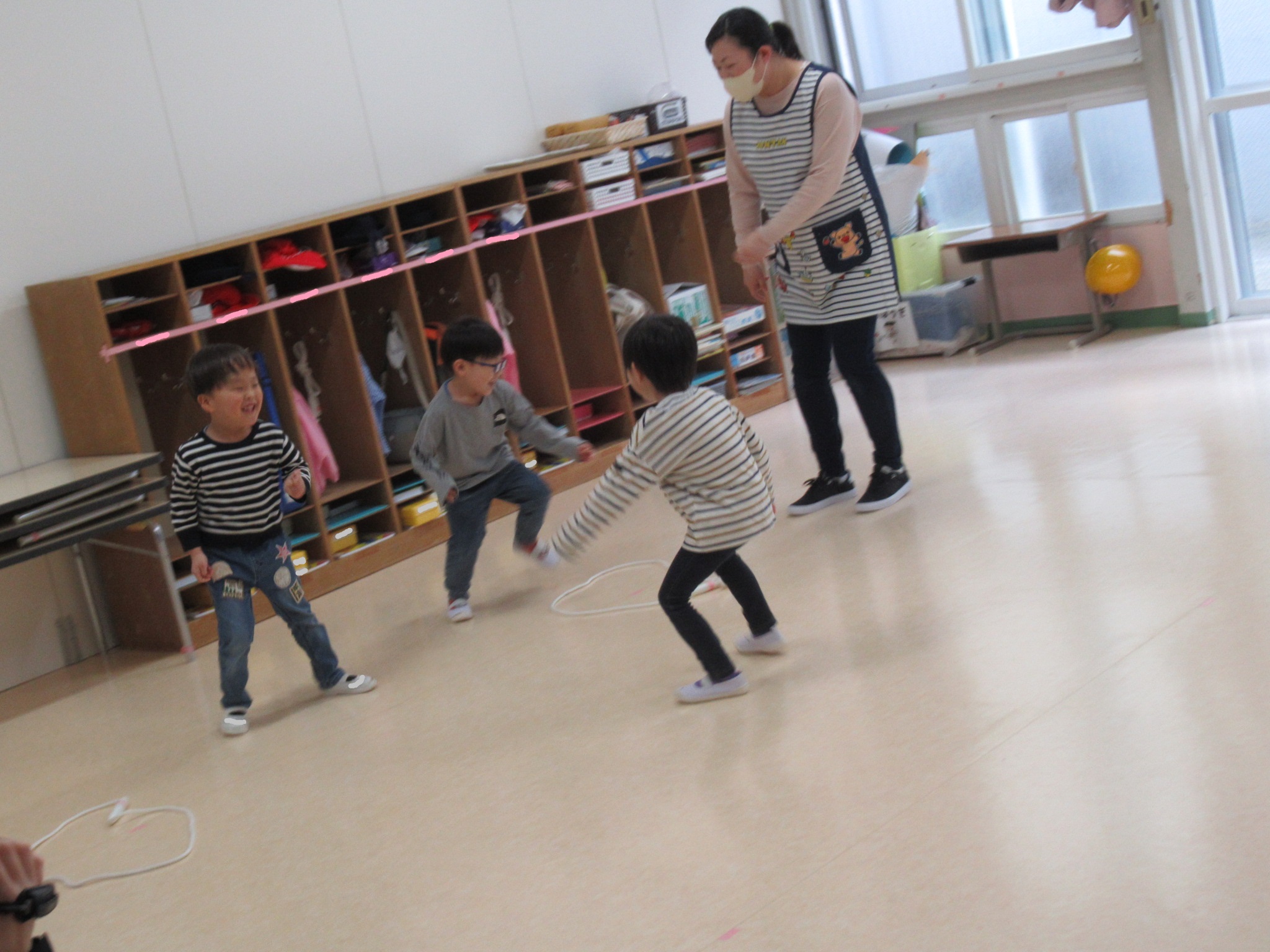 なわとびロープを使ったひっこし鬼をやりました。