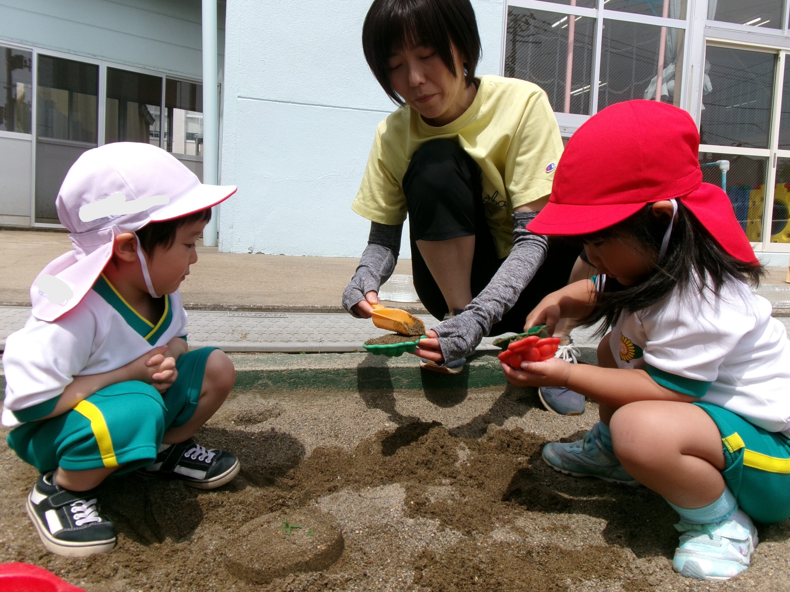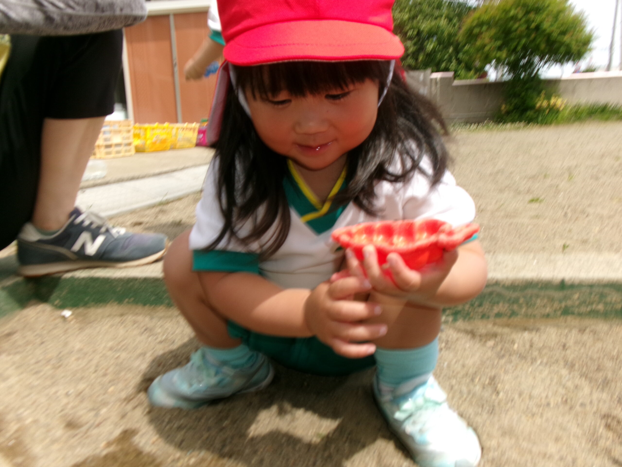 日差しがだんだんと強くなり、10分くらいの外遊びでも
