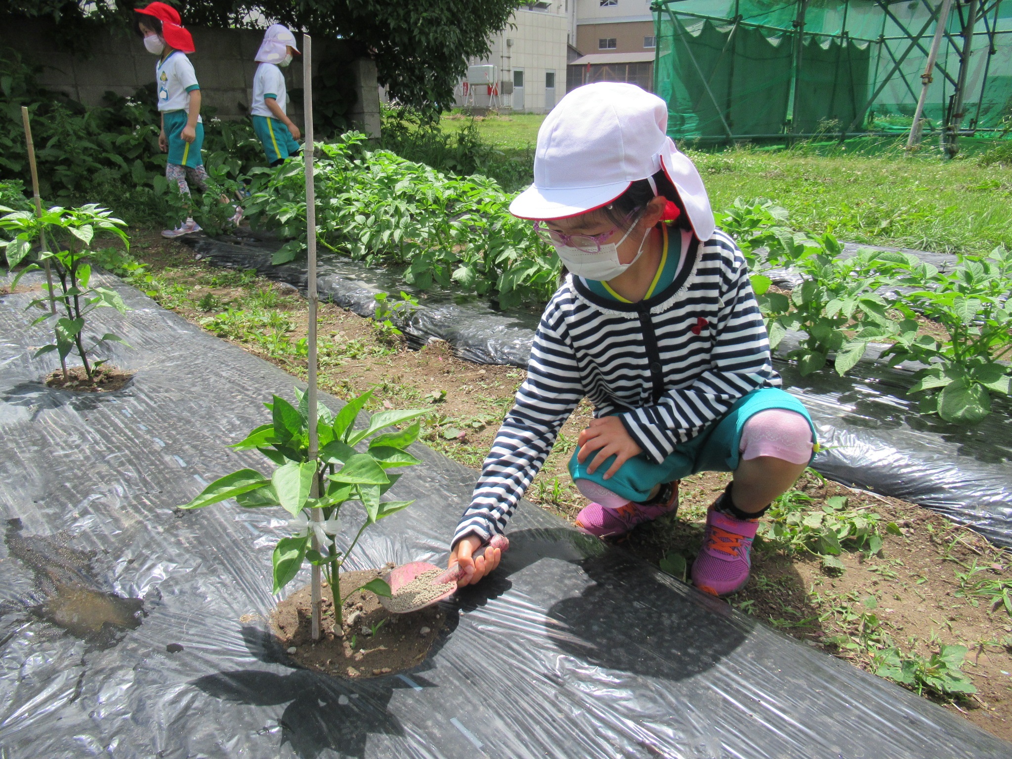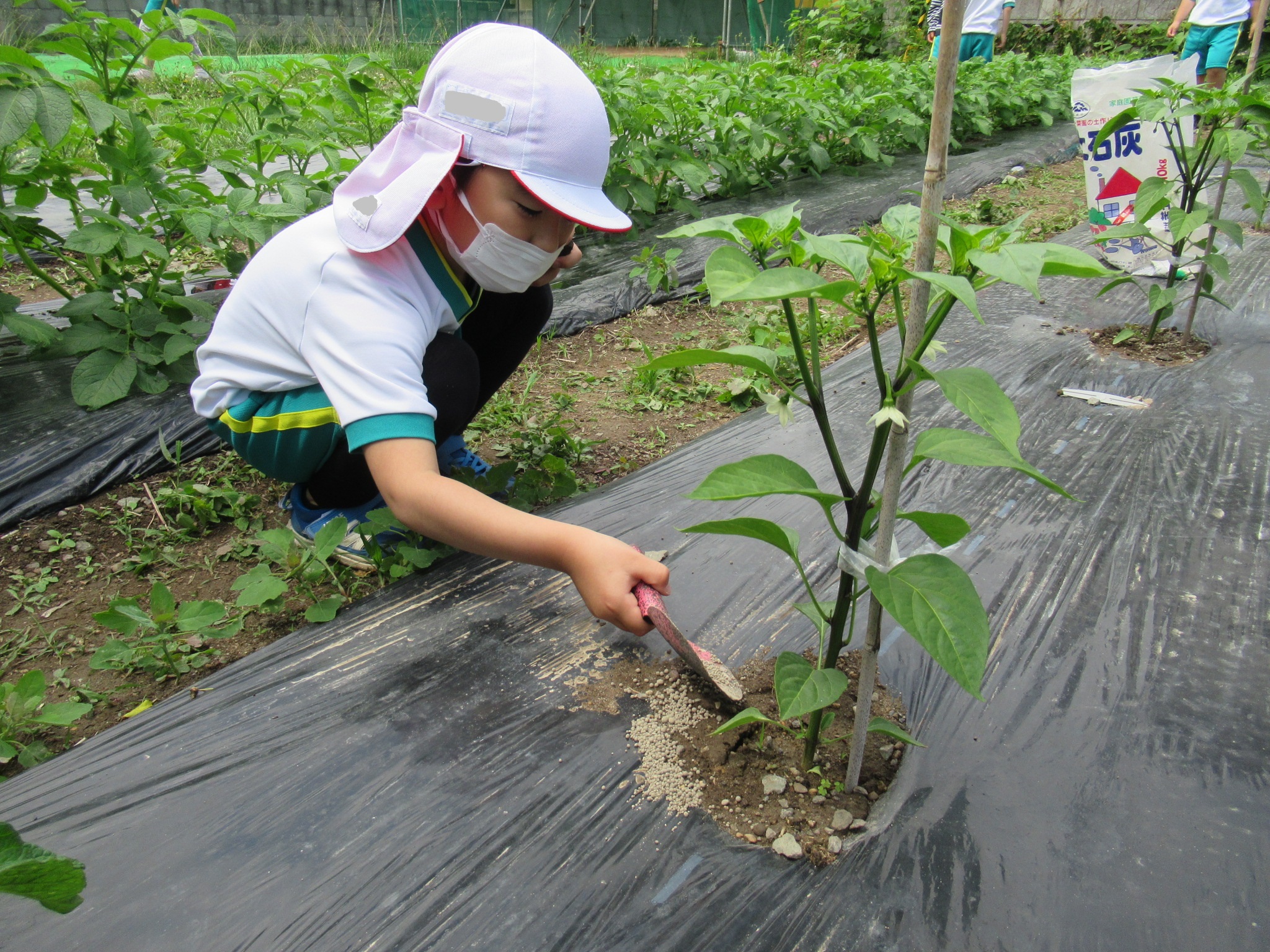 また、オクラとピーマンの苗に少し肥料もあげました。