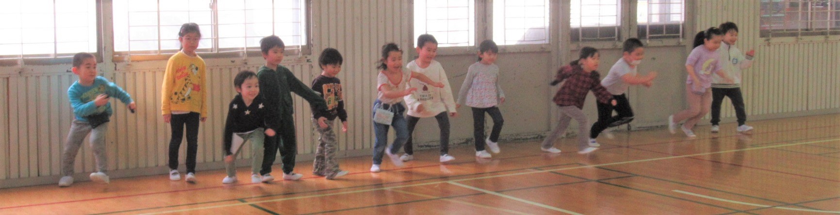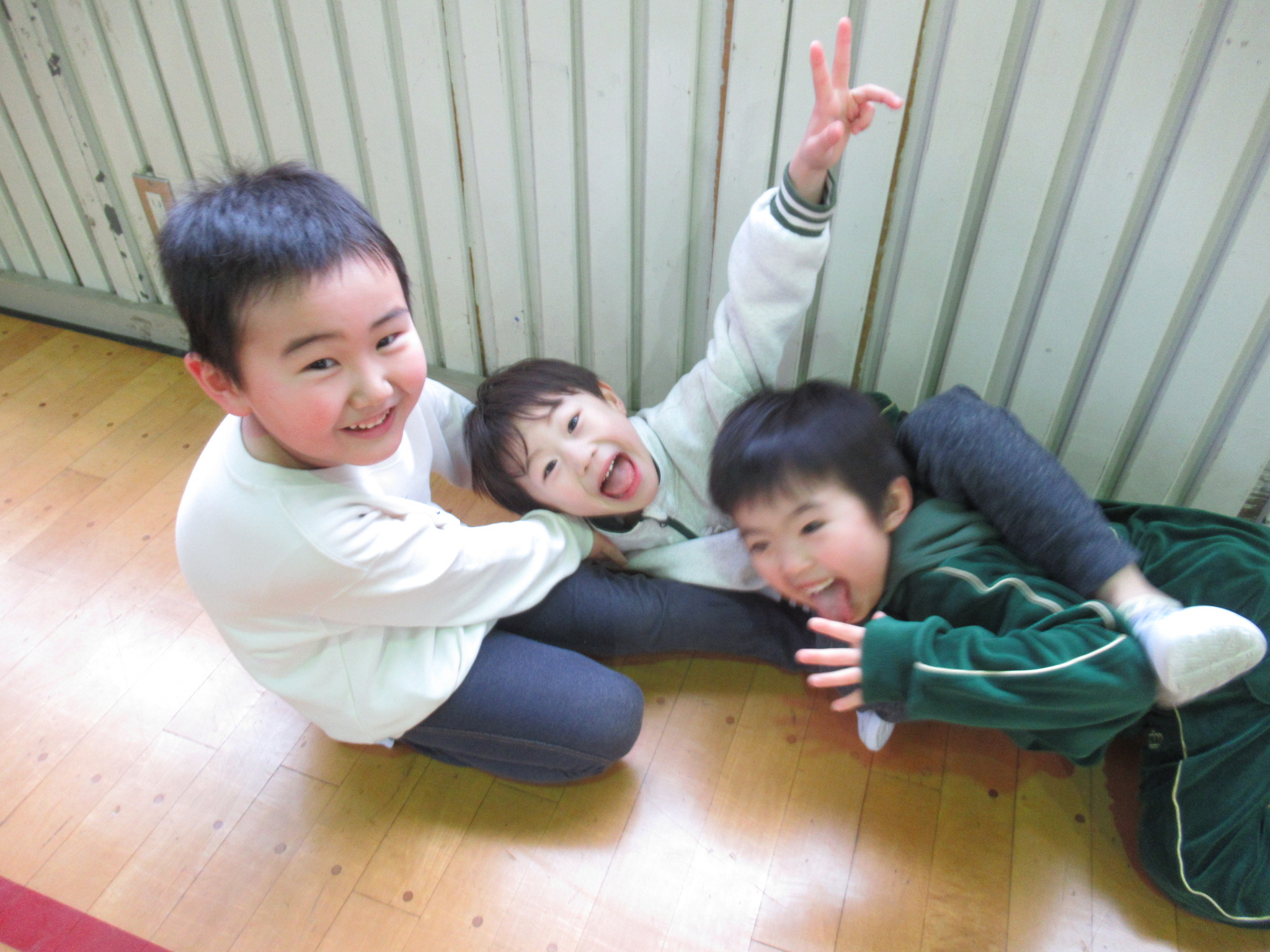 後からひよこ組さんも来て少しでしたが一緒に体育館で走って遊びました。