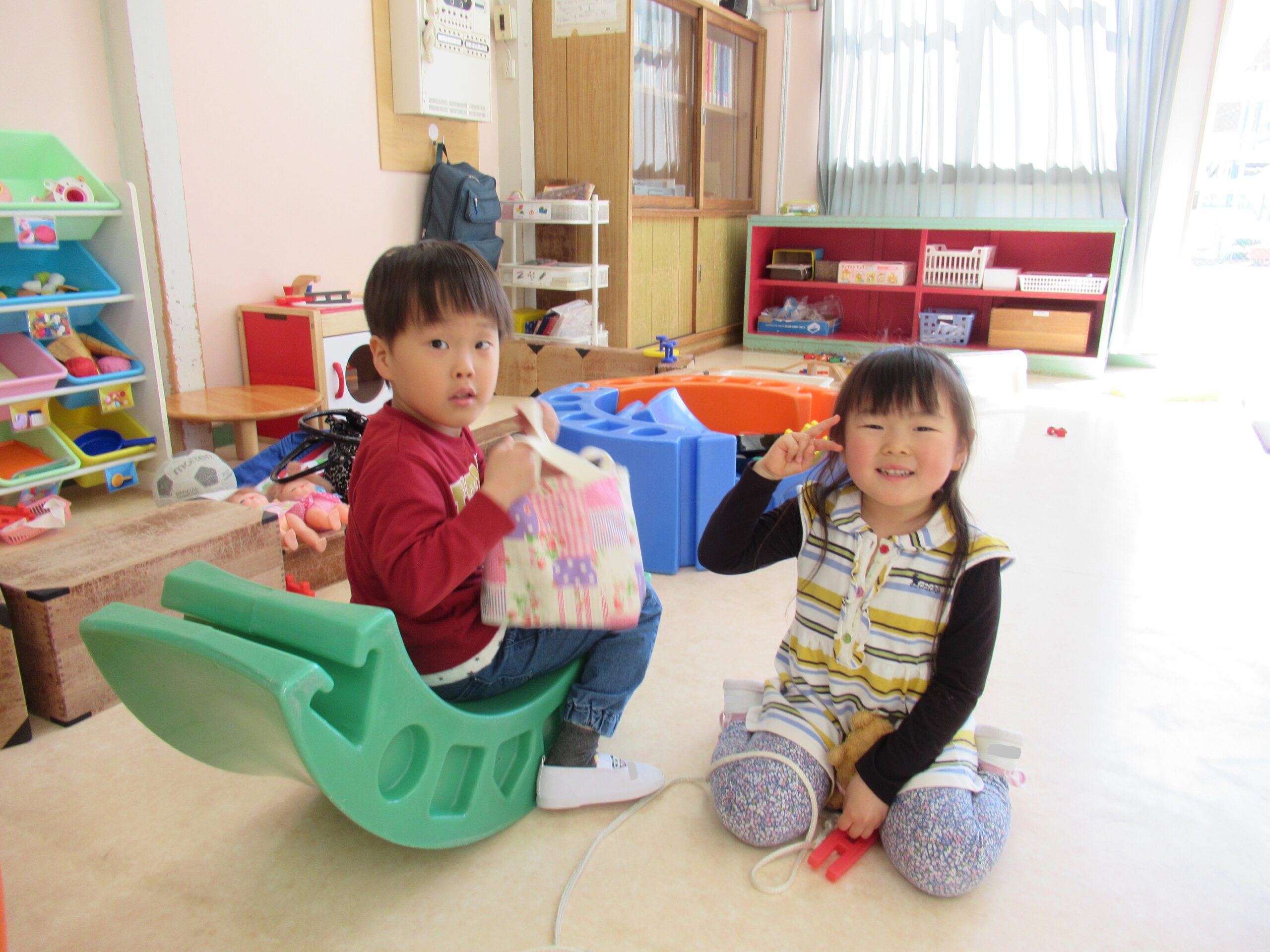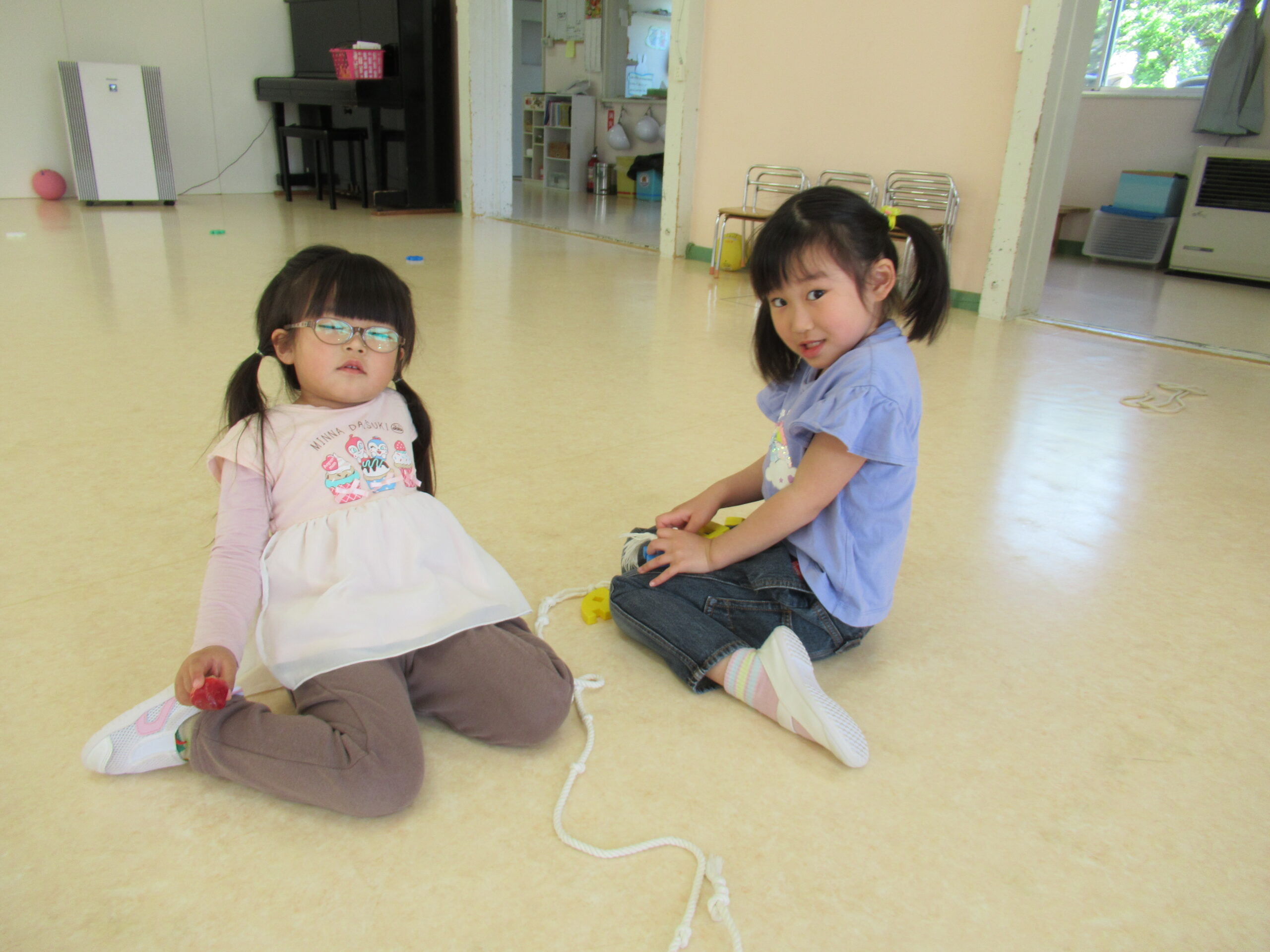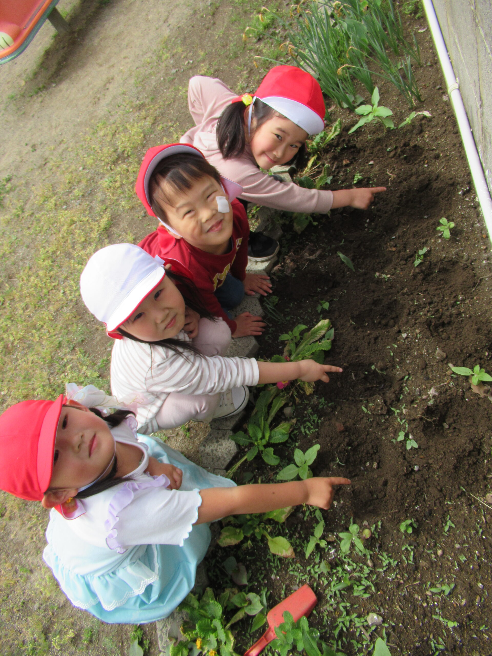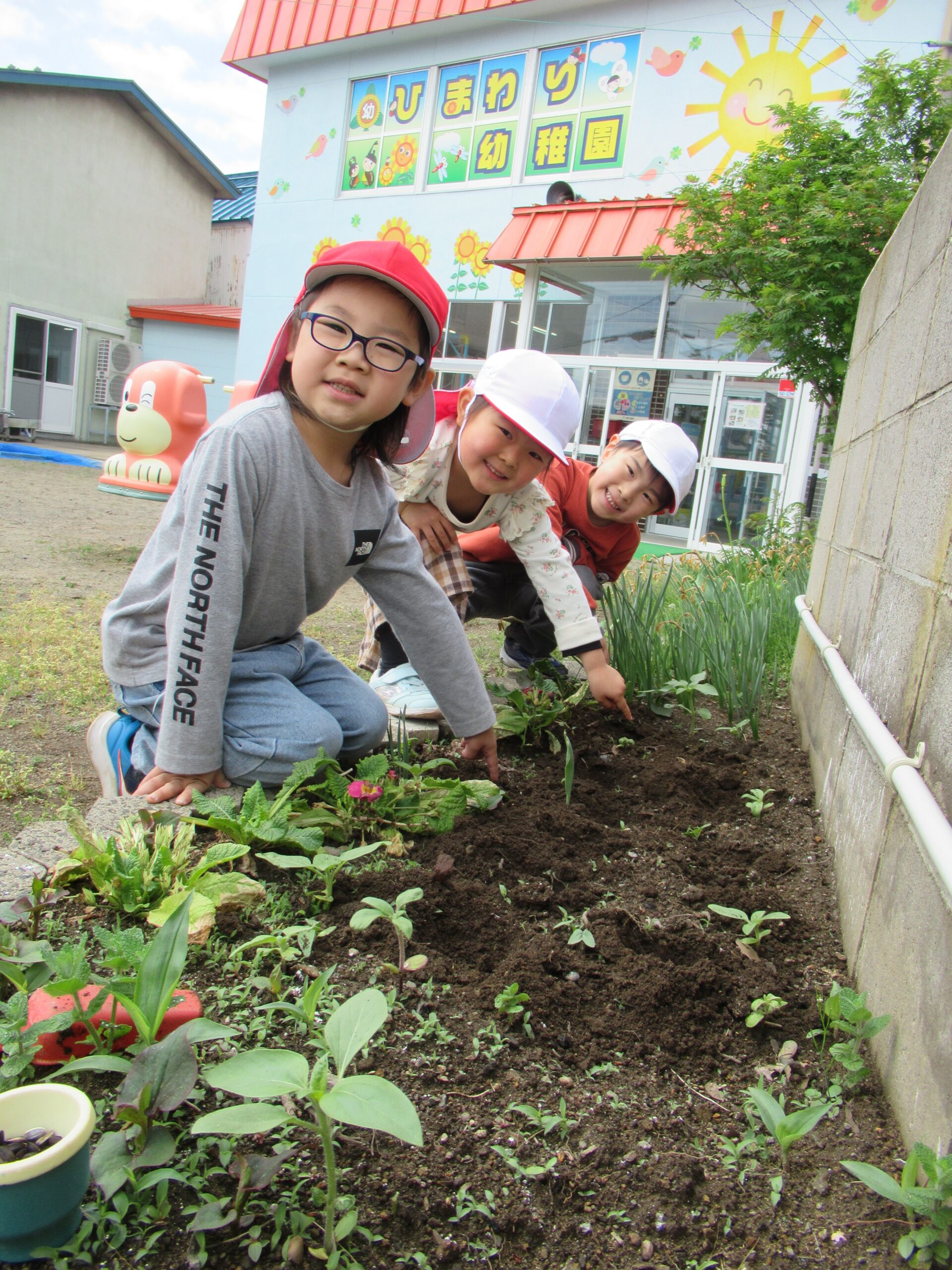 ひまわりのたねをまいたよ! 園庭の花壇にひまわりの種をまきました。 「ここにまいたよ!」と教えてくれている写真です。 早く芽が出て、きれいなひまわりの花が咲きますように! 次は、朝の自由遊びの様子をご紹介します。 それぞれ、好きな遊びは違いますが、 お友だちと一緒に会話をしながら楽しんでいます。 他のクラスのお友だちとの交流も楽しんでいます。 自由な遊びをしているときは、本当に笑顔がたくさん見られ ひまわり🌻ようにきらきら✨しています。