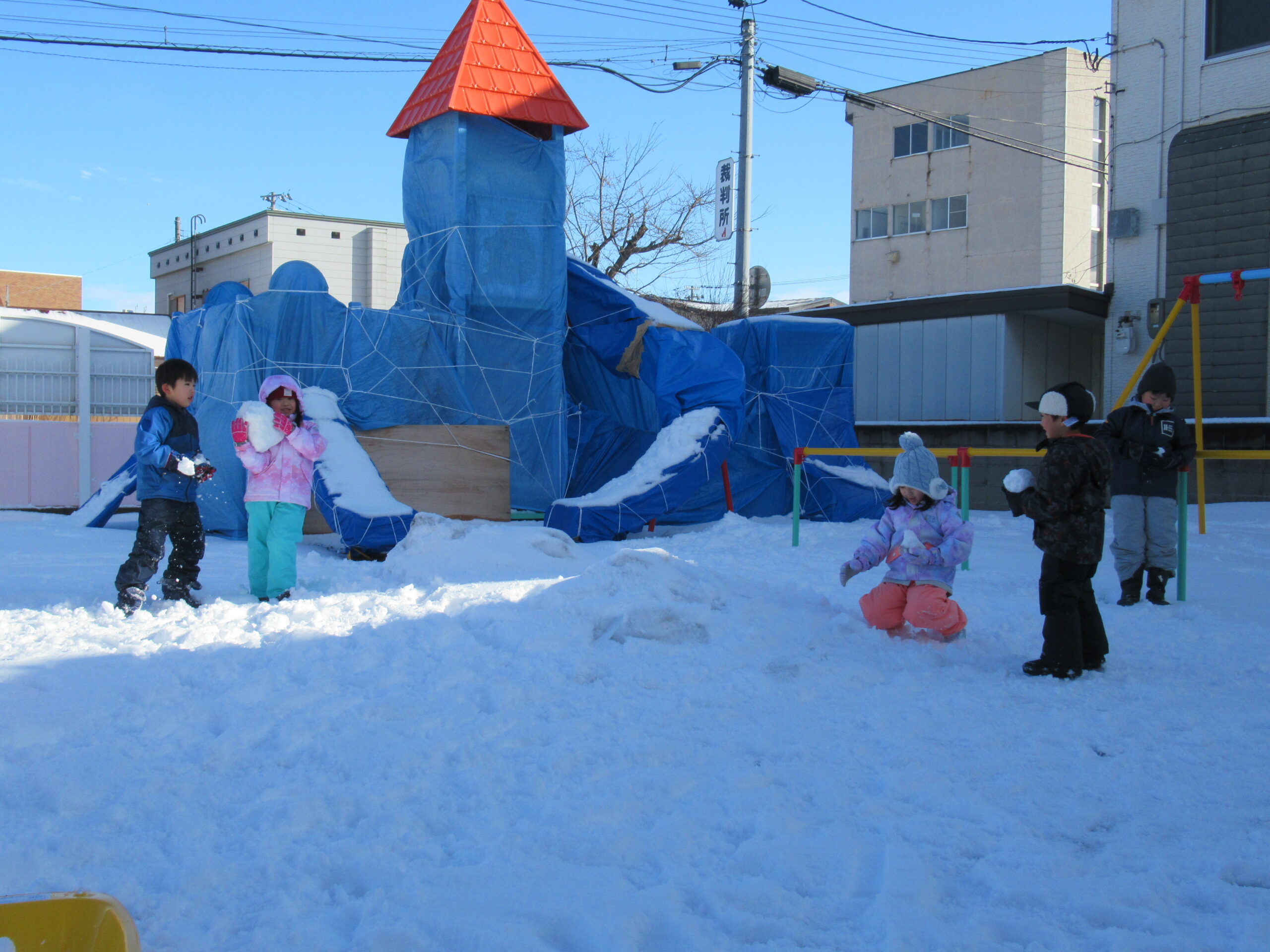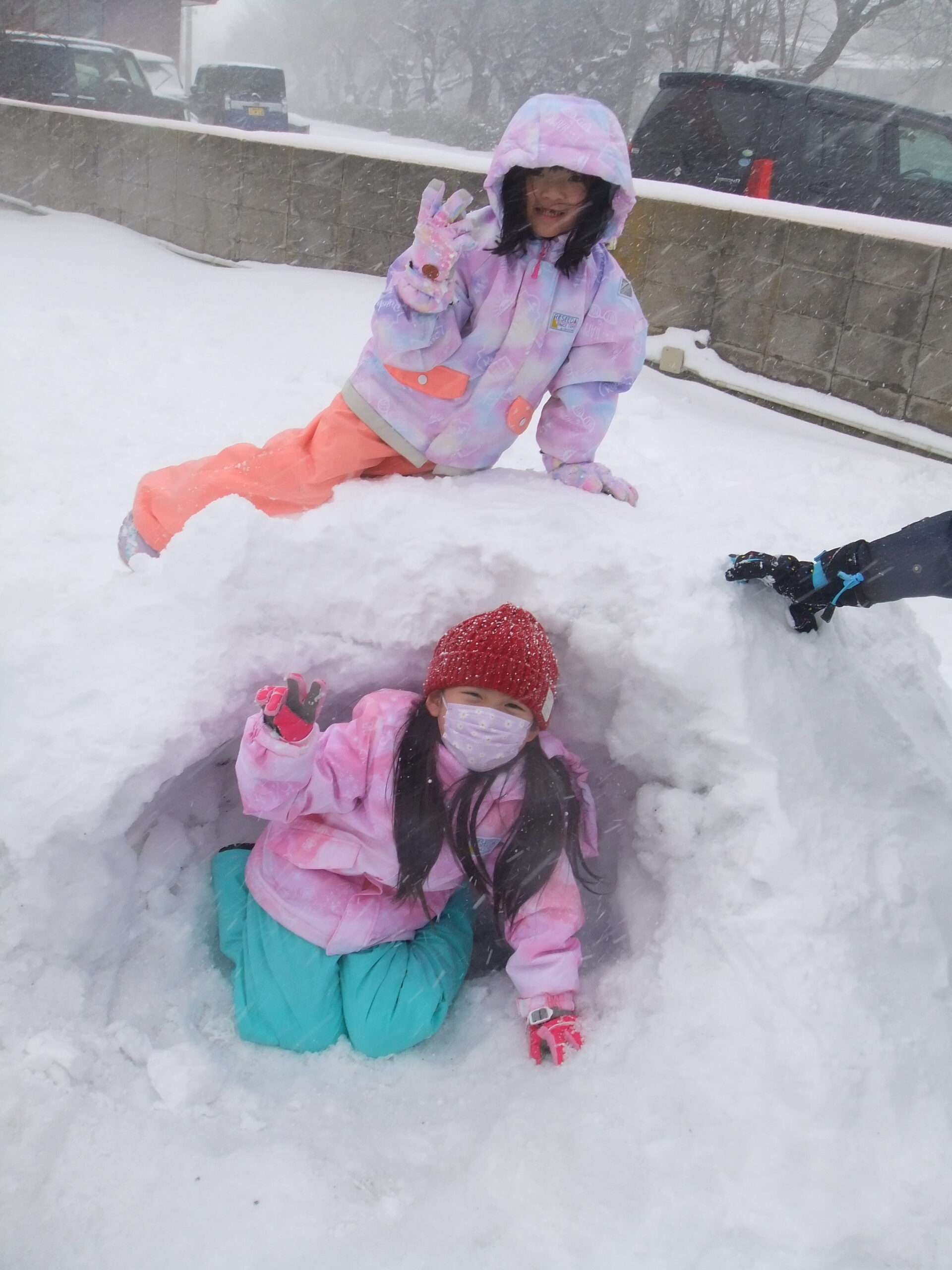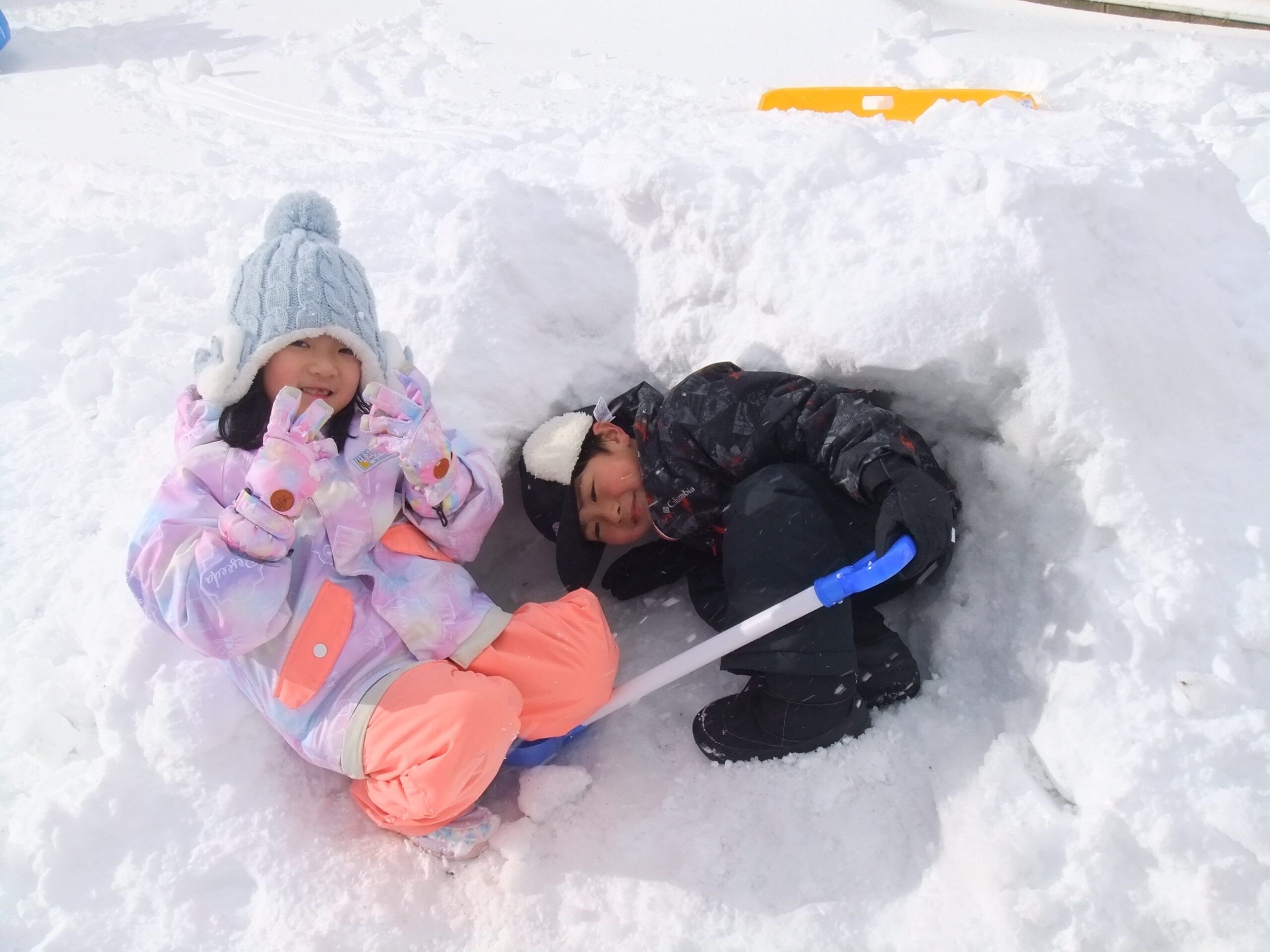 天気のいい日を見つけて、小さいかまくらを作ったり、ソリ滑りや雪合戦をしたりと冬ならではの遊びも楽しみましたよ。