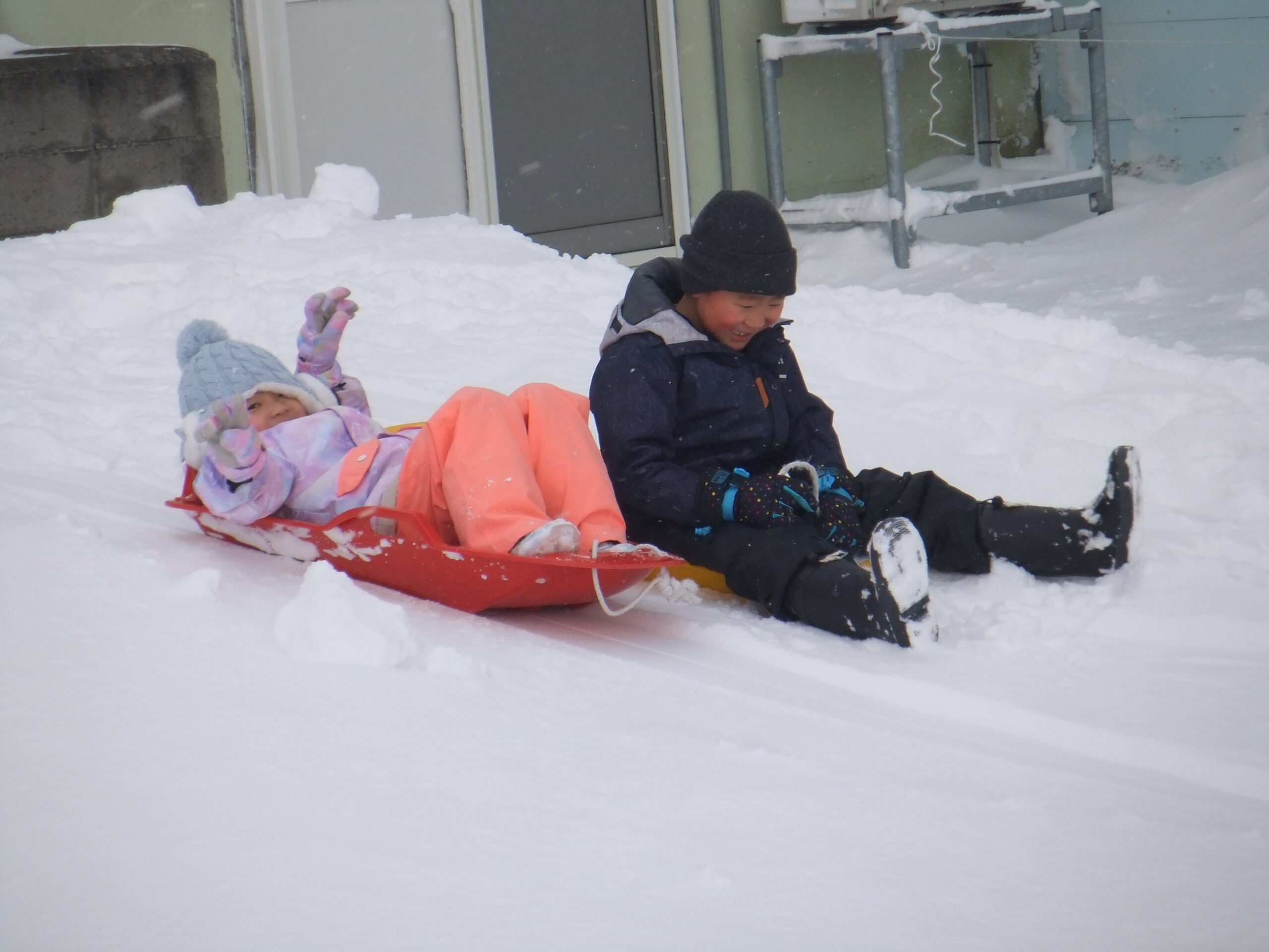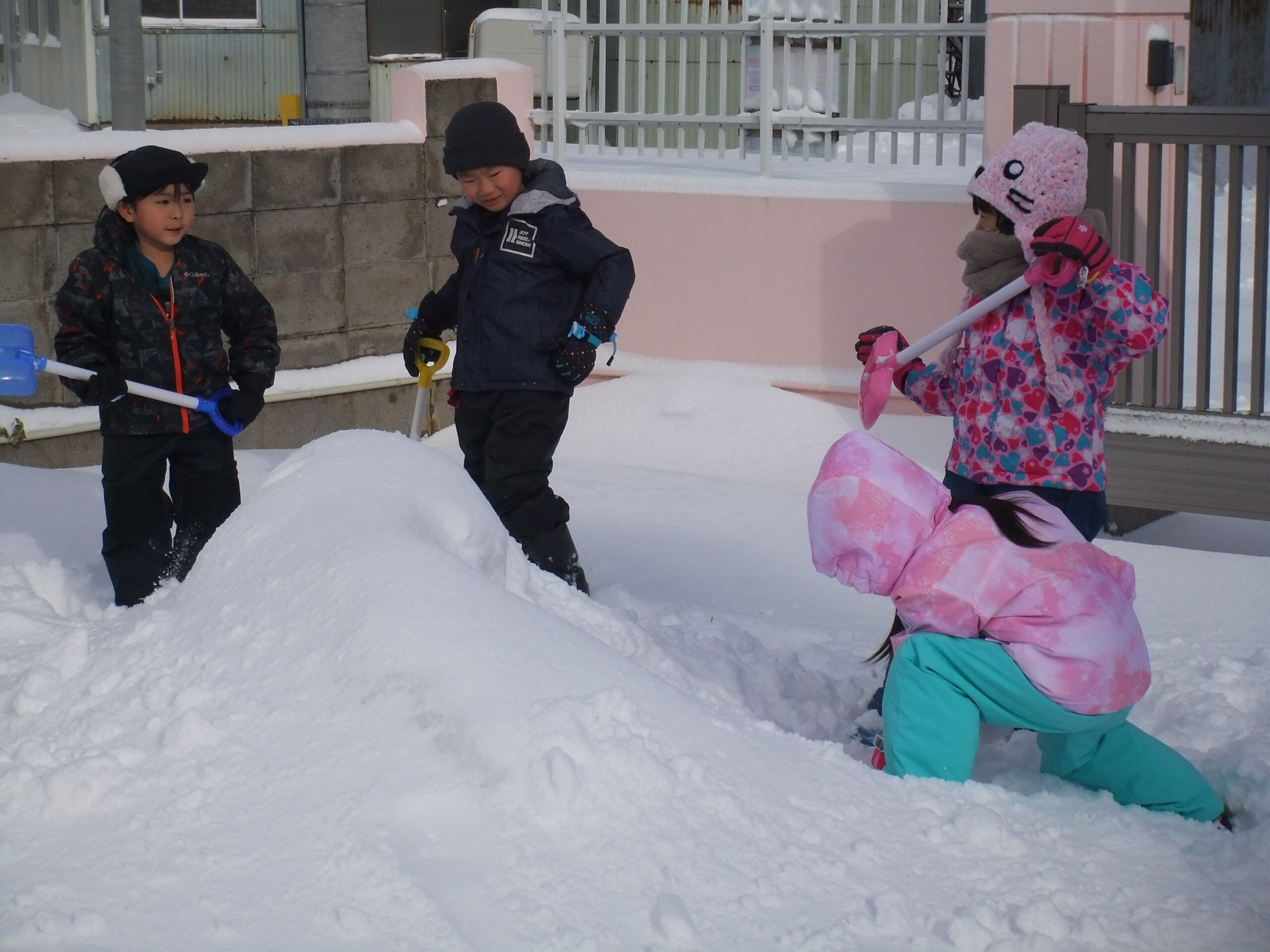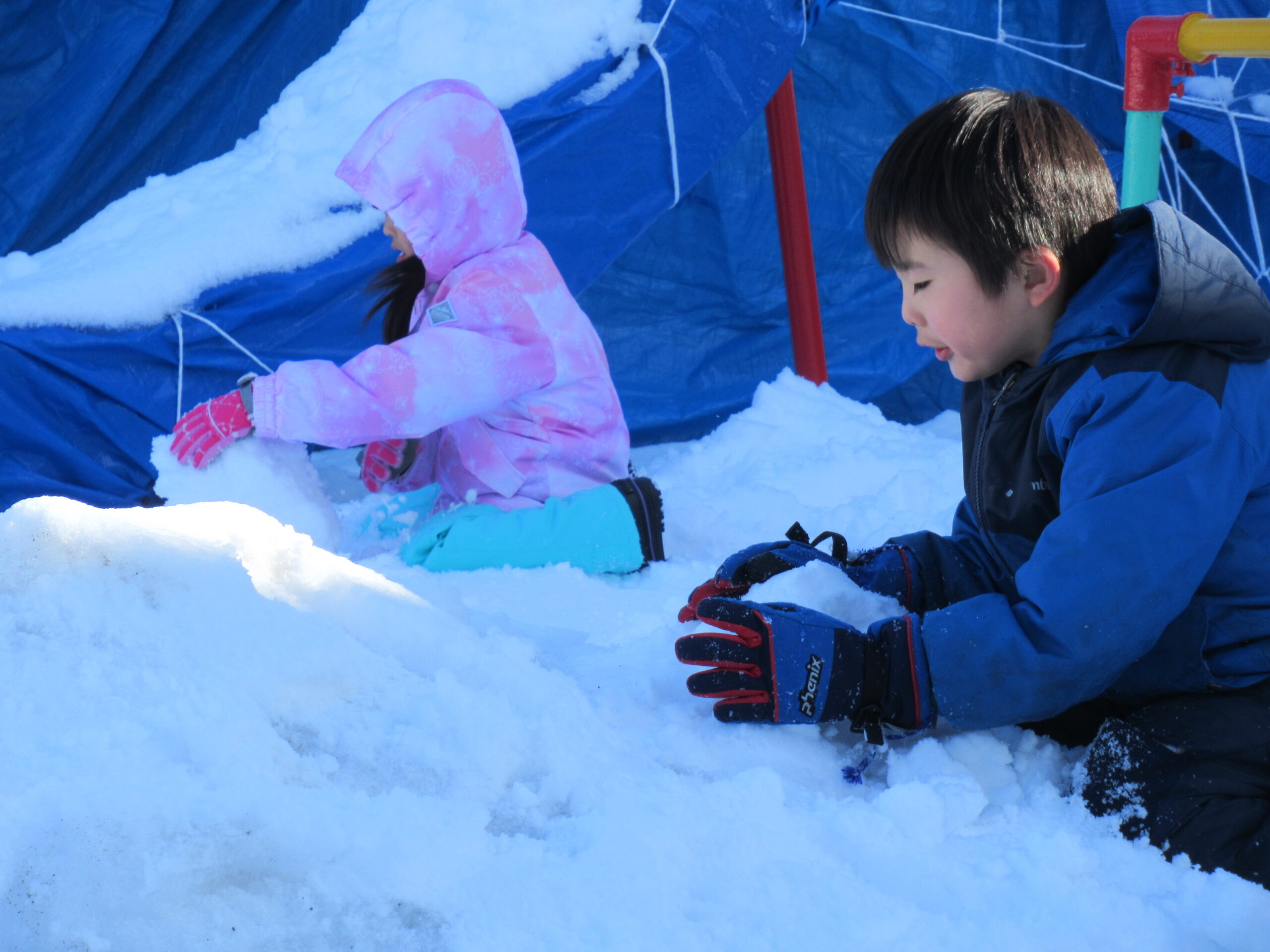 天気のいい日を見つけて、小さいかまくらを作ったり、ソリ滑りや雪合戦をしたりと冬ならではの遊びも楽しみましたよ。