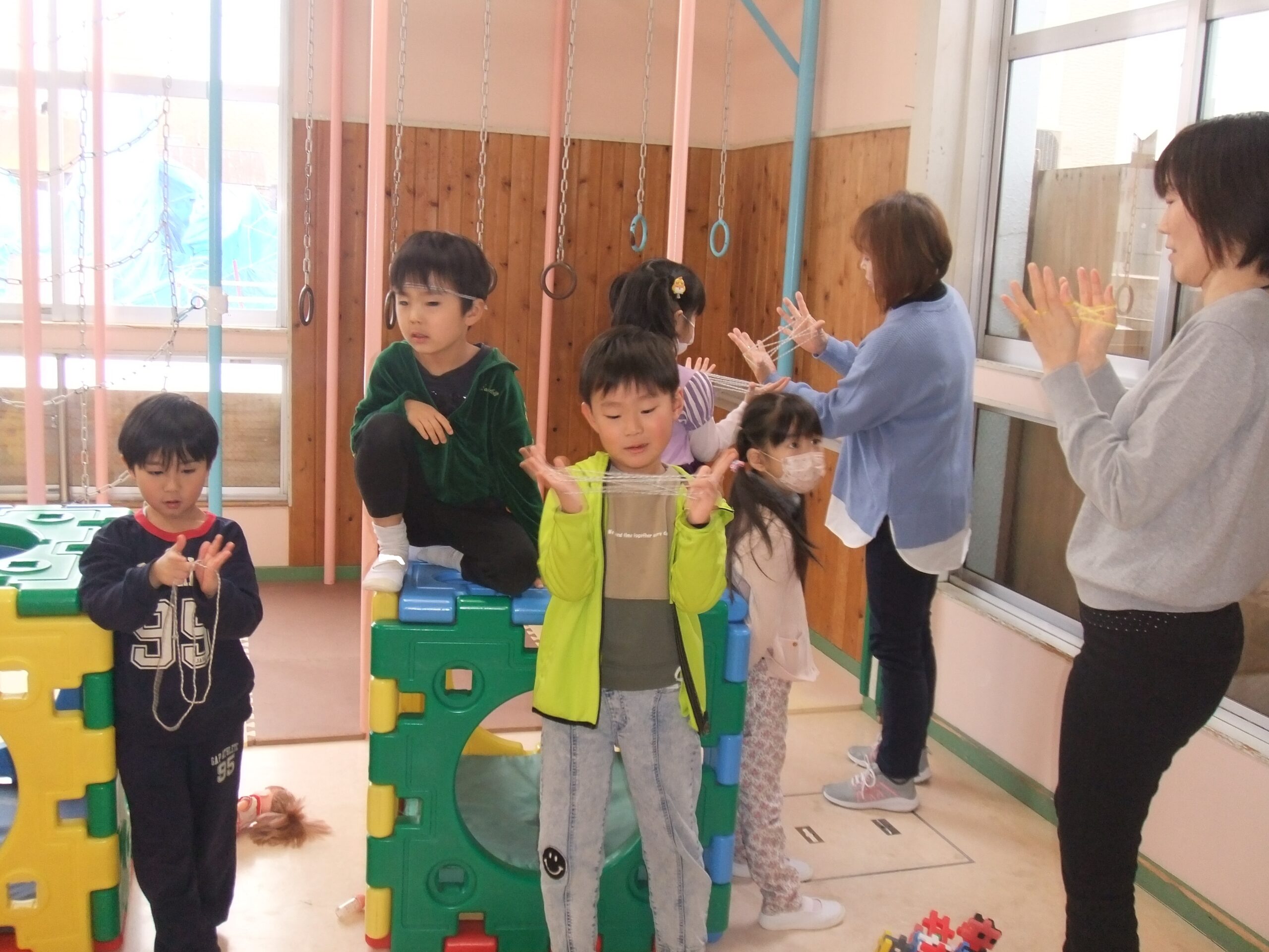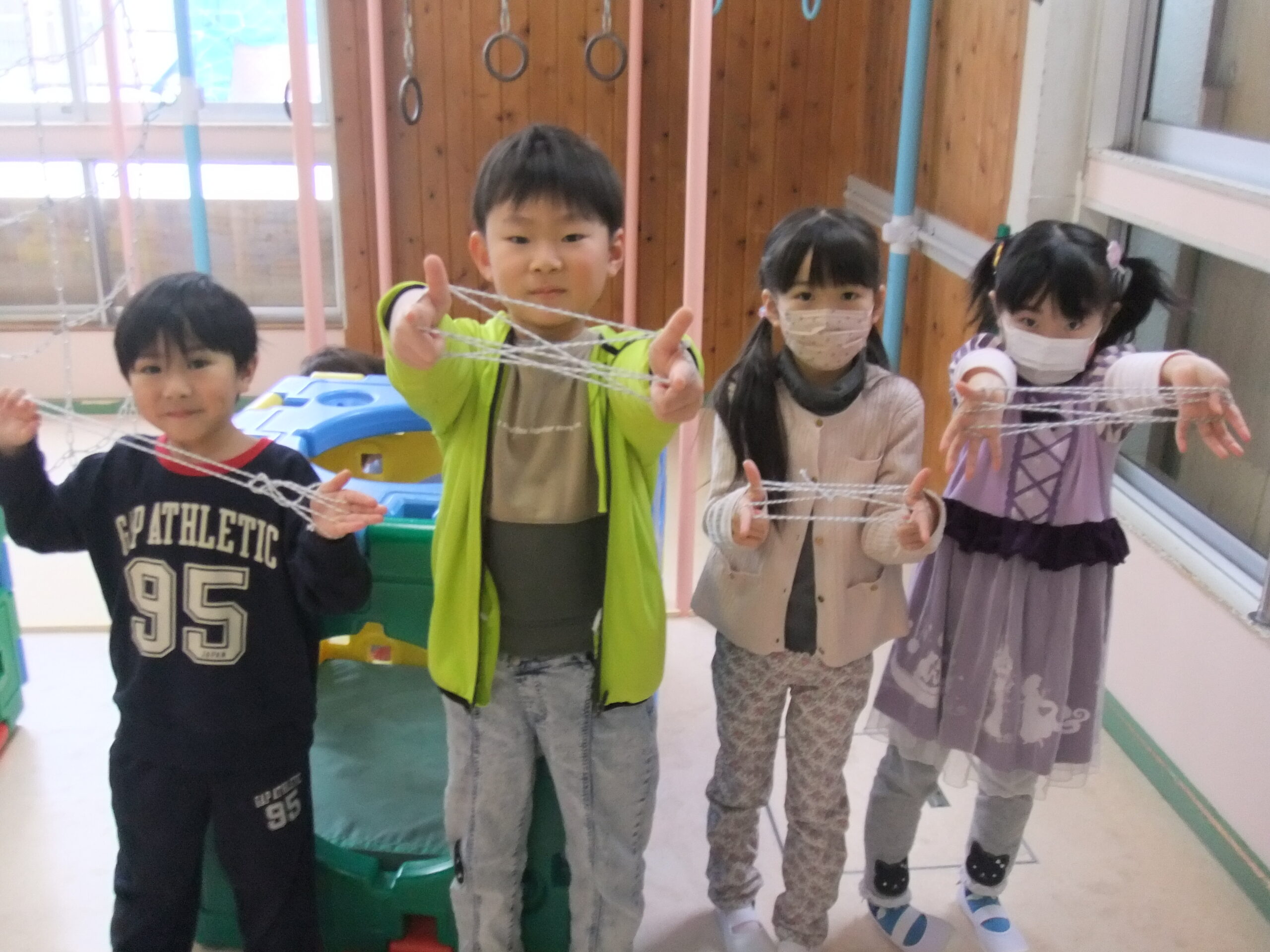 朝の自由遊びの時間は、先生たちからやり方を教わったり、わからない子に教えてあげたりとあやとり教室が開かれるときも。