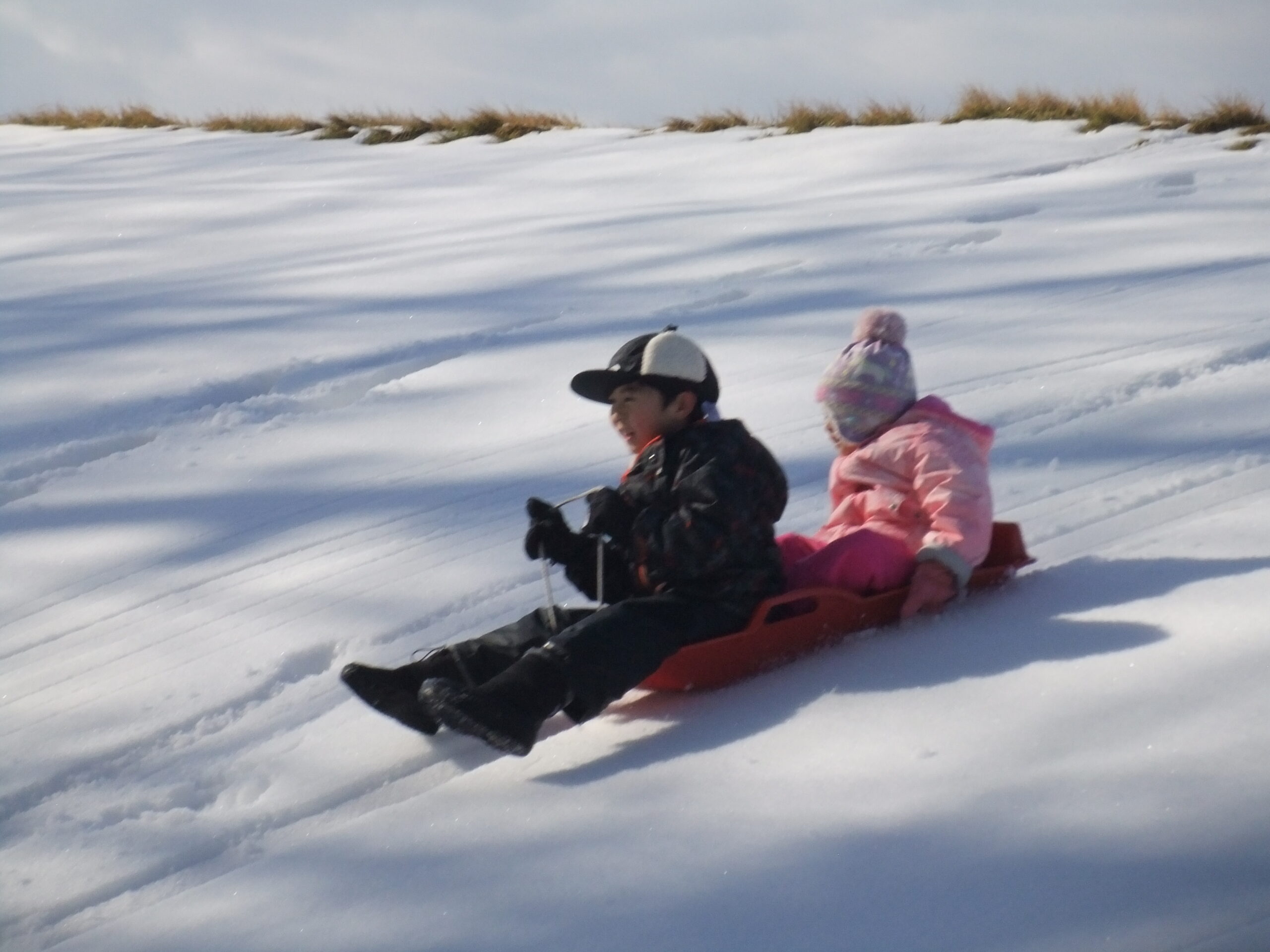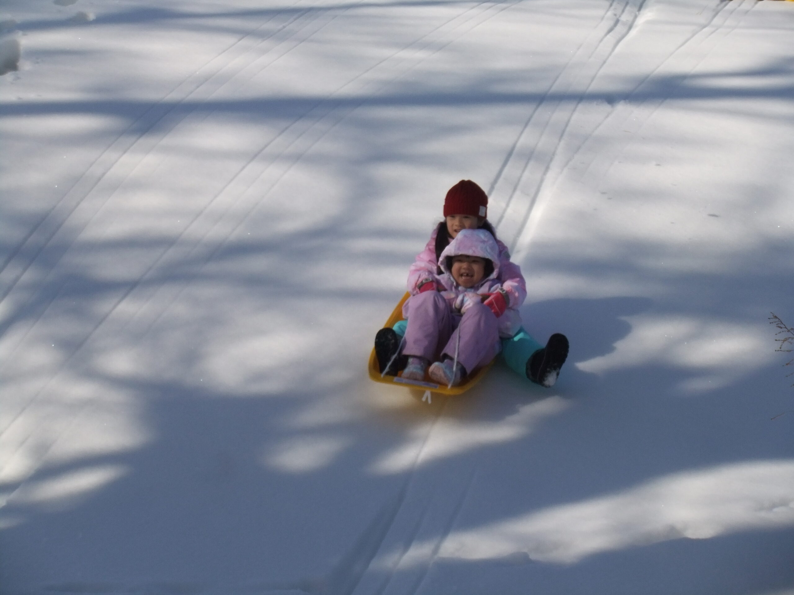 幼稚園の雪山より急な坂だったので、スピードが出て迫力満点!!