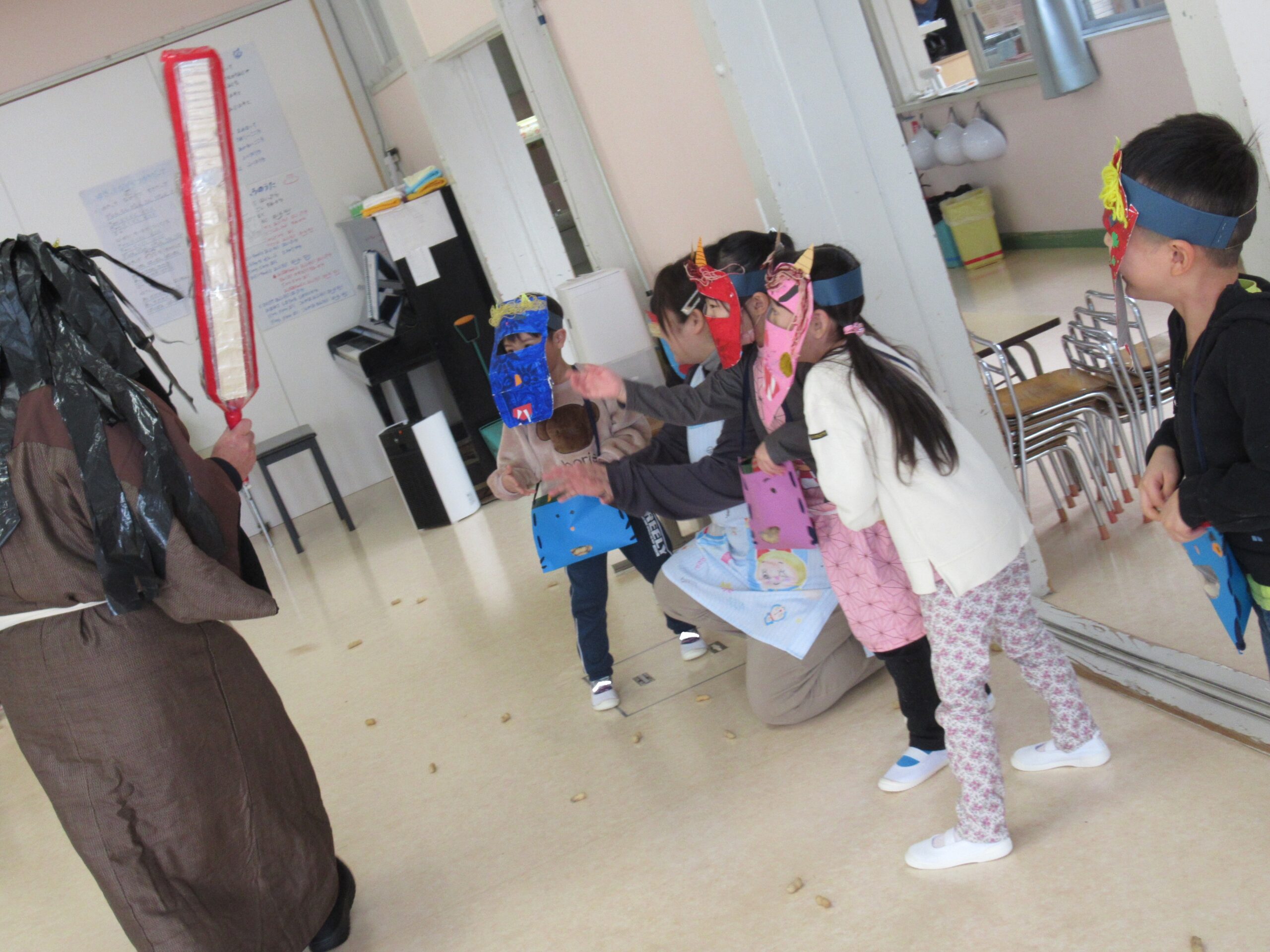それでも、クラスのみんなが守ってくれ、なんとかみんな豆をまいて退治することができました。