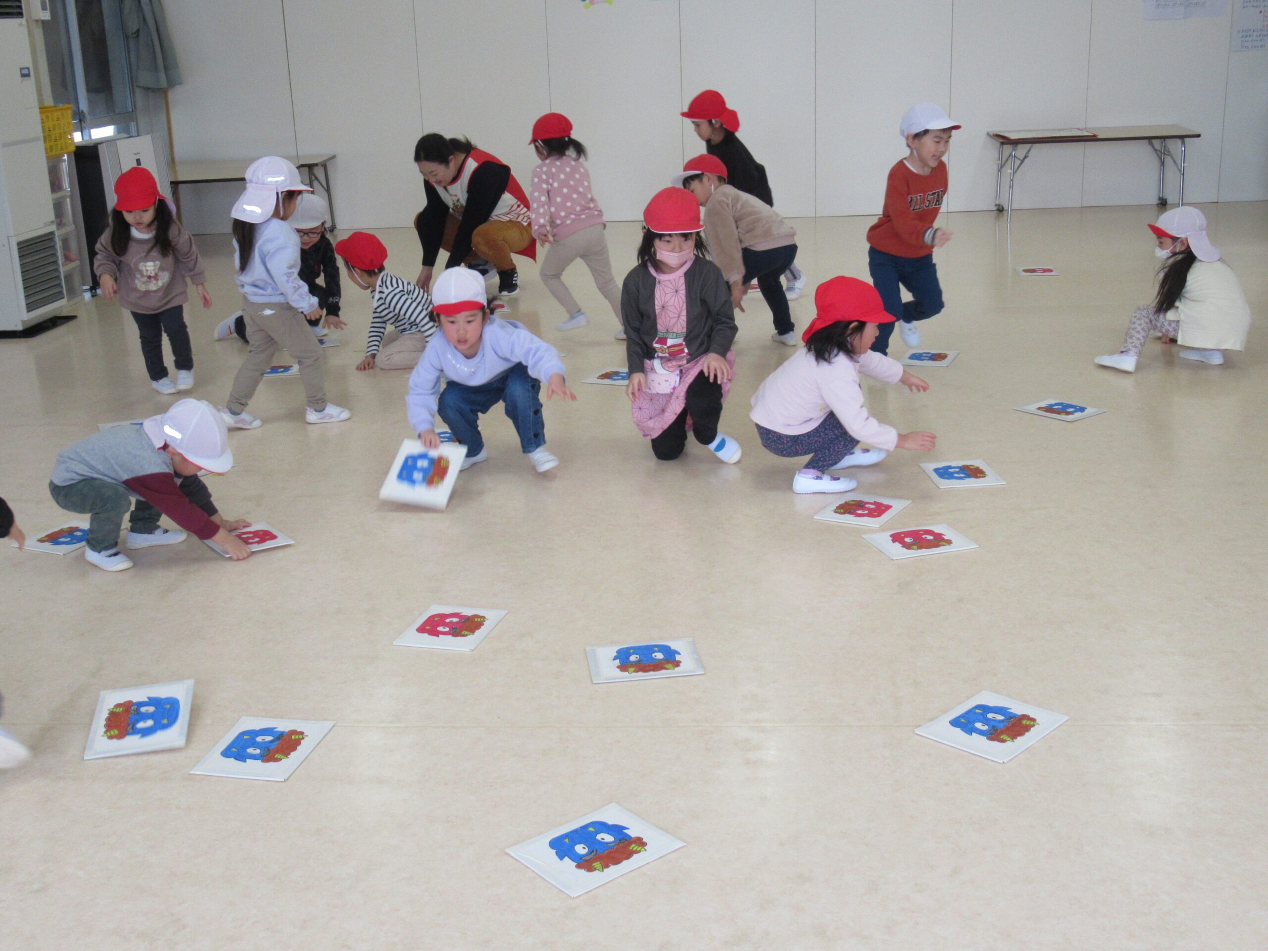 その後は、全園児で鬼の絵が描いてあるオセロゲームを楽しみました。