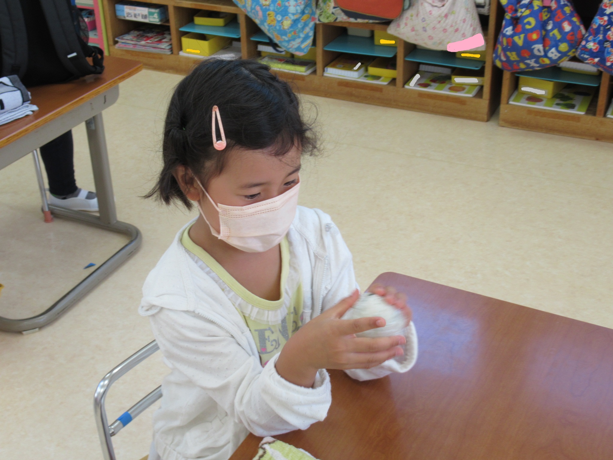 登園してすぐ荷物の確認を自分でしました。