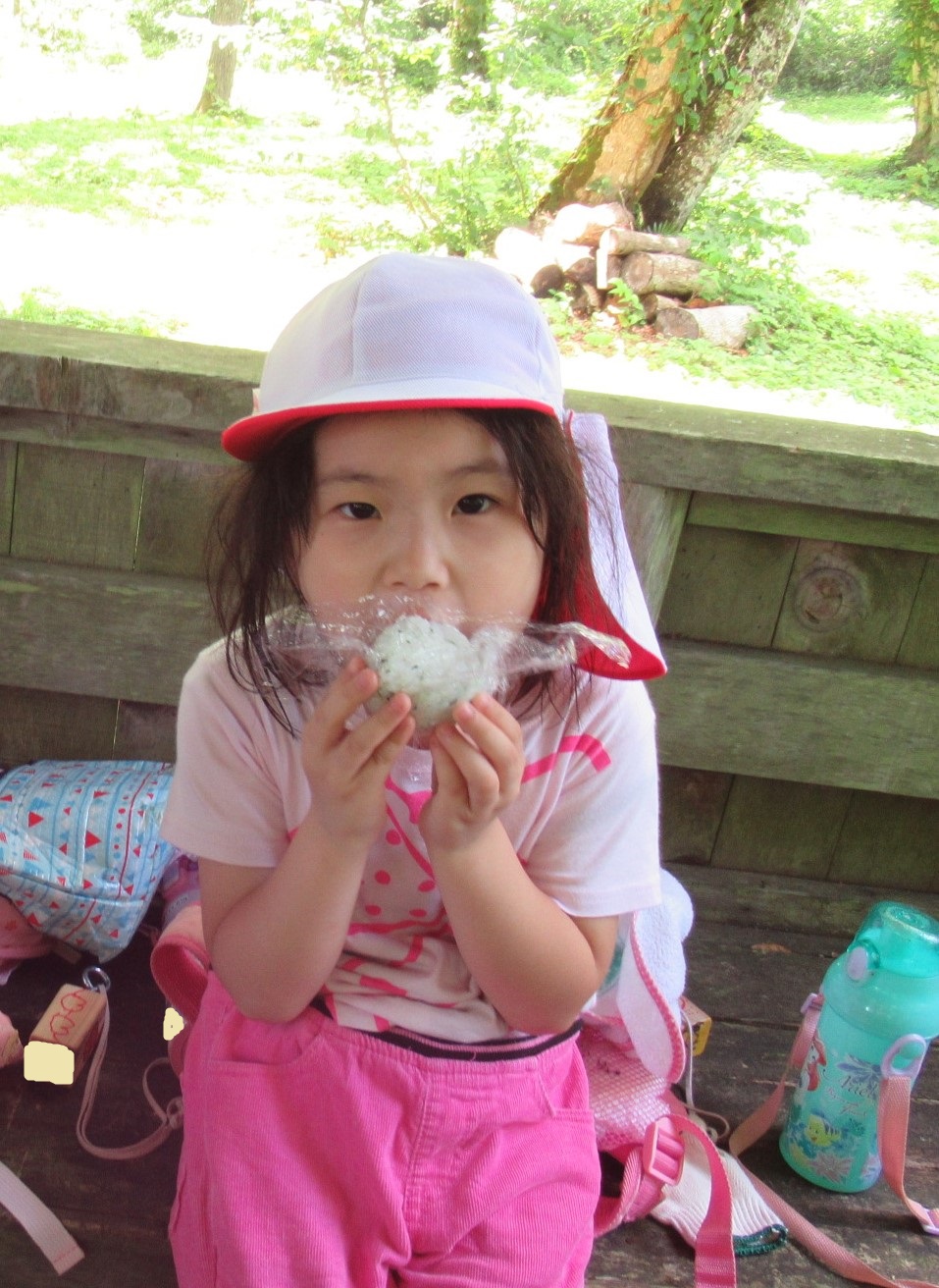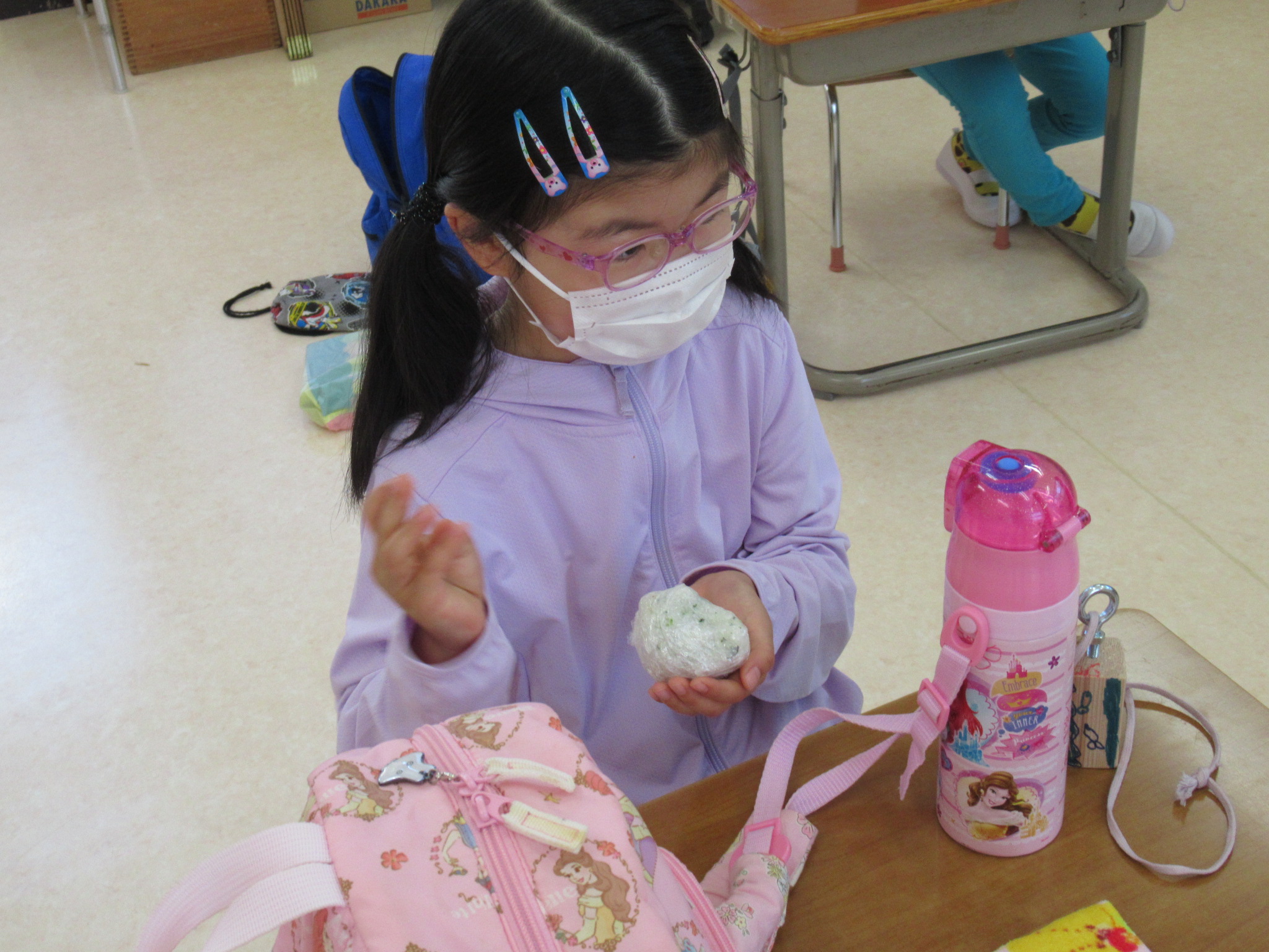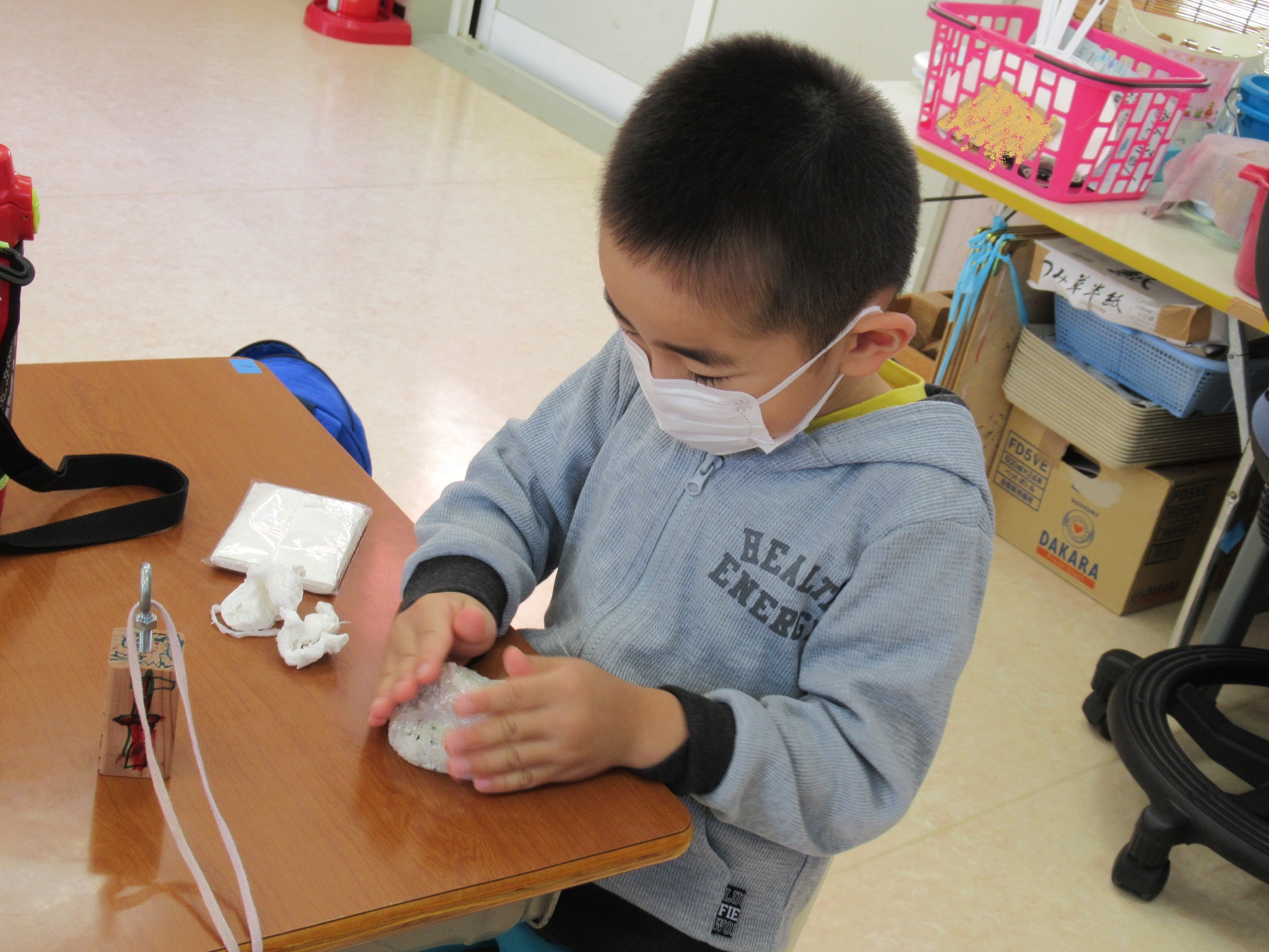 その後、お昼に食べる自分のおにぎり作りをしました。