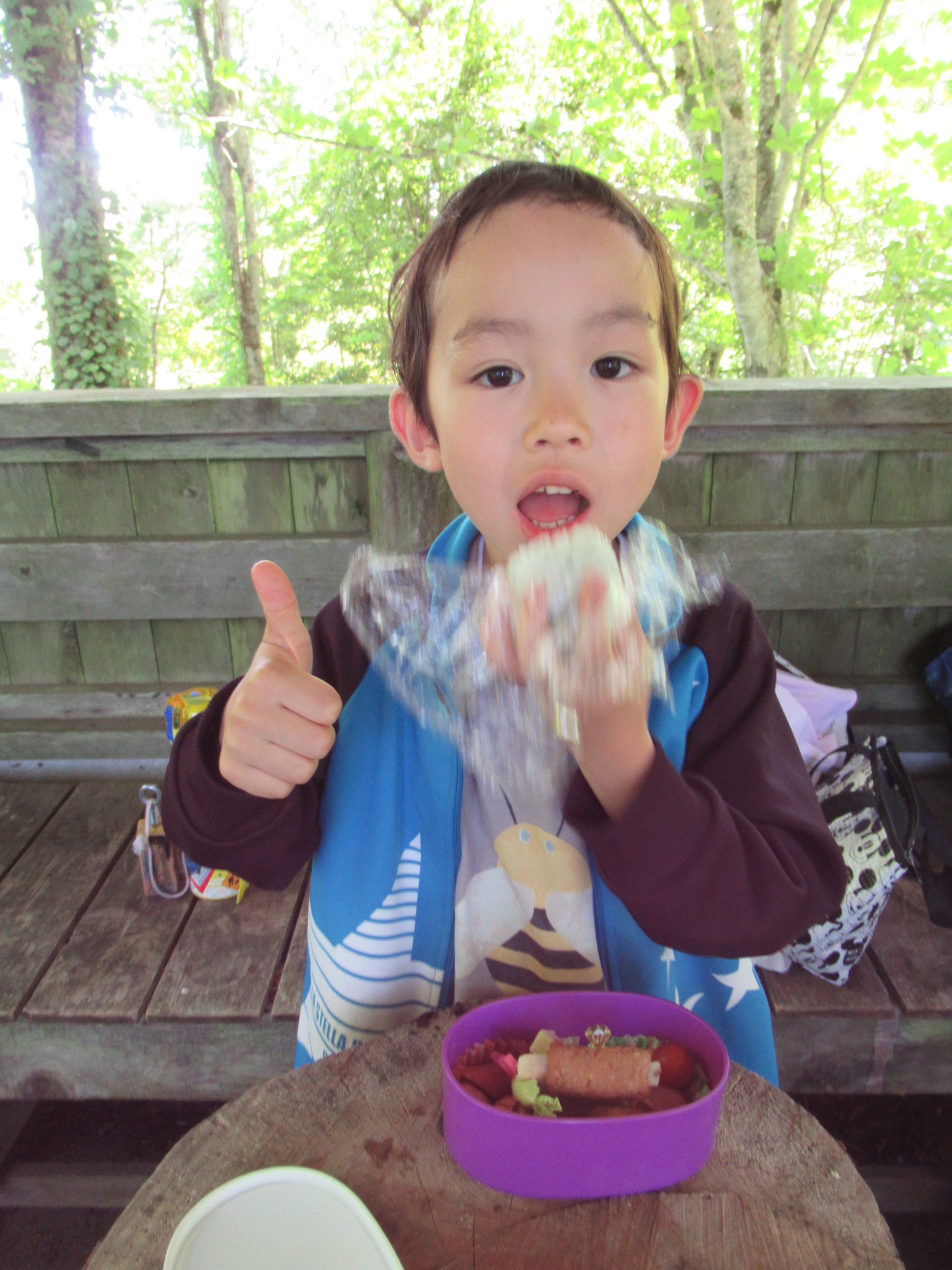 お昼のお弁当を食べました。