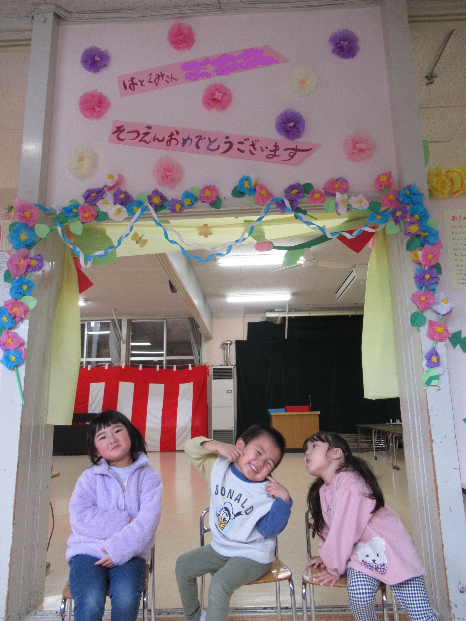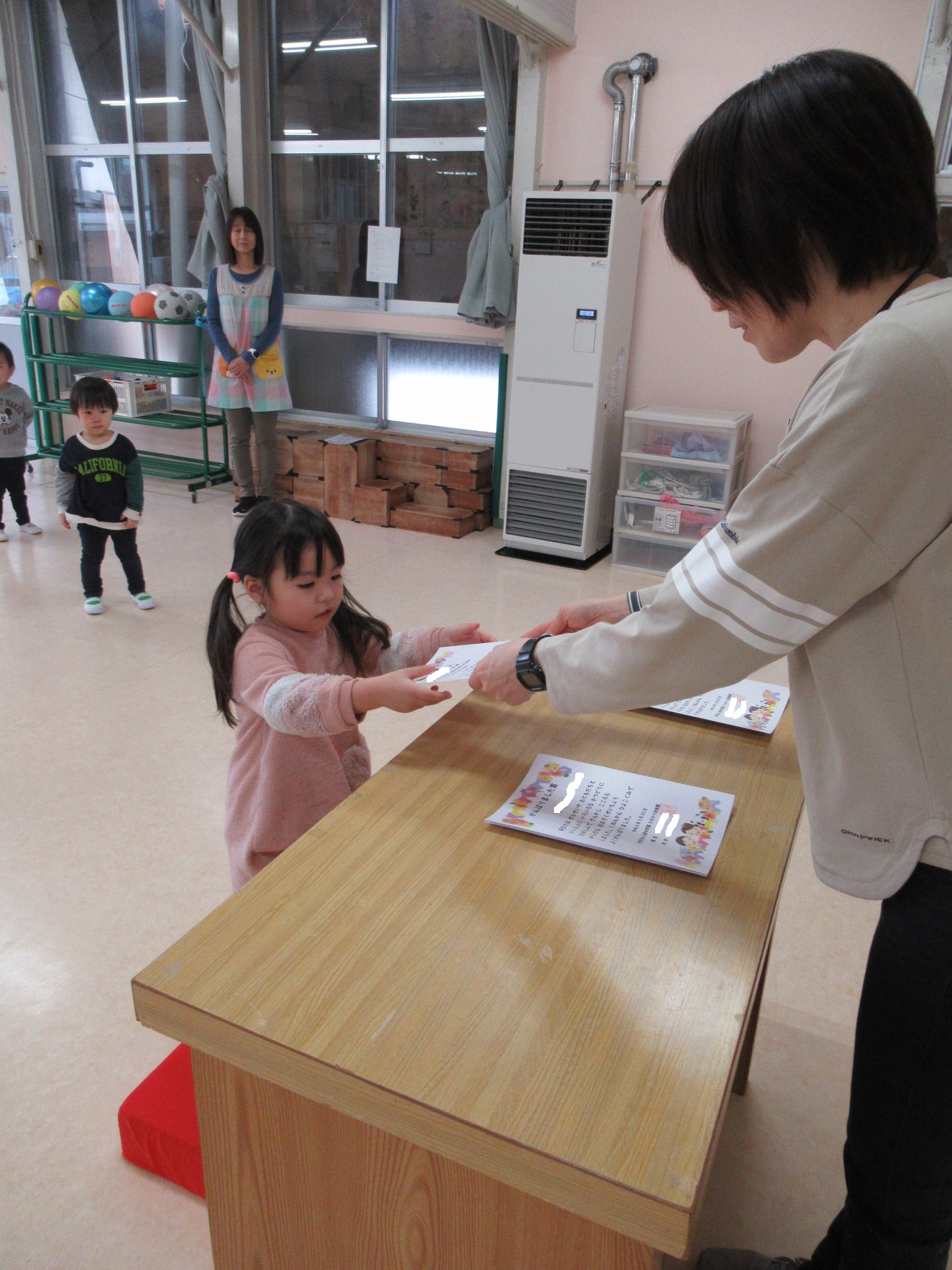 3学期は、なかなか全員揃う日が少なかったのですが、修園式は全員揃って迎えることができました。修了証書を園長先生から一人ずつ受け取る練習をして臨んだのですが、本番は、ドキドキと胸の鼓動が聞こえてくるくらい緊張をした表情になっていたのが印象的でした。