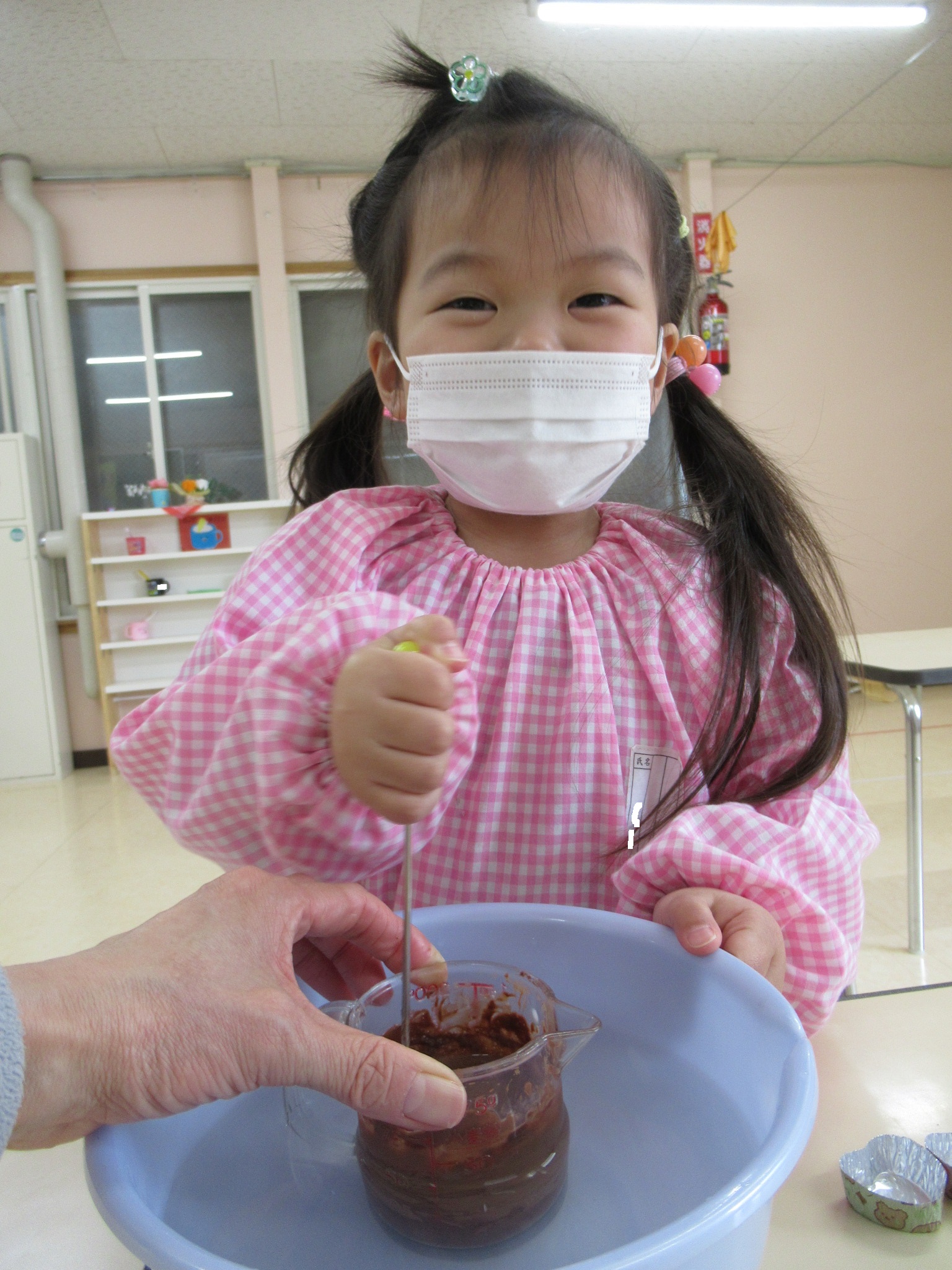 ひよこ組最後の日は、みんなで前日に作った「豆乳チョコ」をいただきました。