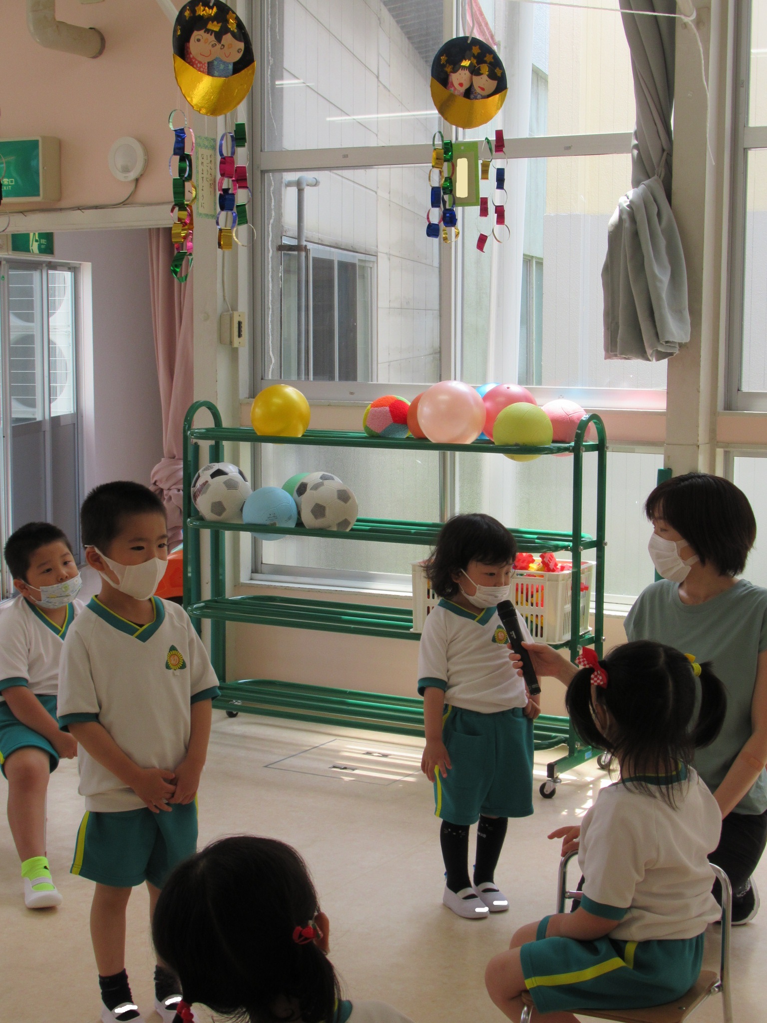 代表の人が、七夕飾りで頑張ったところや願い事を発表する場面では