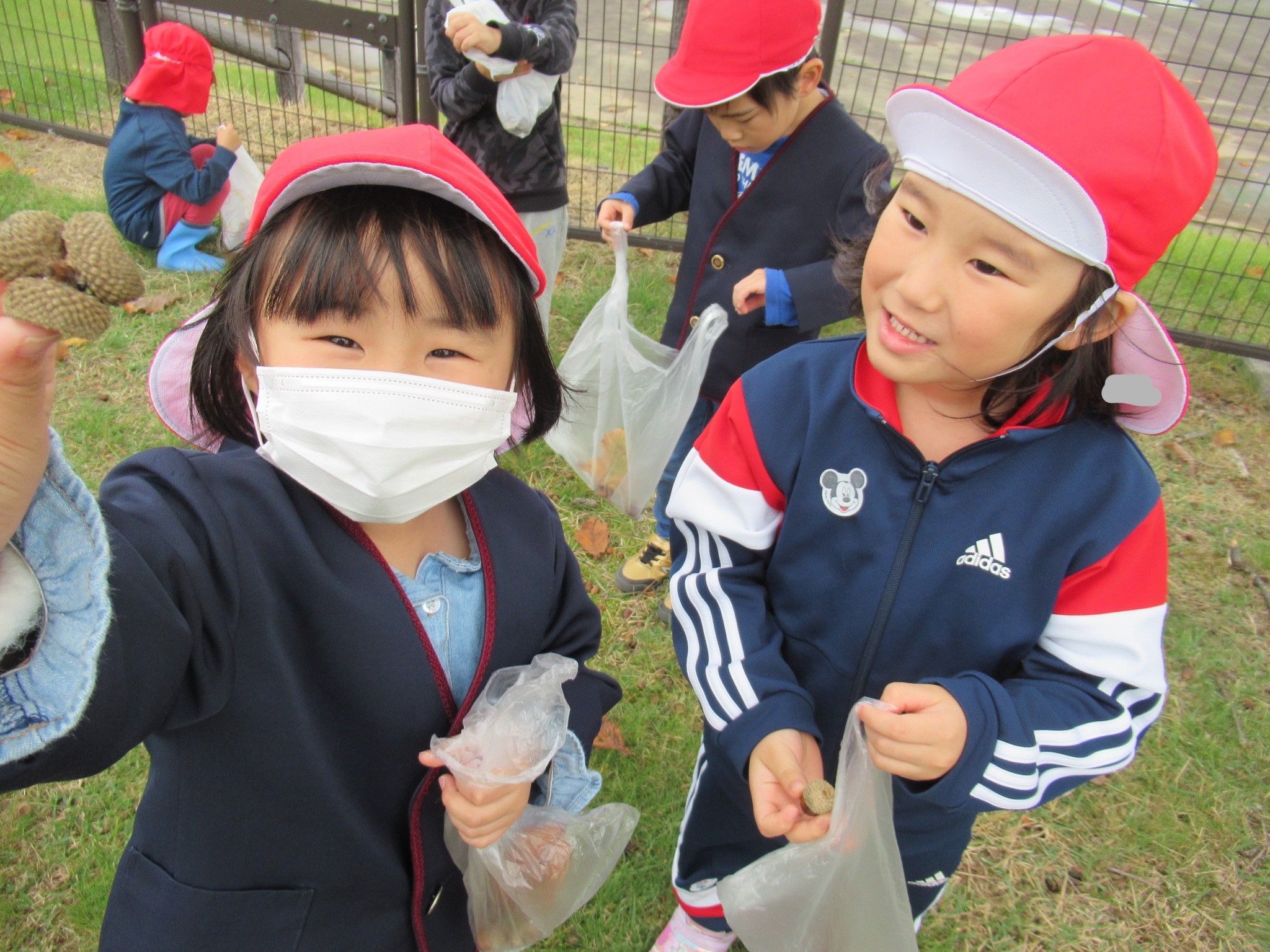 16日に幼稚園のみんなでどんぐり拾いと図書館に絵本を借りに行ってきました。
