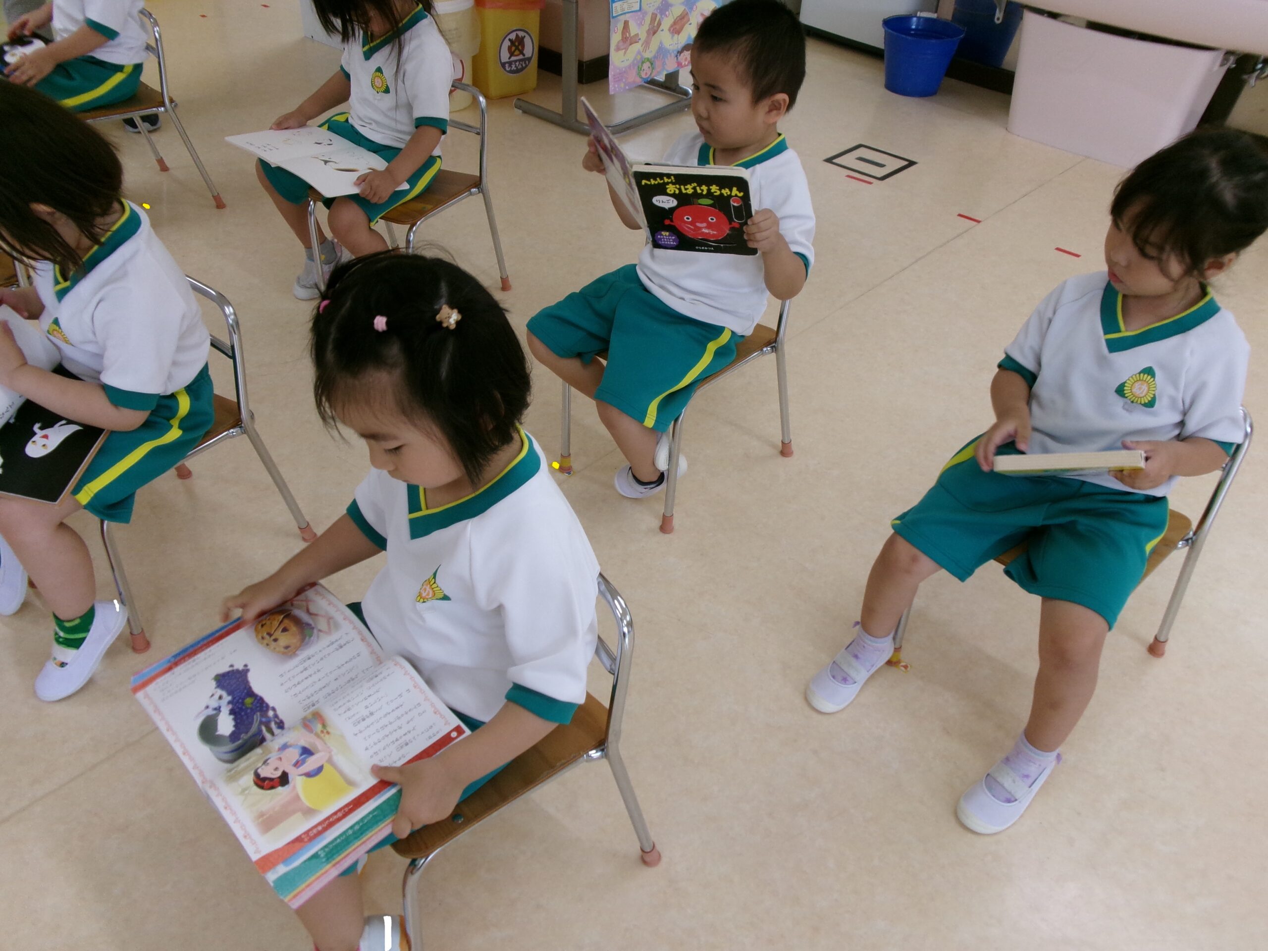 幼稚園に帰ってから借りた絵本をじっくり見ましたよ。