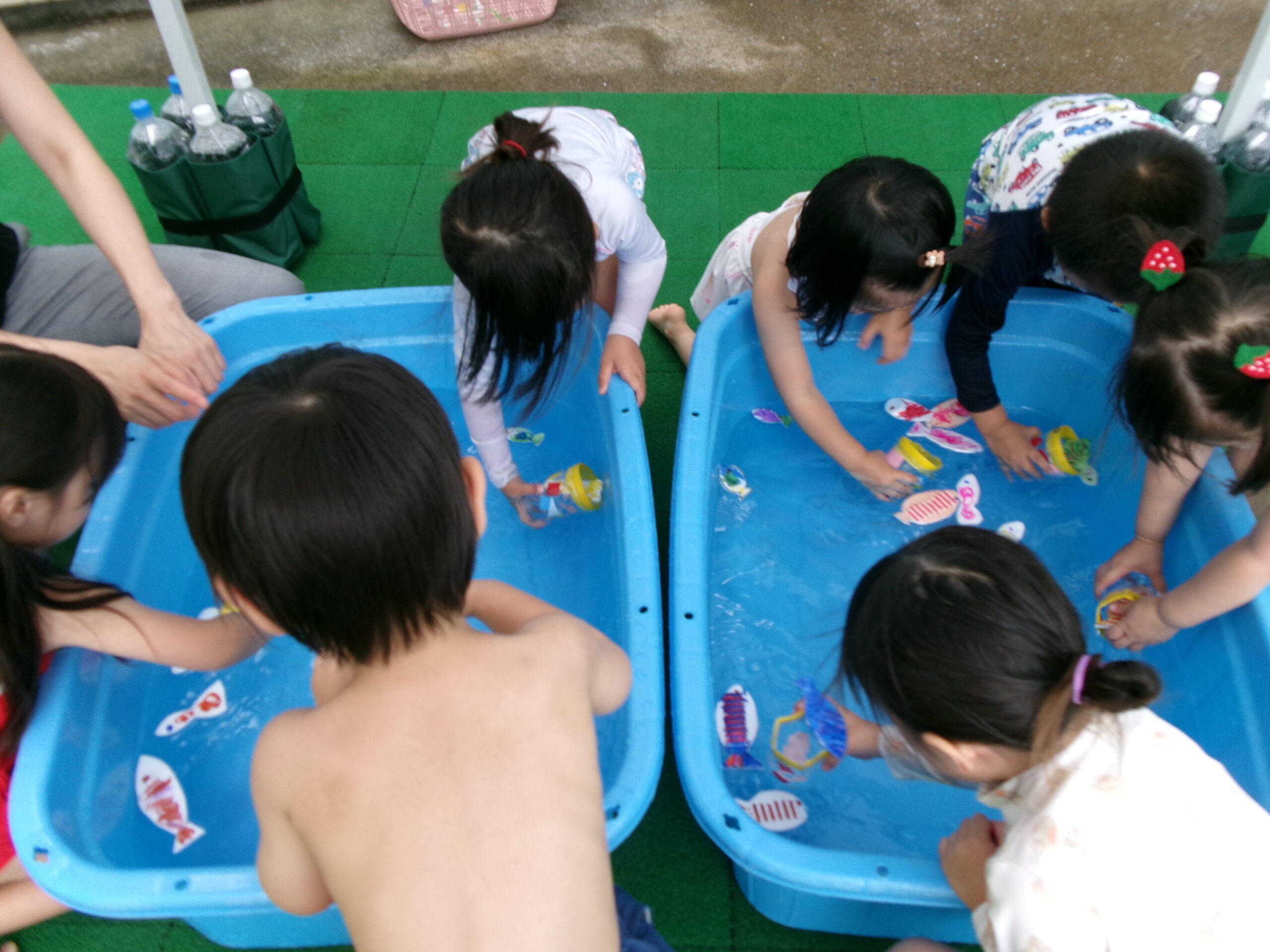 最初に、みんなで作ったお魚を使って「お魚すくい」を楽しみました。