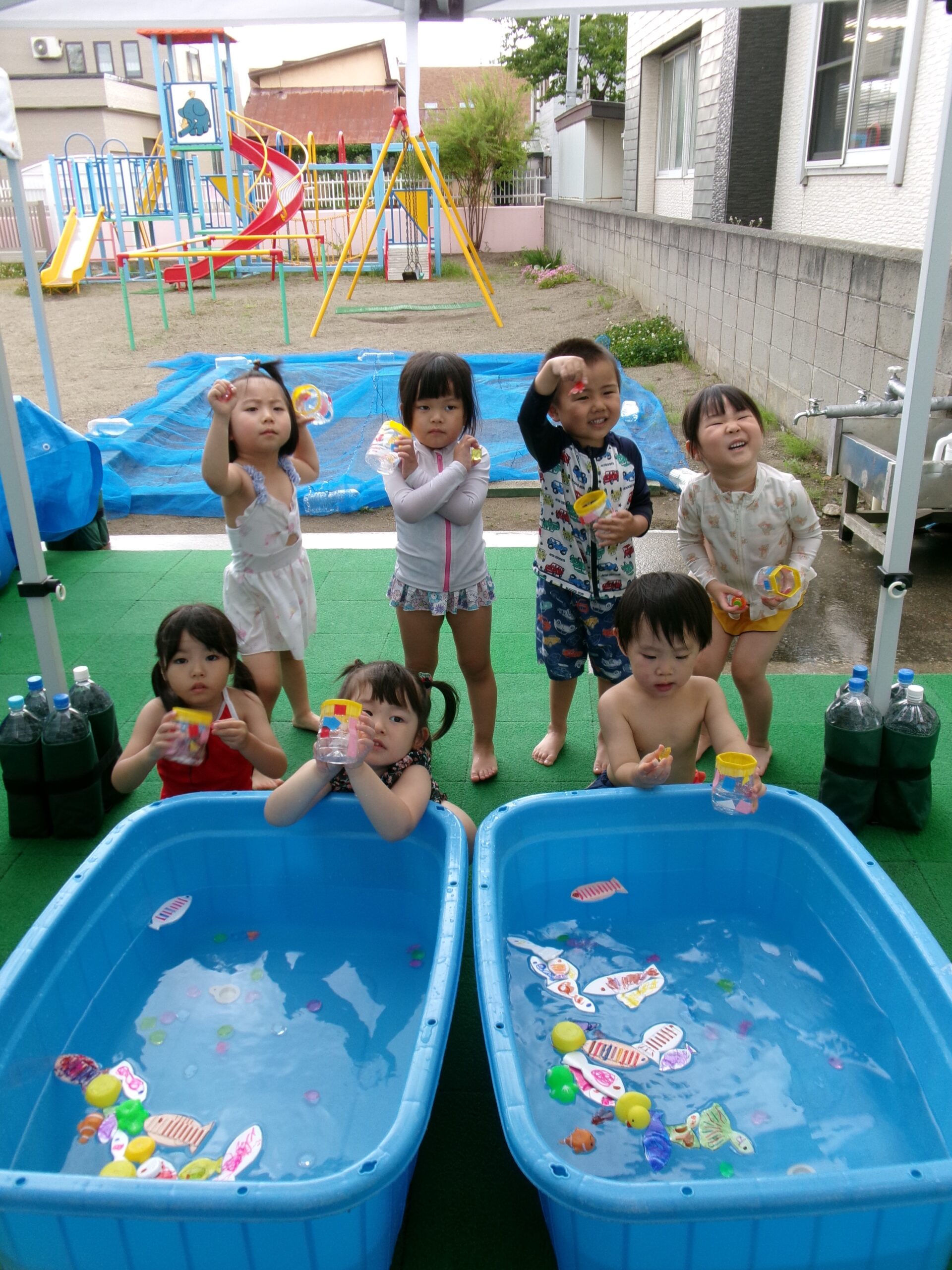 泥遊び・プールに入って水遊びなど、夏ならではの遊びを楽しみましたよ。