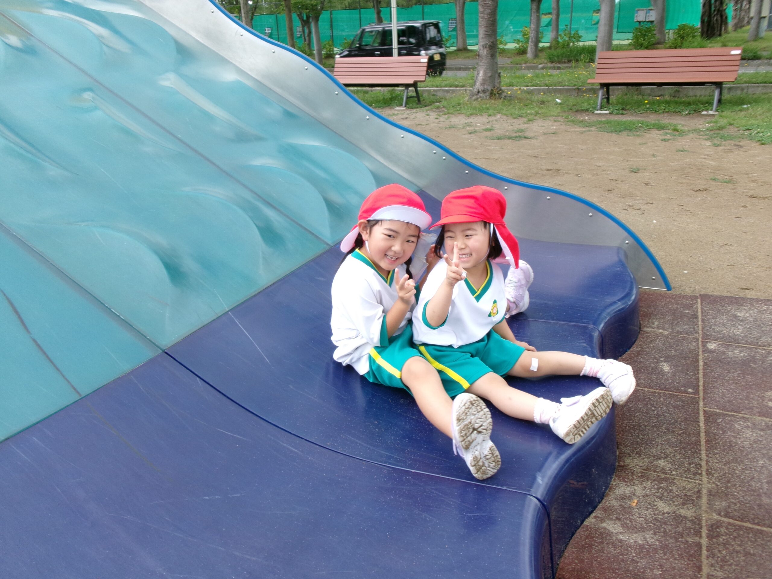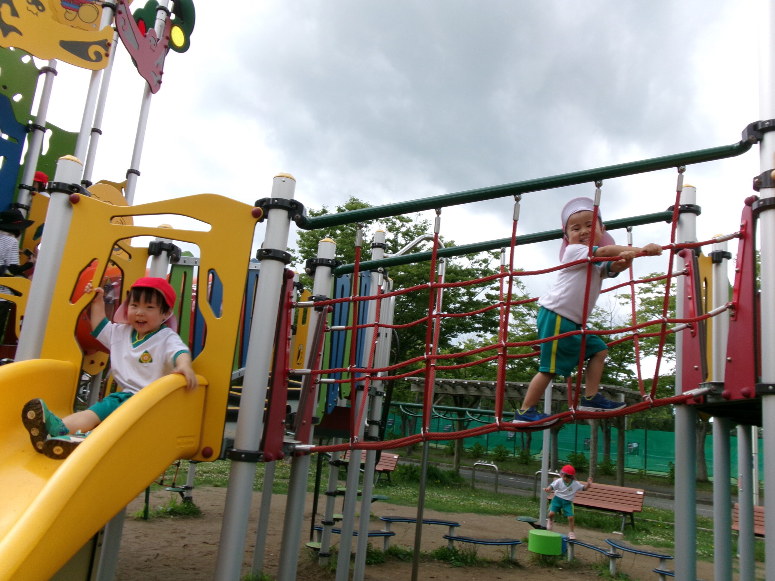 うさぎ組さんと一緒に大きい遊具でたくさん遊びました。