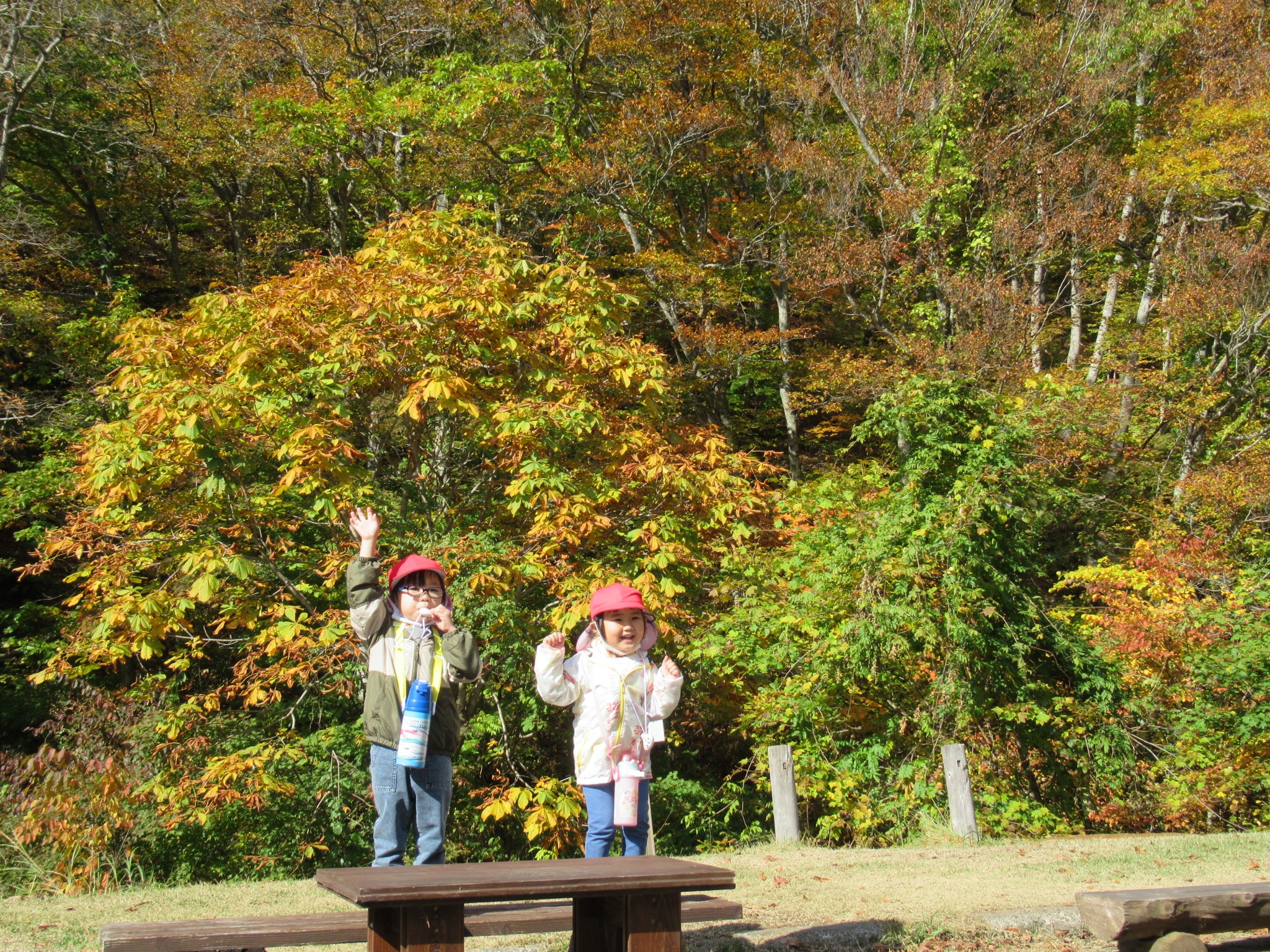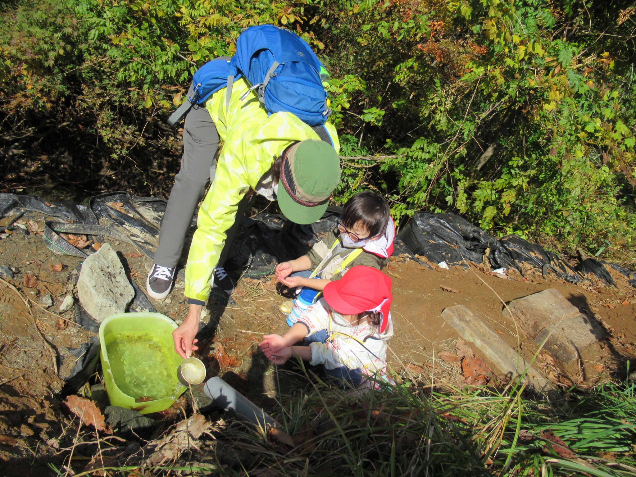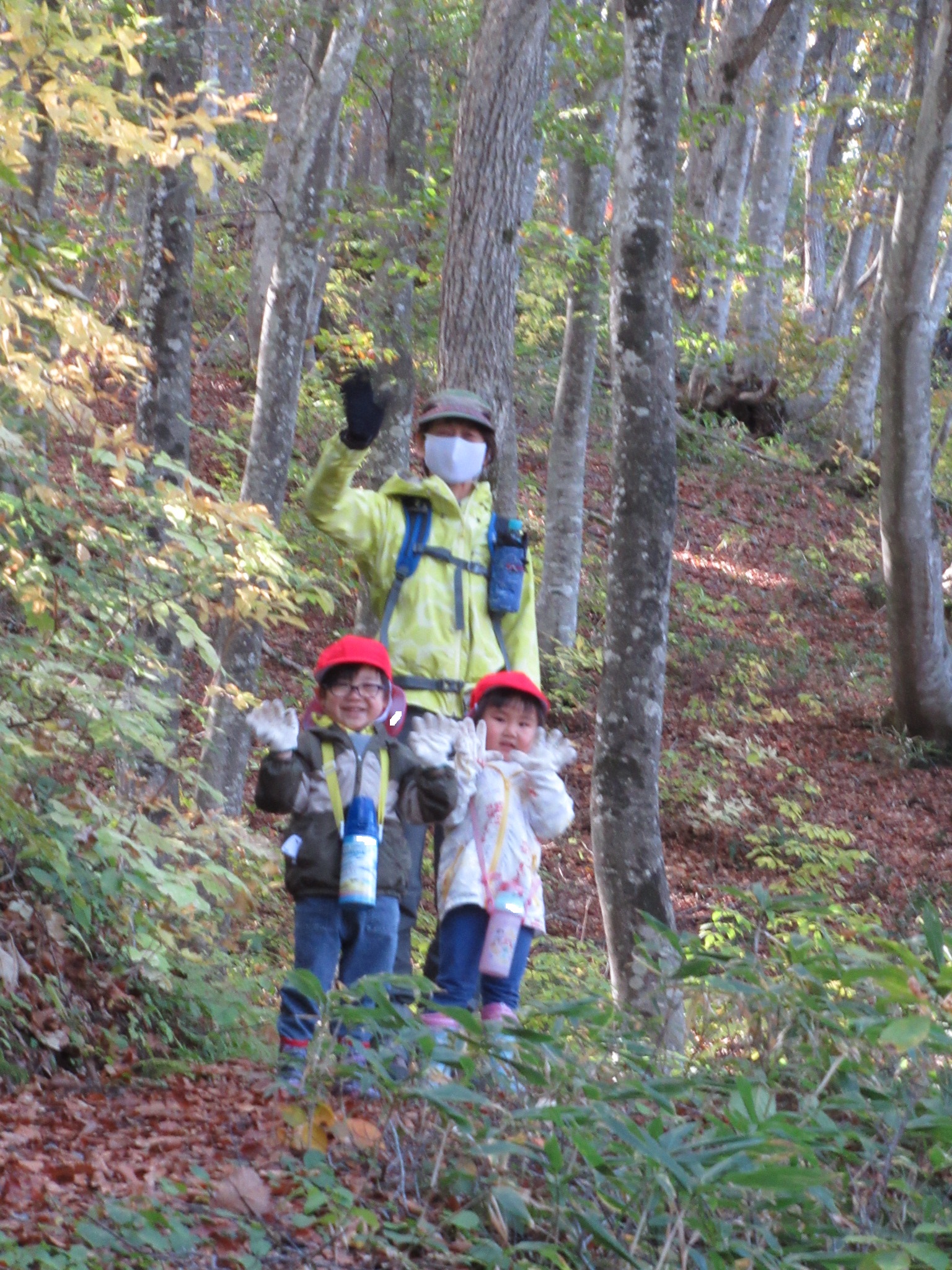下山後は、手作りのオカリナを吹いて山の鳥に呼び掛けてみました。それを離れたところで聞いていたうさぎぐみさんは鳥が鳴いていると思ったようです。