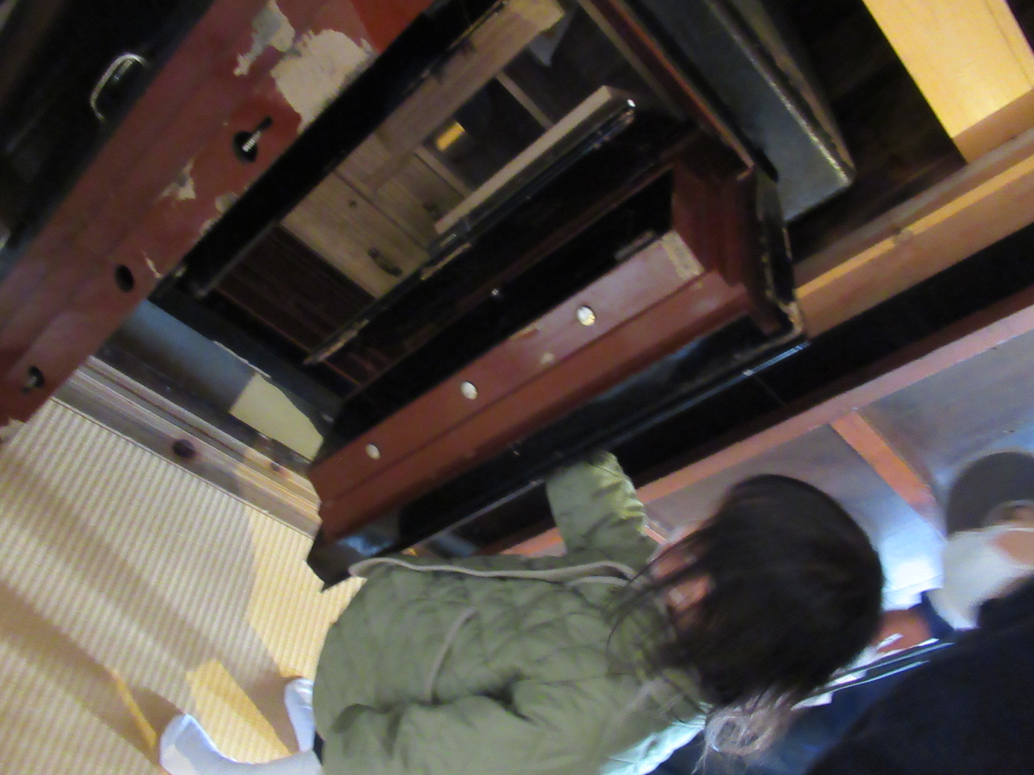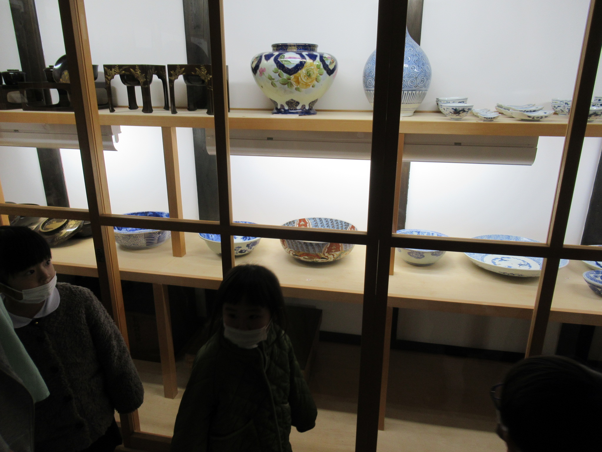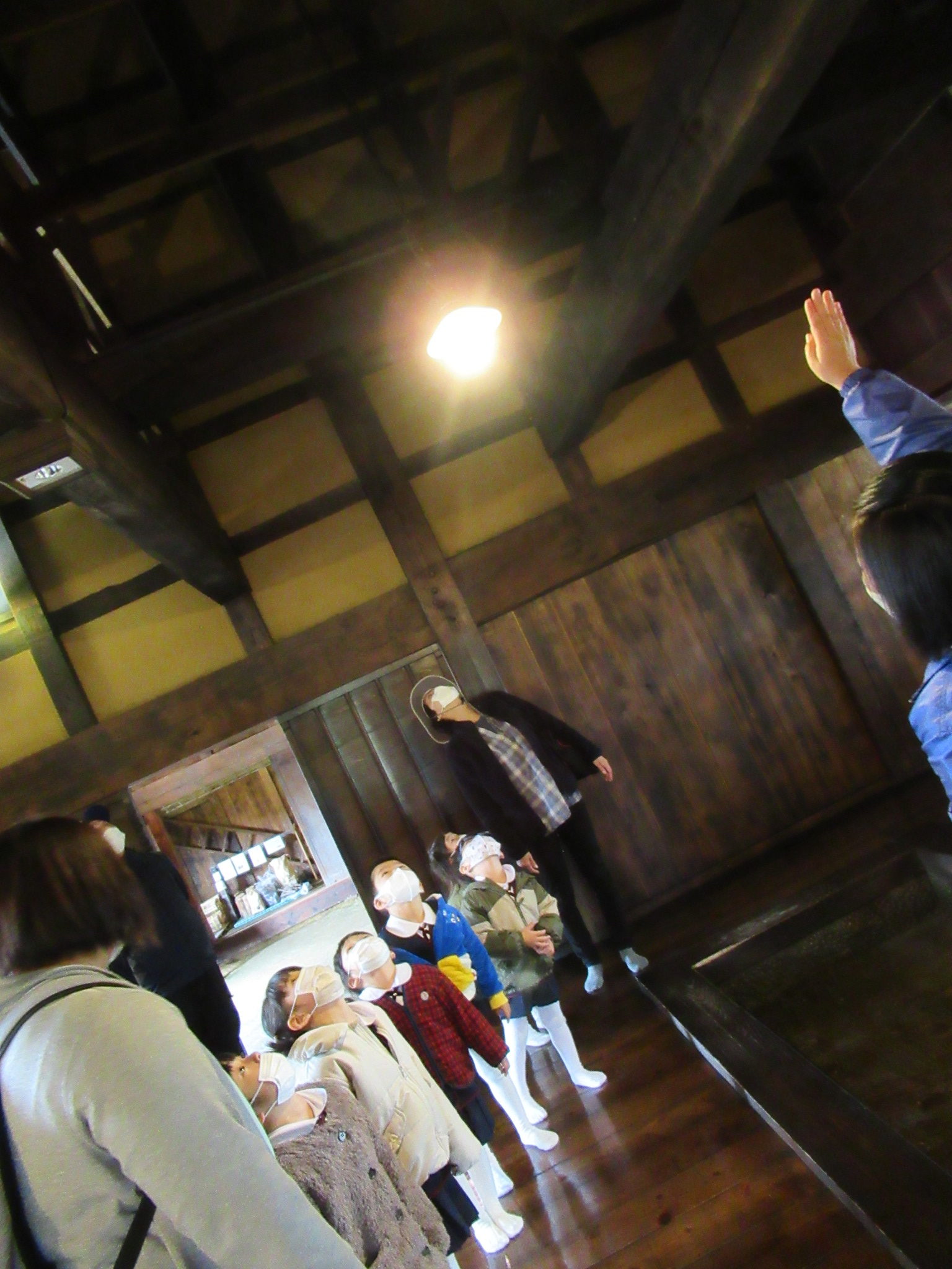 楠美家では、古民家の中や隣接する倉の中を見学。昔の囲炉裏、金庫、仏壇、トイレ、馬小屋だった場所、秘密?の階段等を興味深くみんなで静かに見てきました。