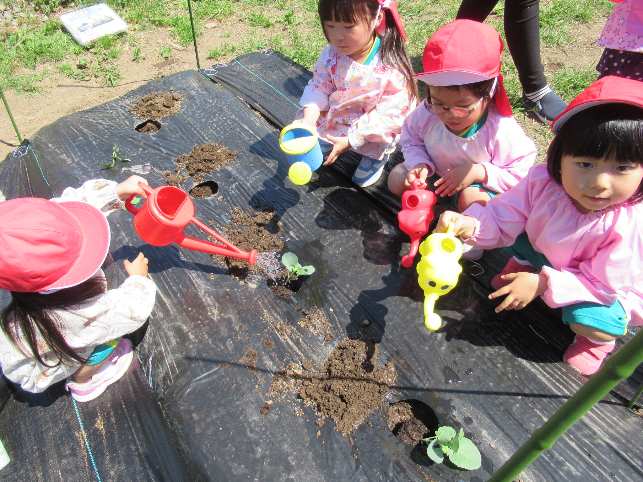 はと組うさぎ組と一緒に、ハッピー畑に苗を植えました。