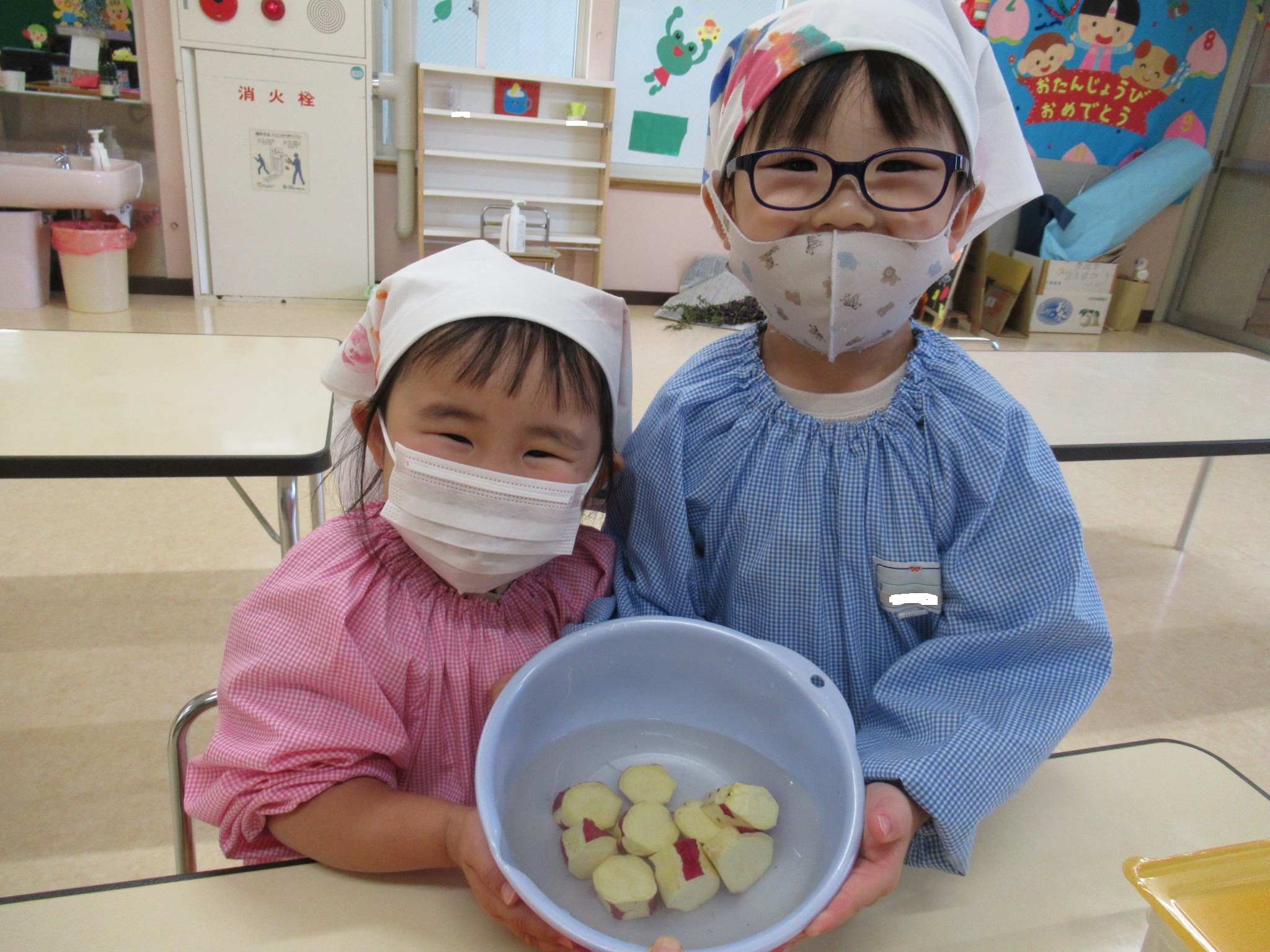 後日クラスで掘ってきたさつま芋でクッキングをしました。