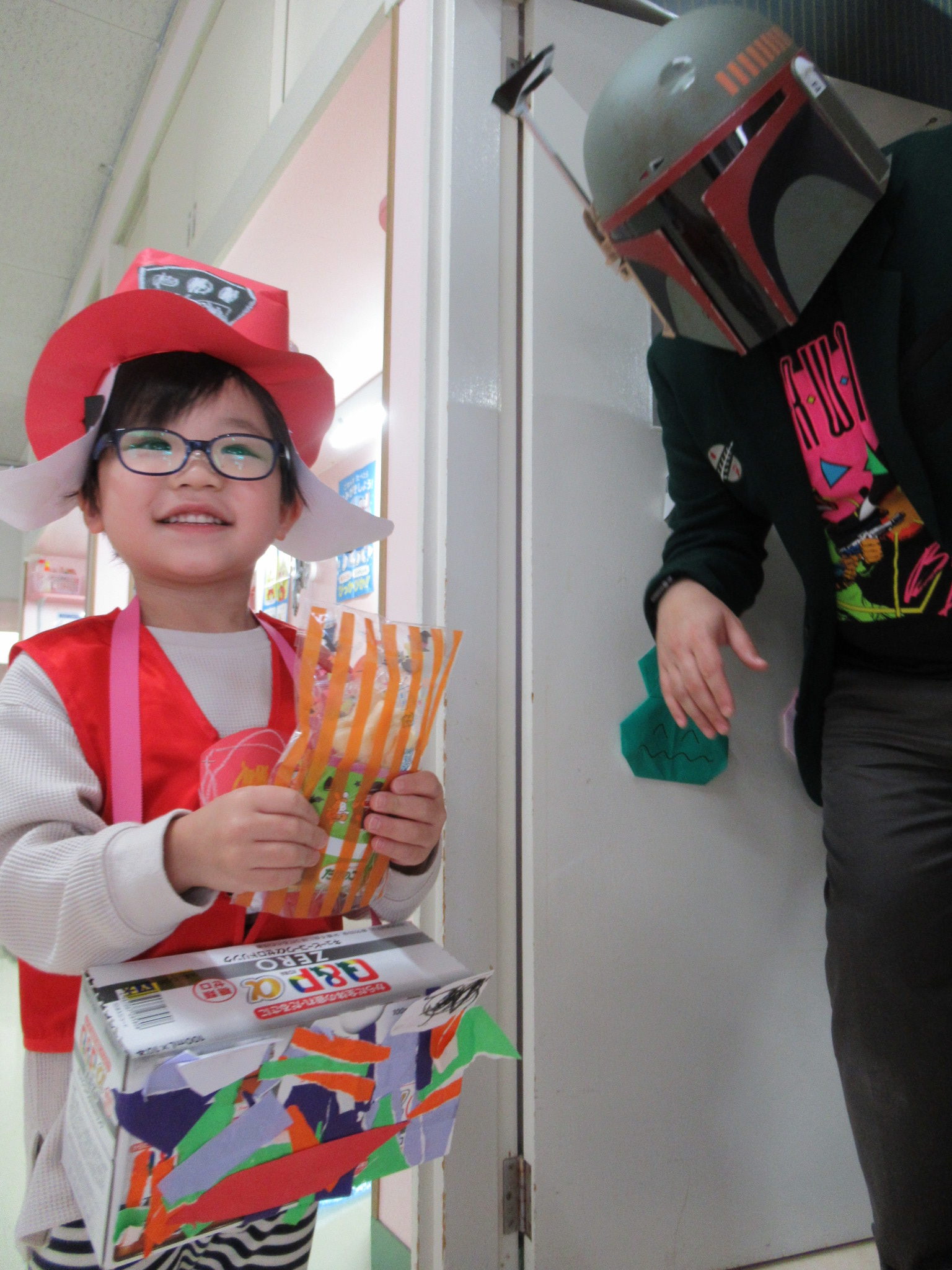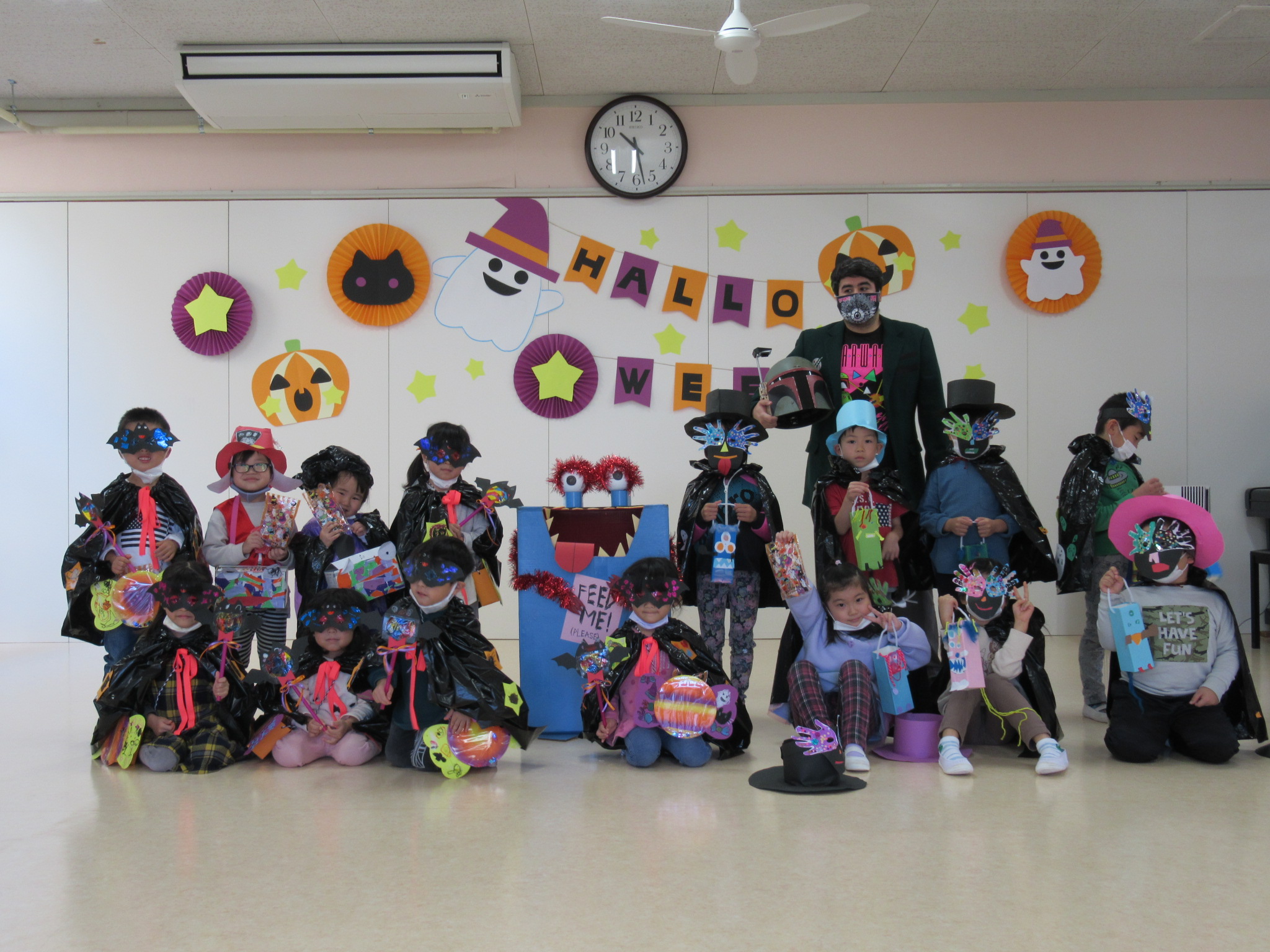 10月最後の英語では、みんなで仮装をしてハロウィン🎃ごっこをしました。