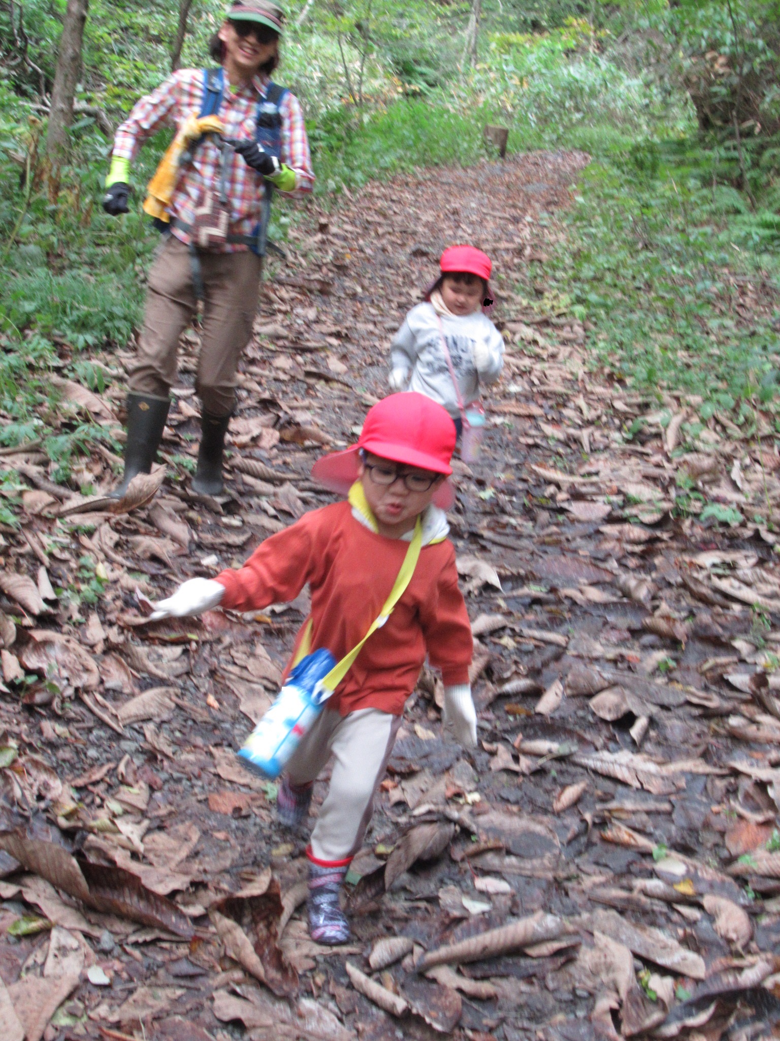 下山途中で行動食をとり休憩するとさらにパワーアップした子ども達でした。