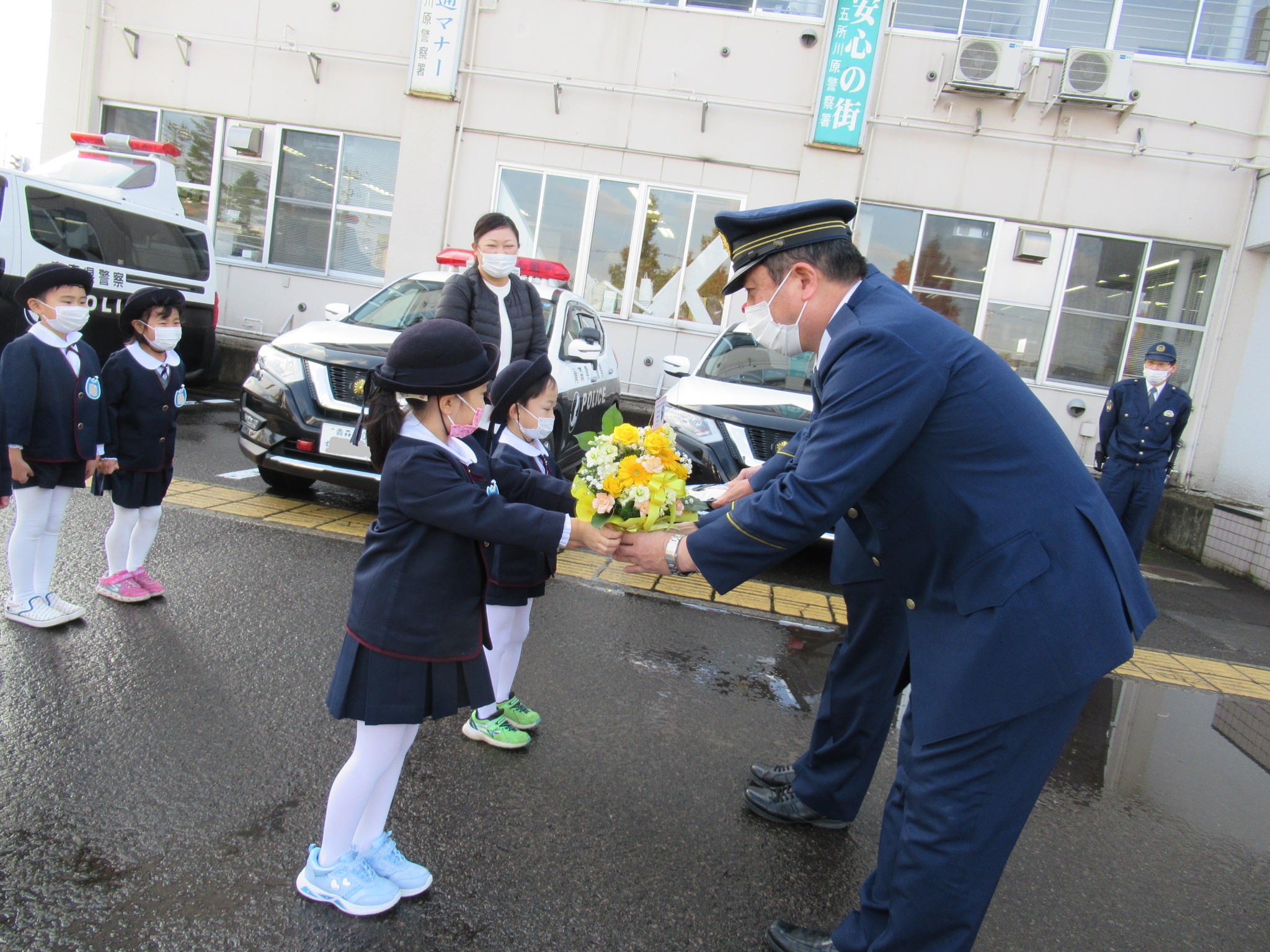 プレゼントした後に、署長さんに警察署のお仕事についての質問などをしたり、