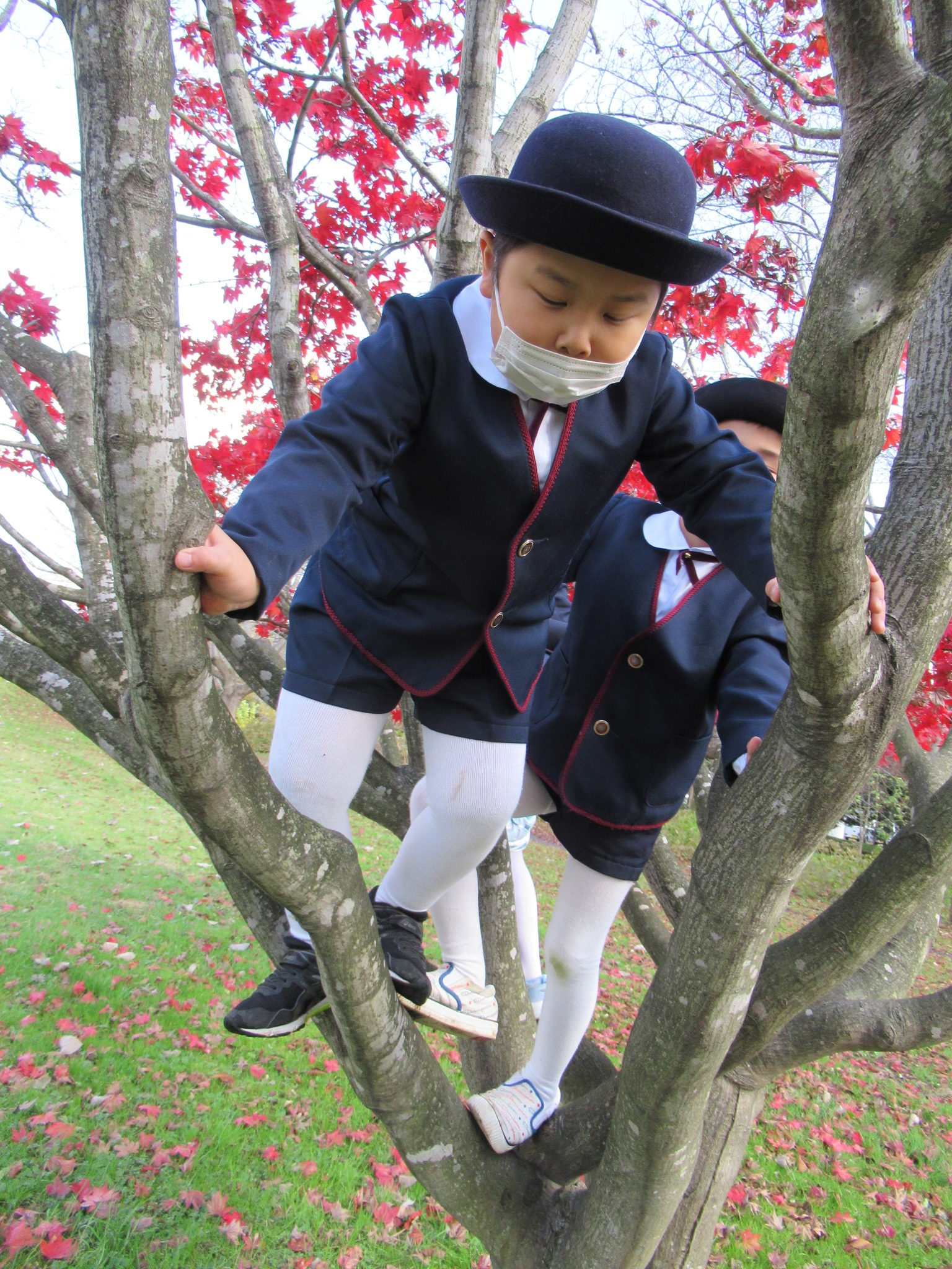 様子を見たり、公園内で走ったり、木登りをして遊びました。