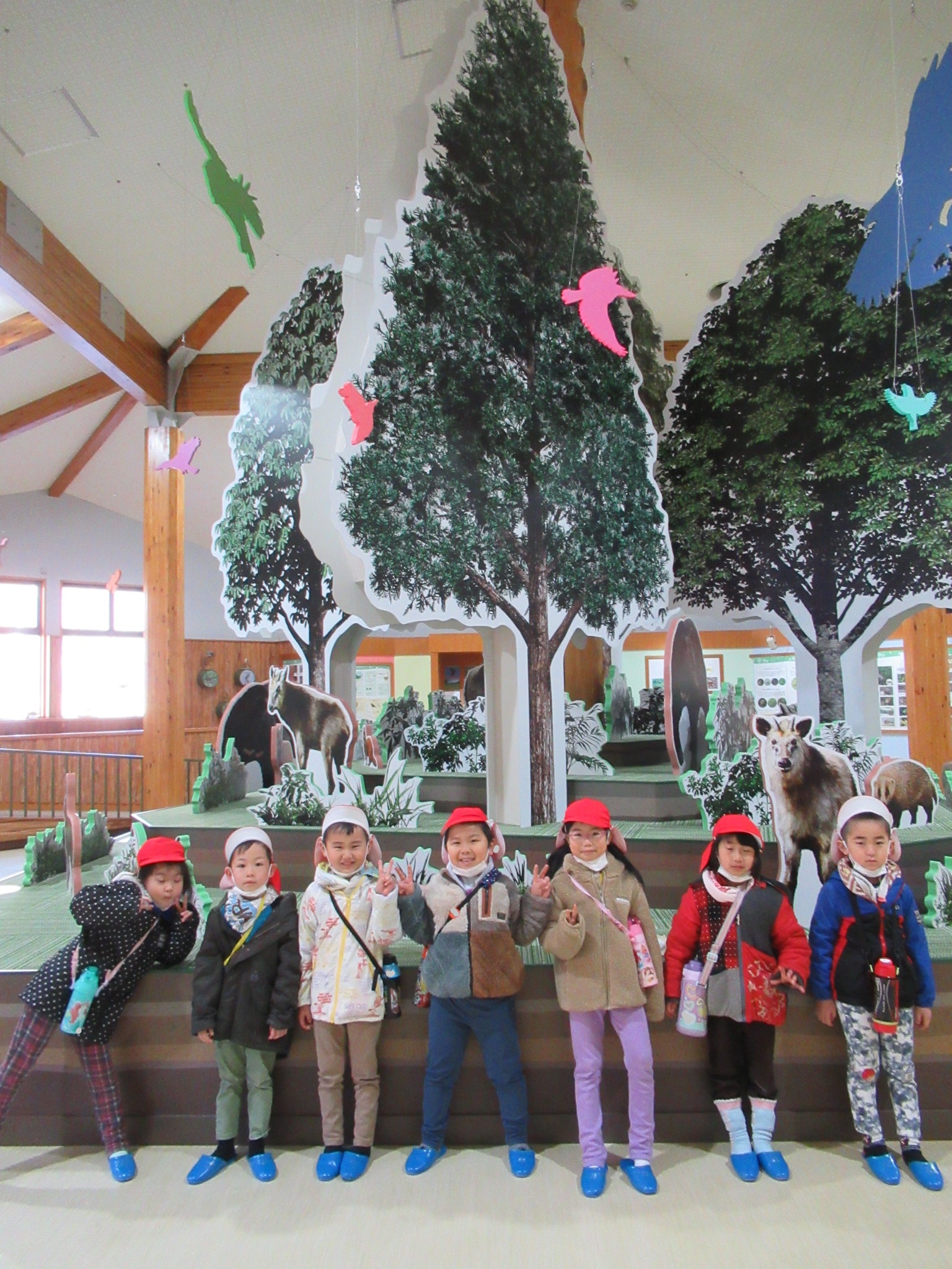 子ども達は、この大きな木や動物のパネルを近くで見たかったので