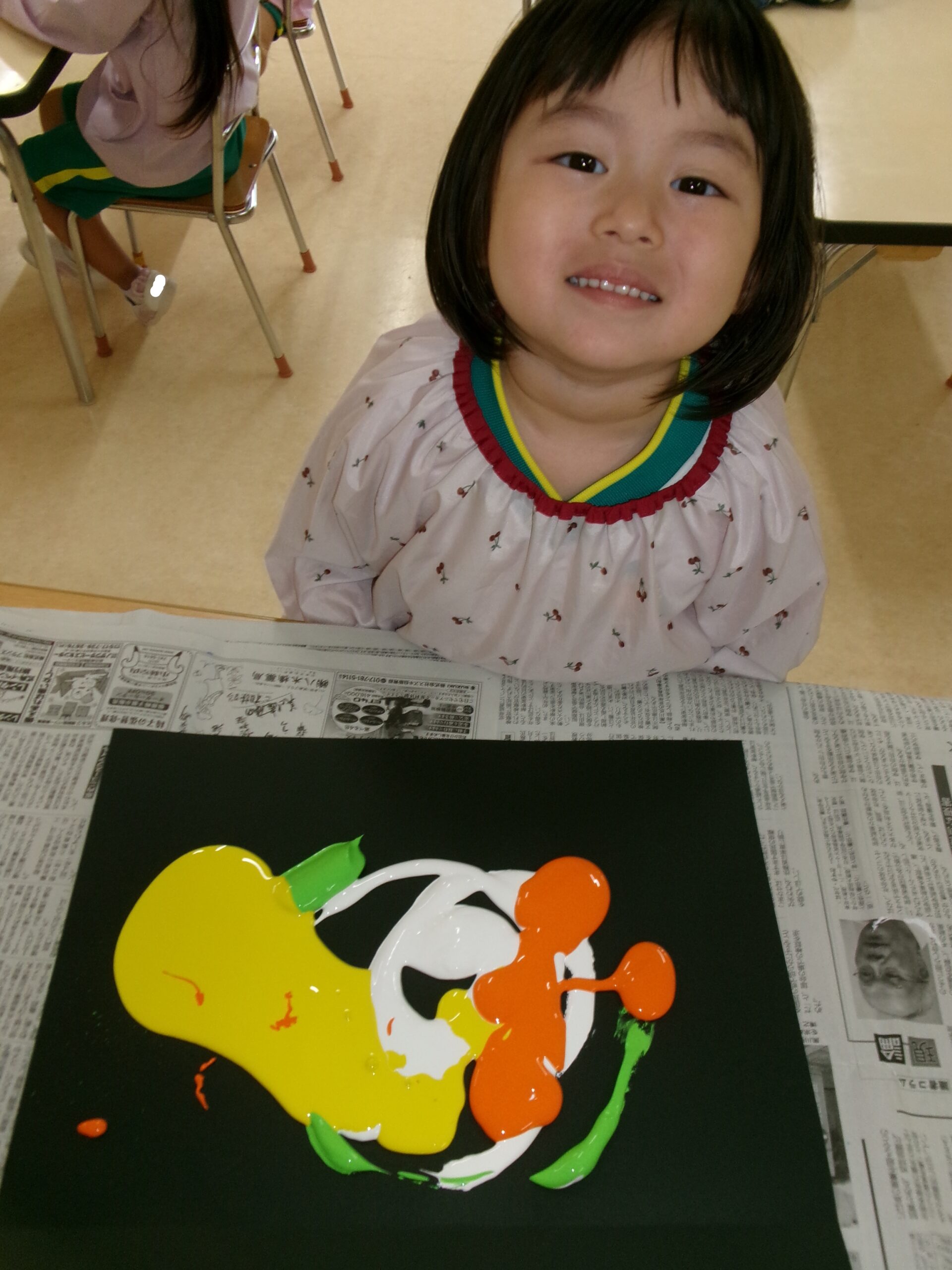 絵の具の感触と、触っているのに手につかない面白さで、集中して取組んでいました。