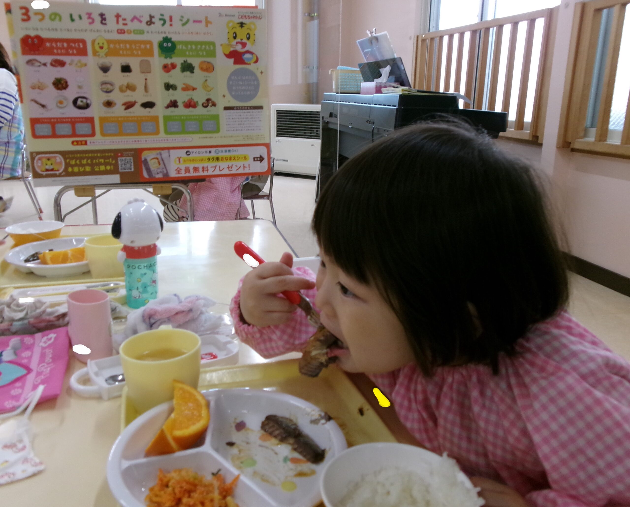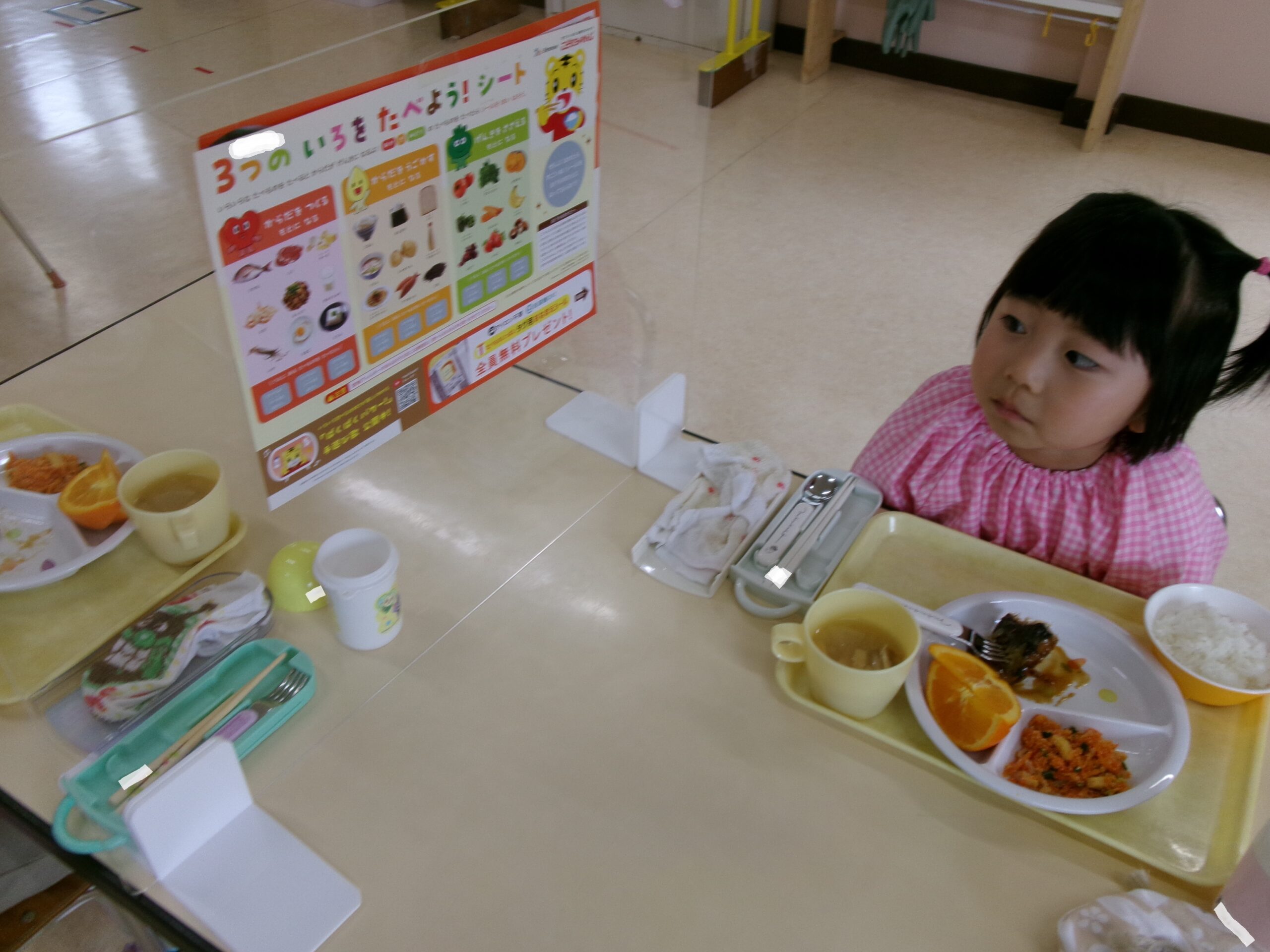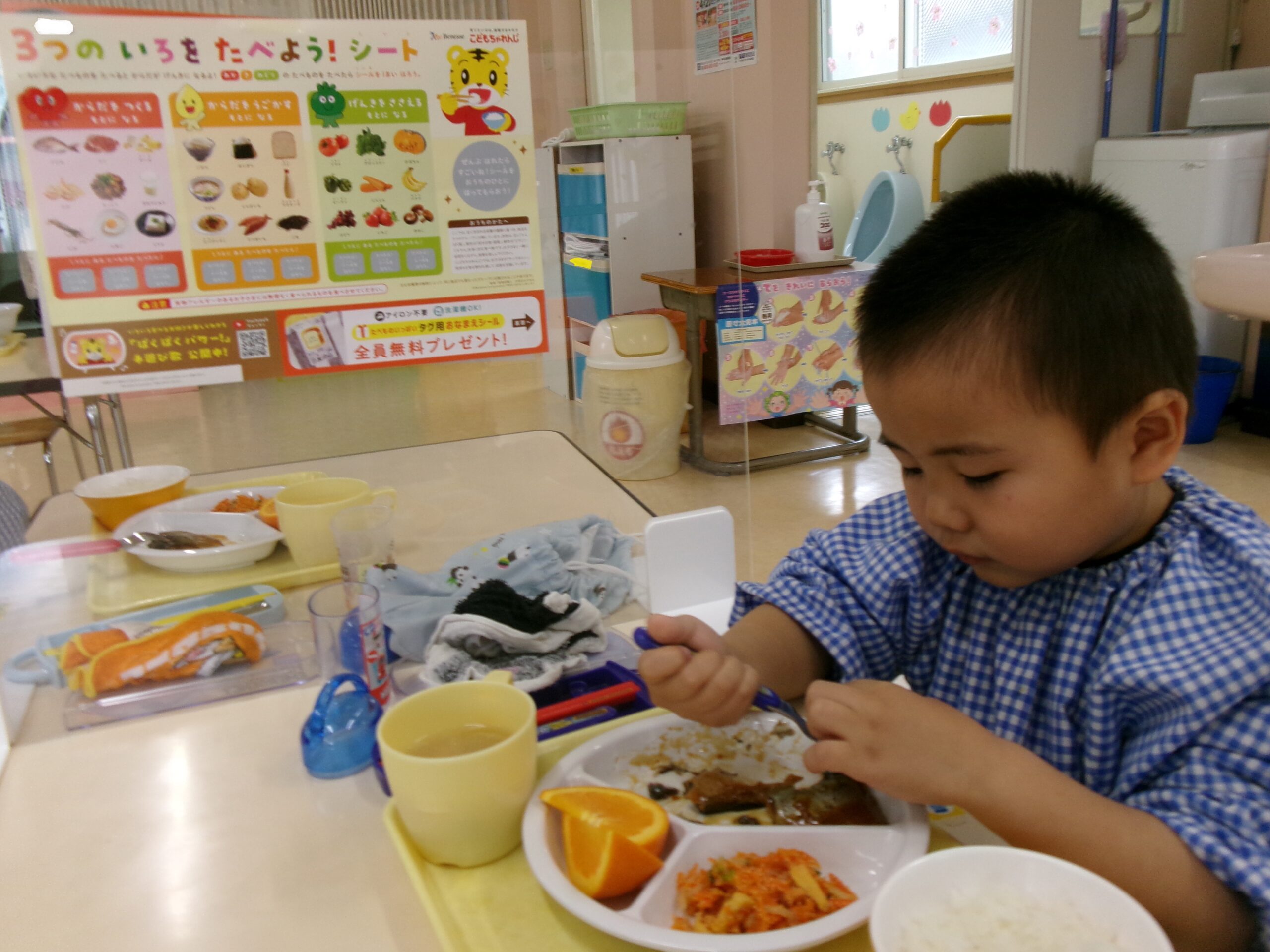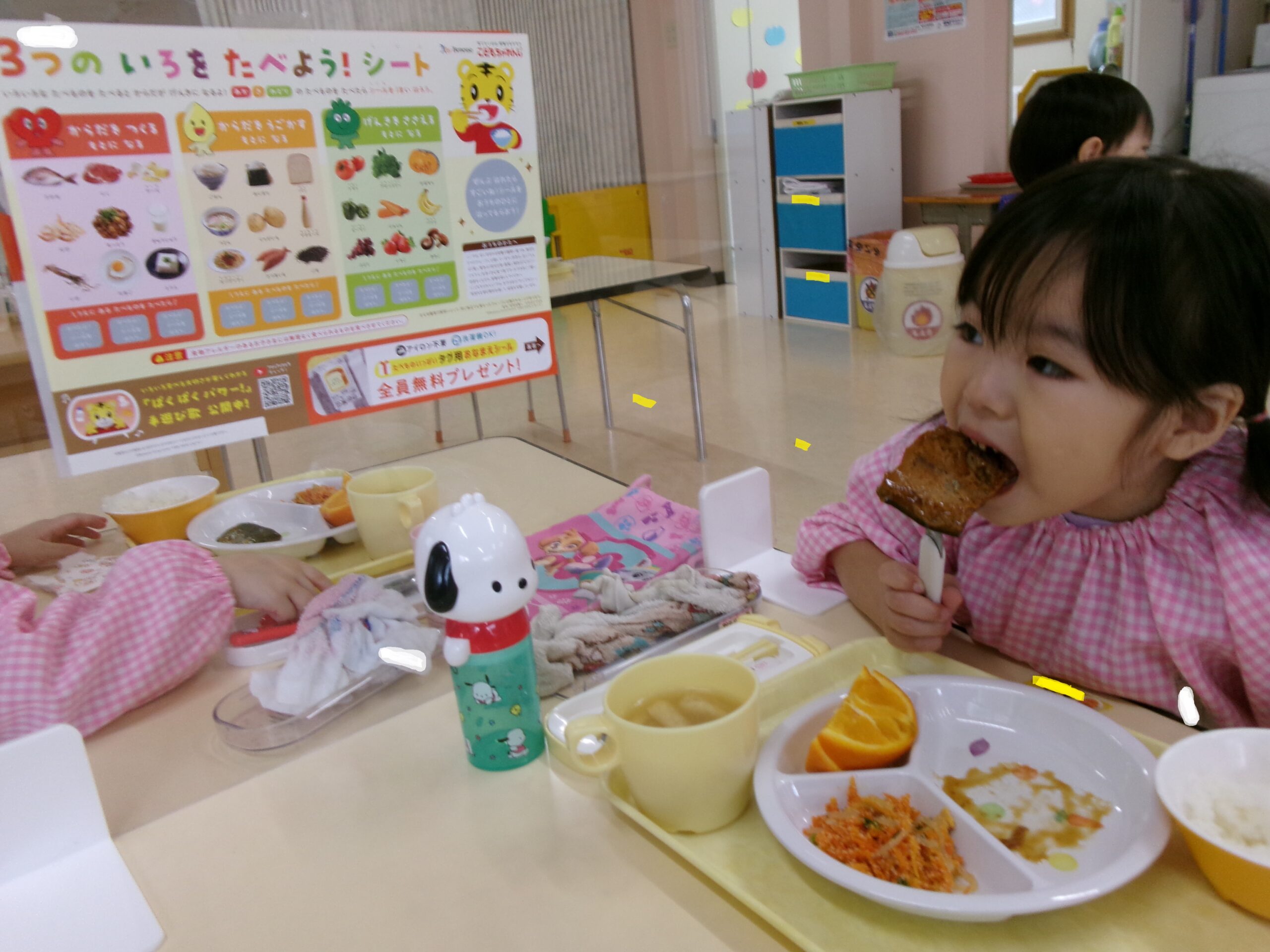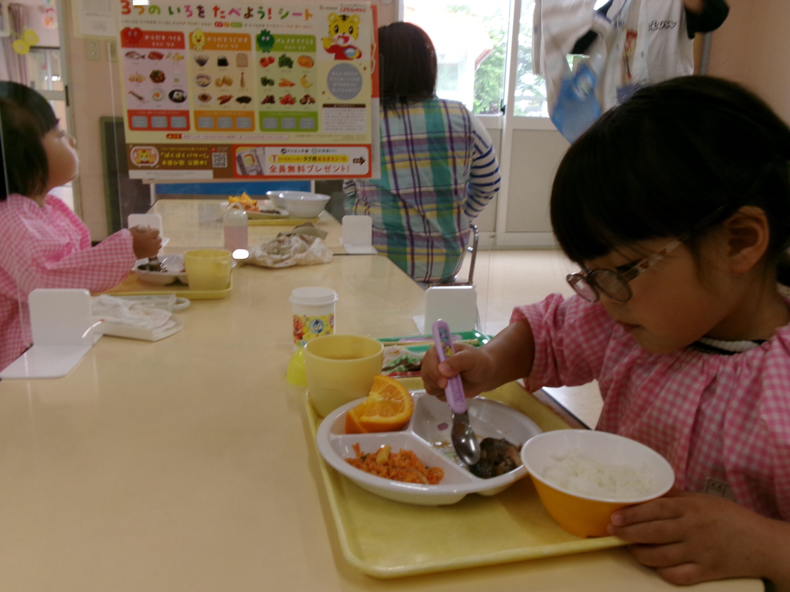 しまじろうの「3つの色を食べよう!シート」が届いたので、クラスで活用しました。