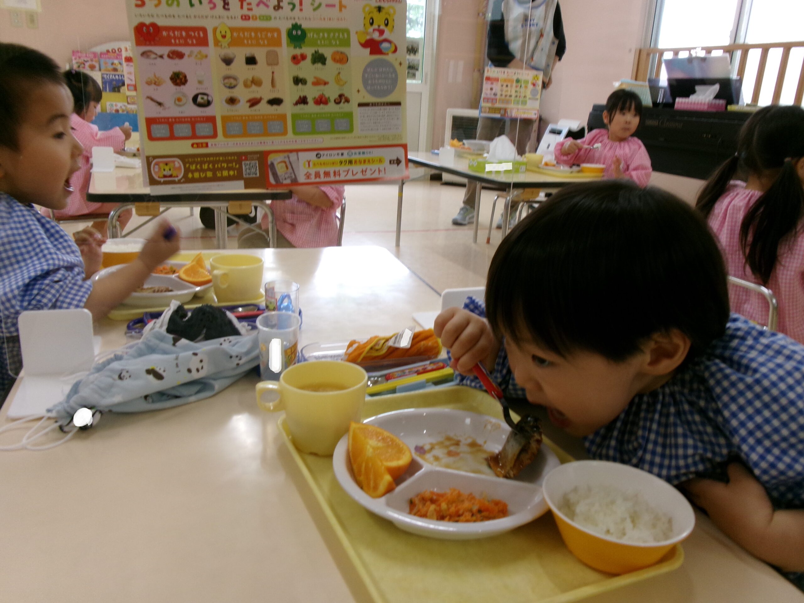 ポスターを見ながら「赤のお魚食べたよ~」と話している子もいましたよ。