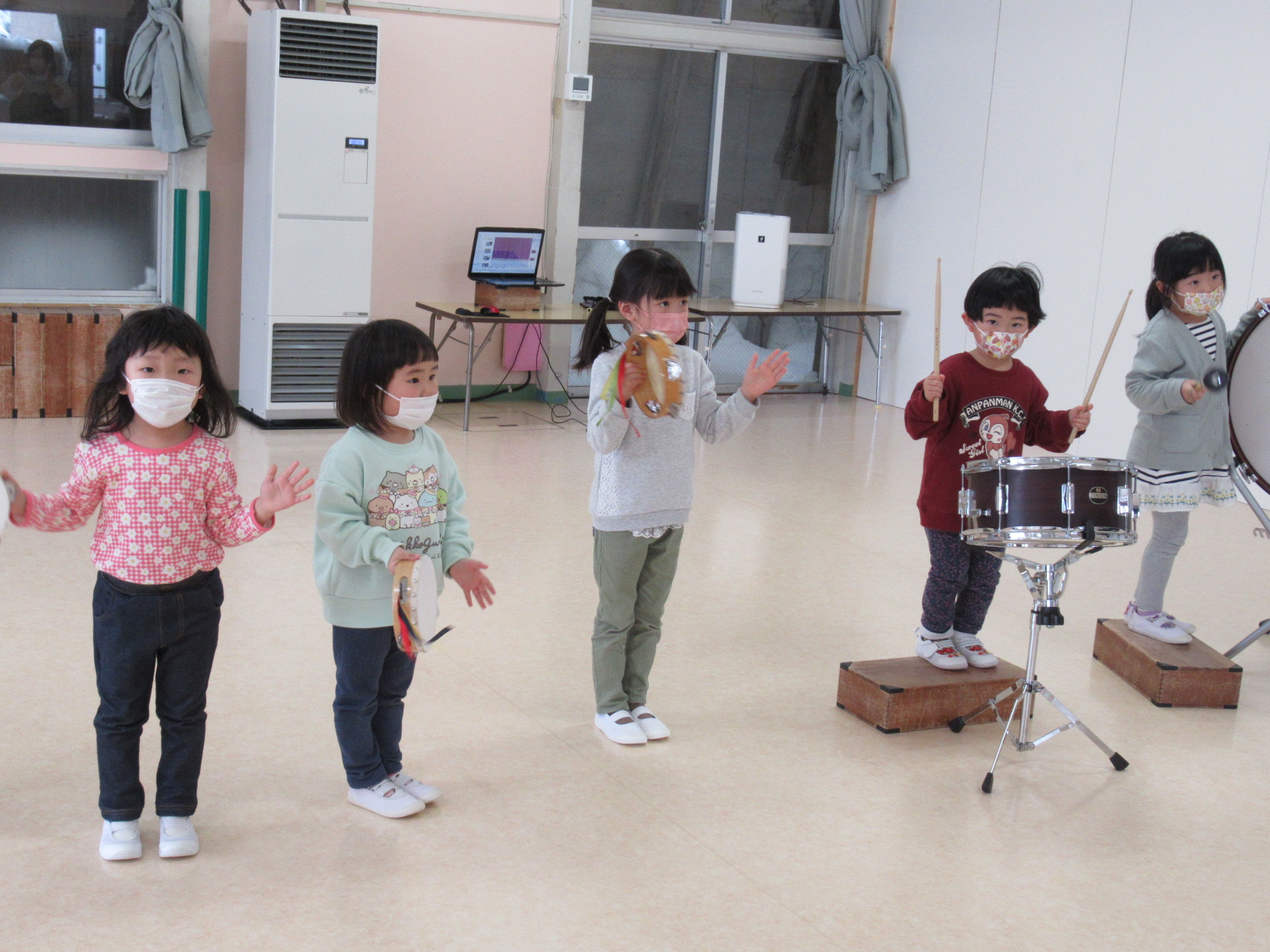 遊戯、合奏ともに年中組さんと一緒に練習をがんばり、当日はとっても楽しく終えることができました。
