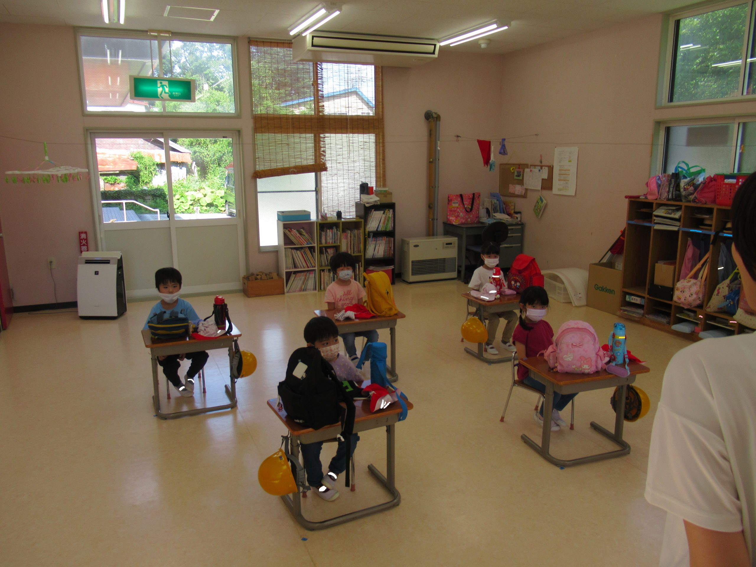 園長先生から、困った事や心配なことはすぐに教えること・みんなで力を合わせて頑張ることをお話してもらいました。