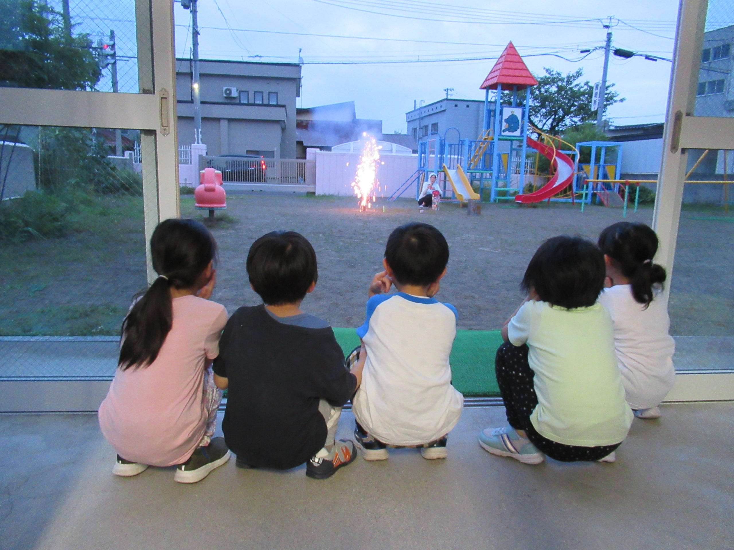大きな音に驚いたり、歓声をあげたりとみんな楽しんで見ていました🎆