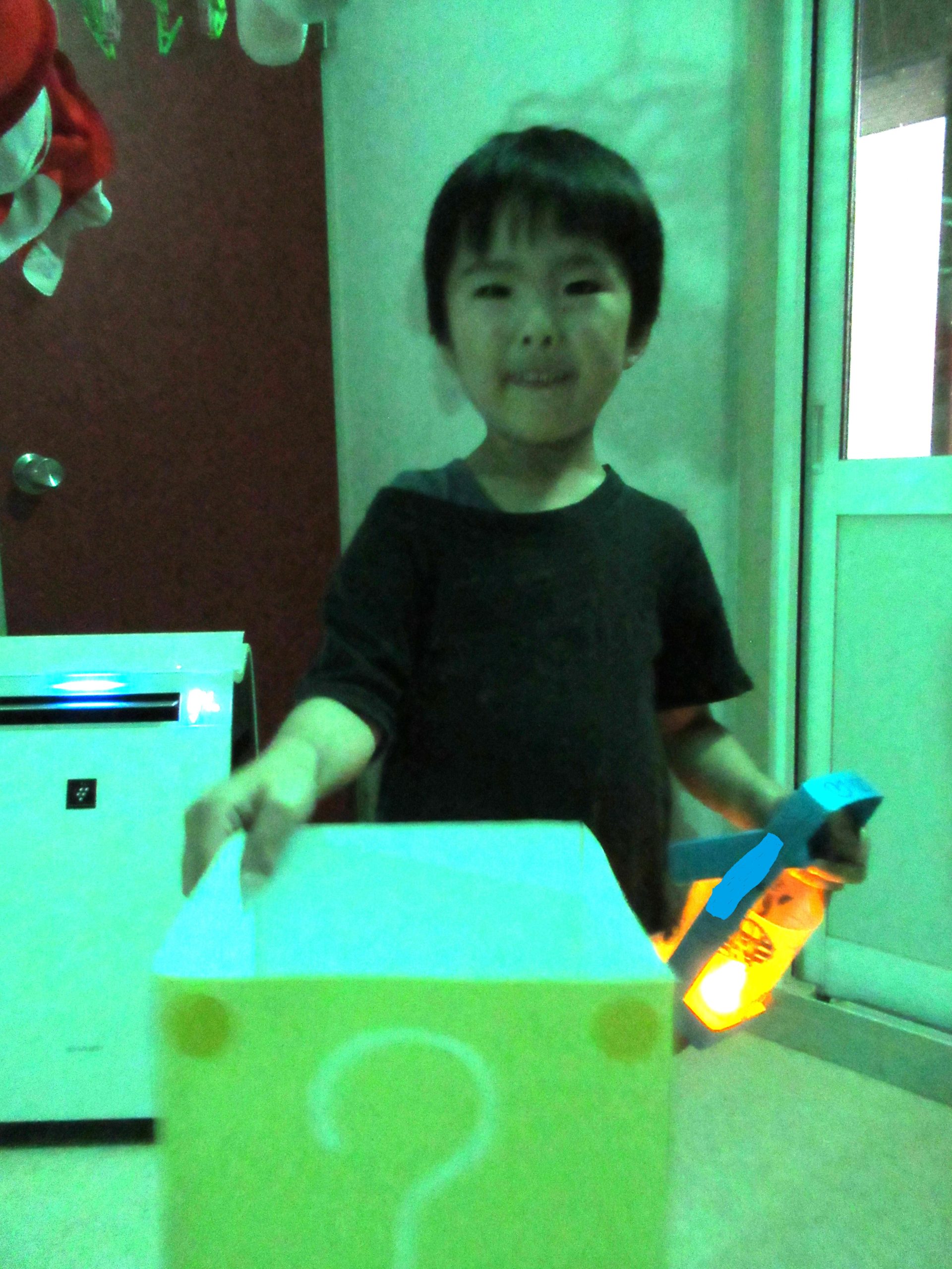 指定された子がそれぞれの部屋に入って行くと、黄色い箱が!
