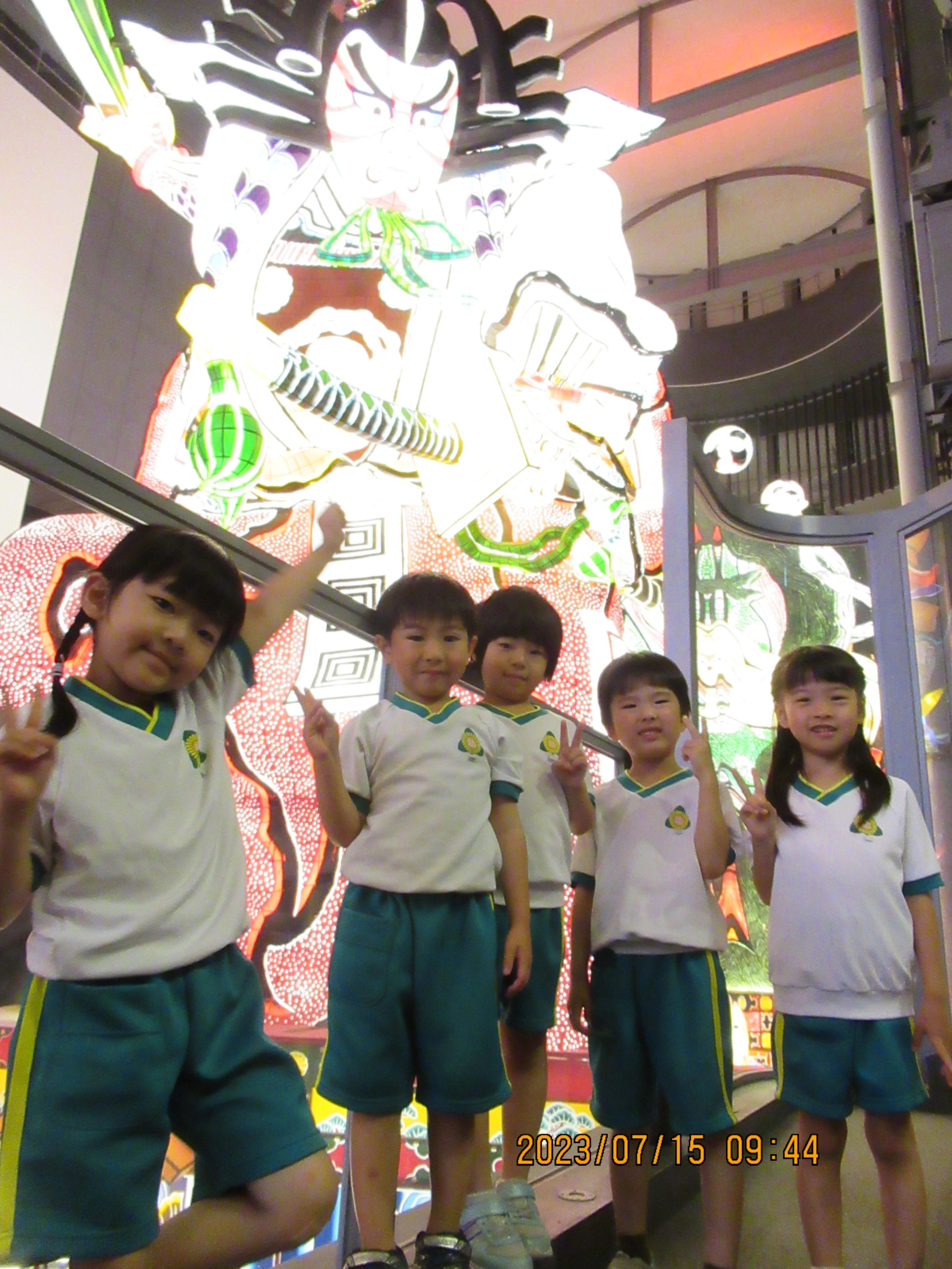 見学の通路にある、カエルのねぶたを探すのが楽しかったようです。