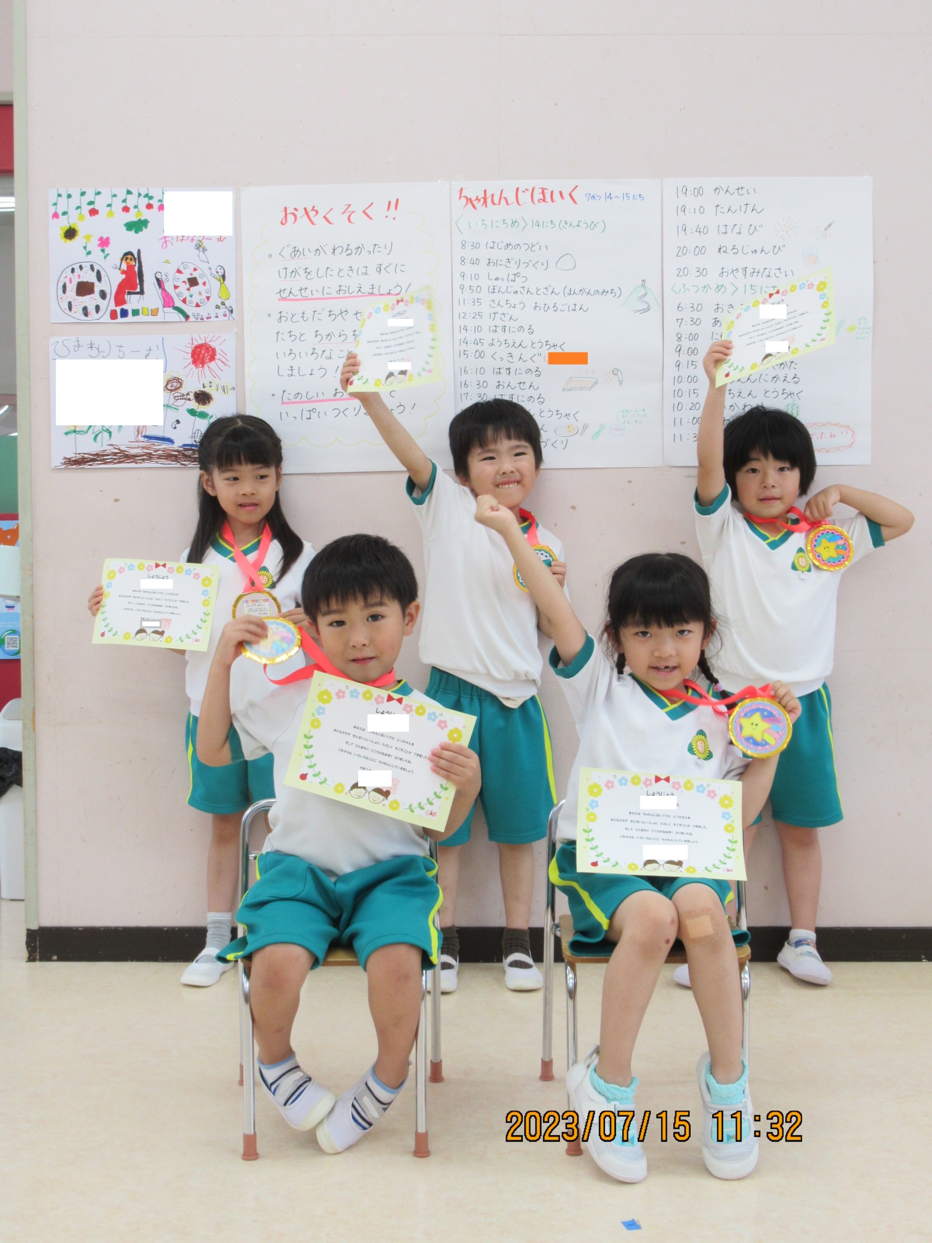 お家の人が協力してくれたメダルをもらうとみんないい笑顔に😊