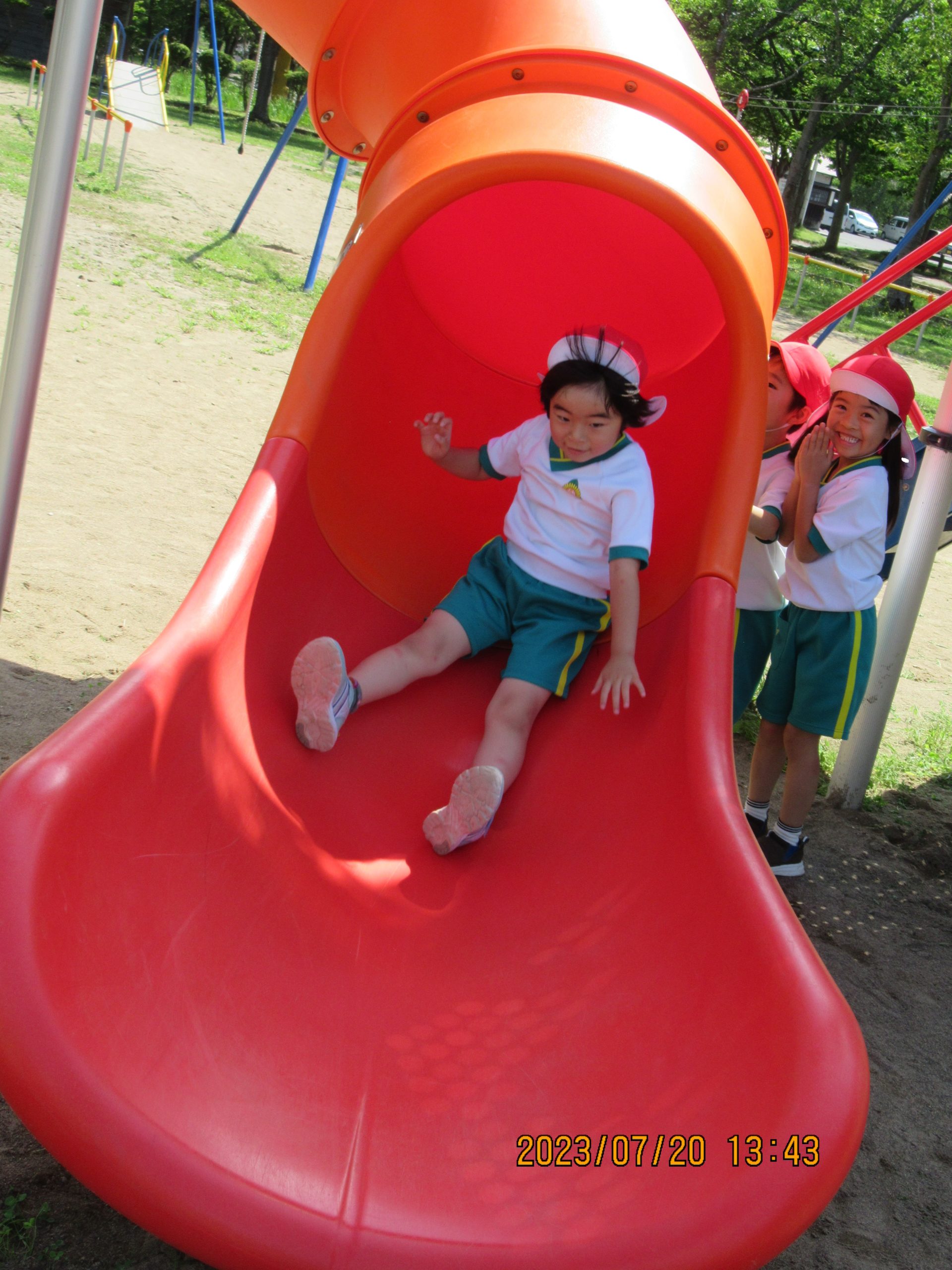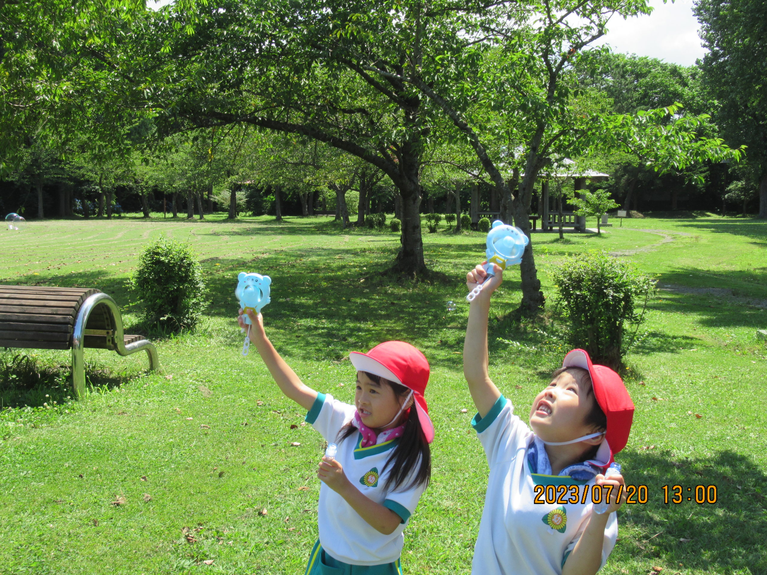 内容は、「また行きたいね」とお話していた菊ヶ丘公園で、シャボン玉遊びと遊具で遊ぶこと!!
