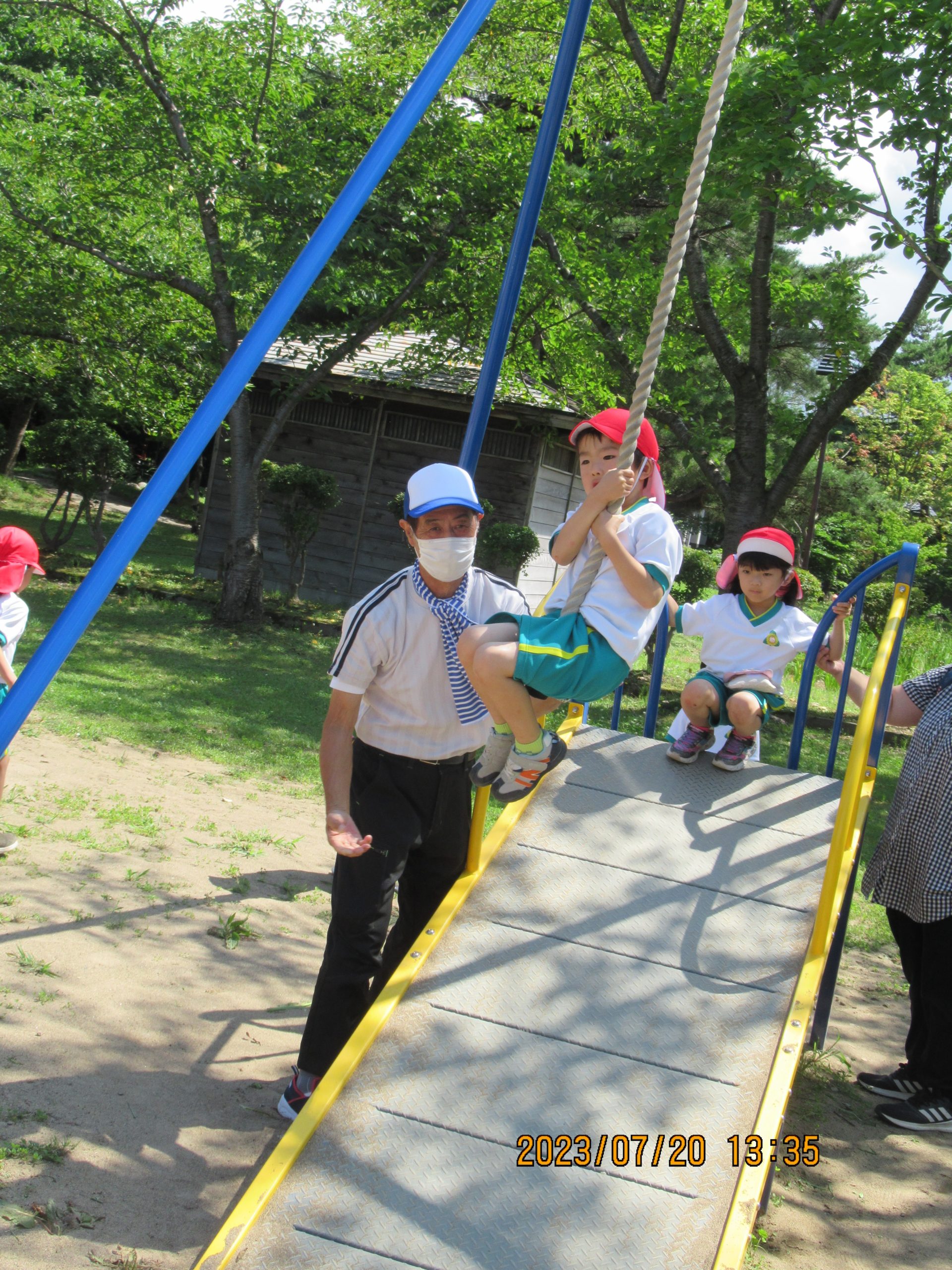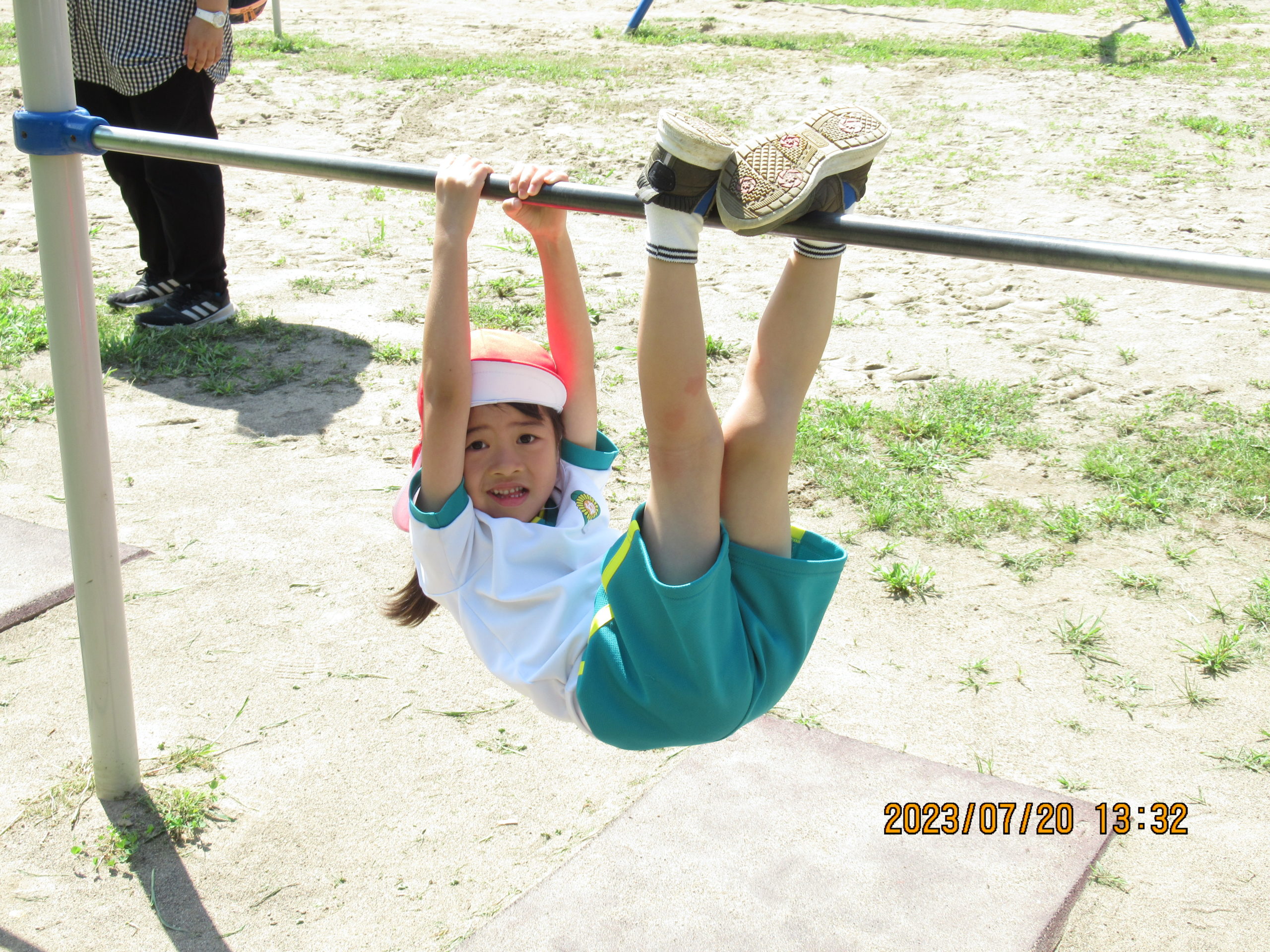 鉄棒やターザンロープ、大型遊具でたくさん体を動かして遊びました。