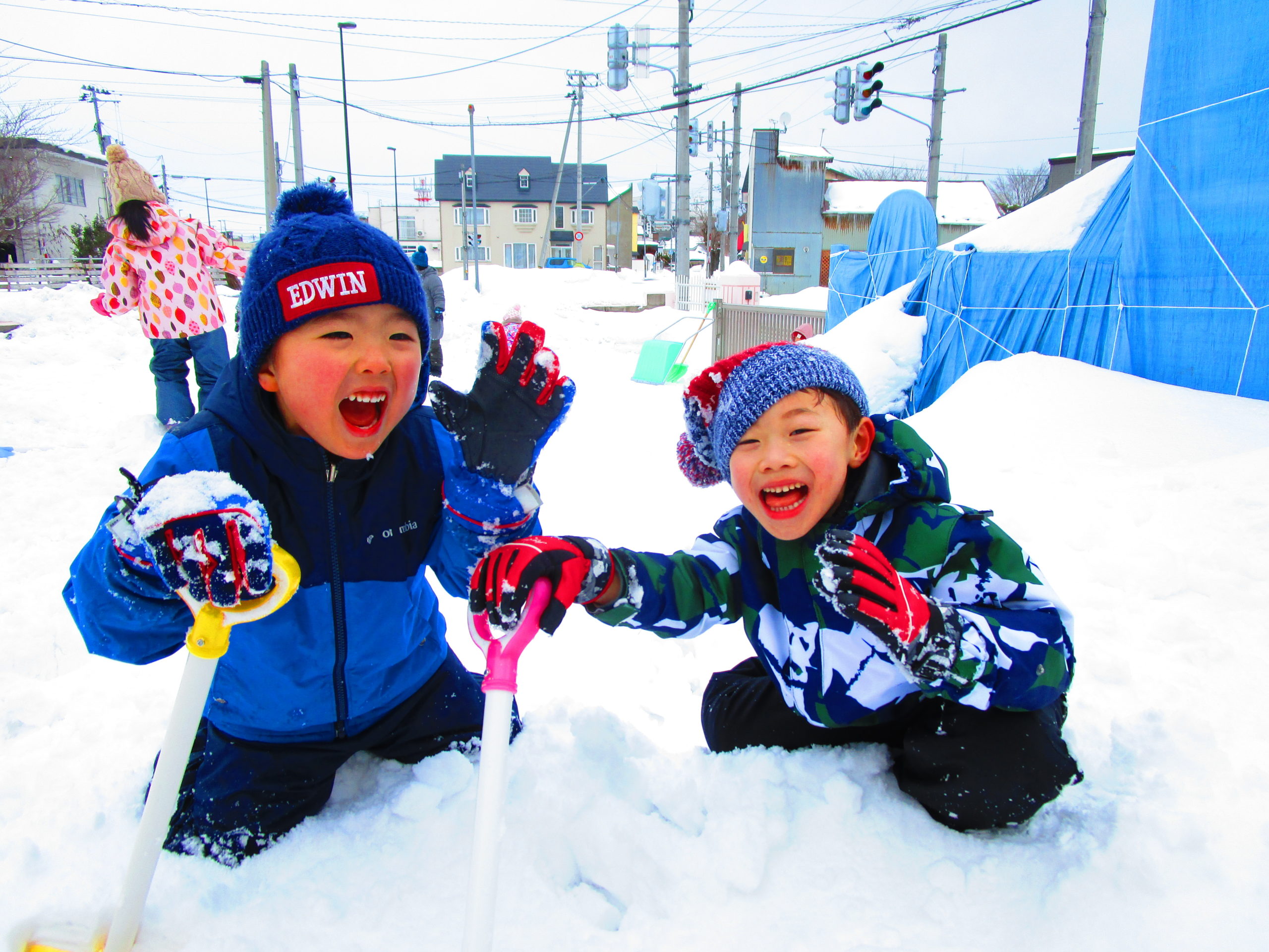 あっという間に豆がなくなった子は、手の届くところにある豆を拾って投げ、